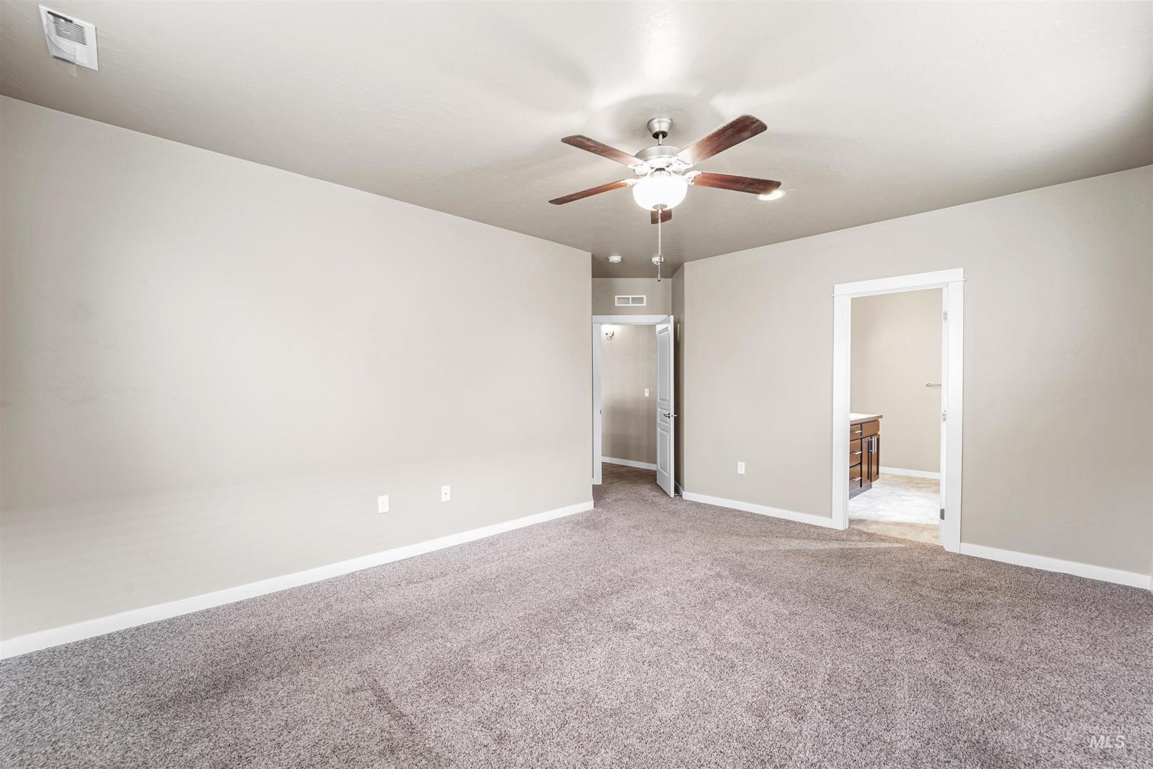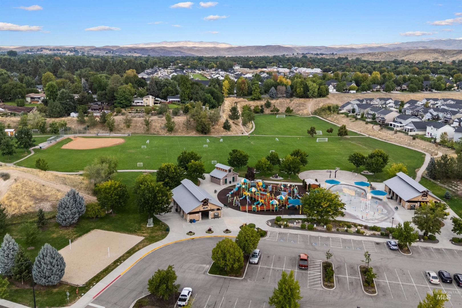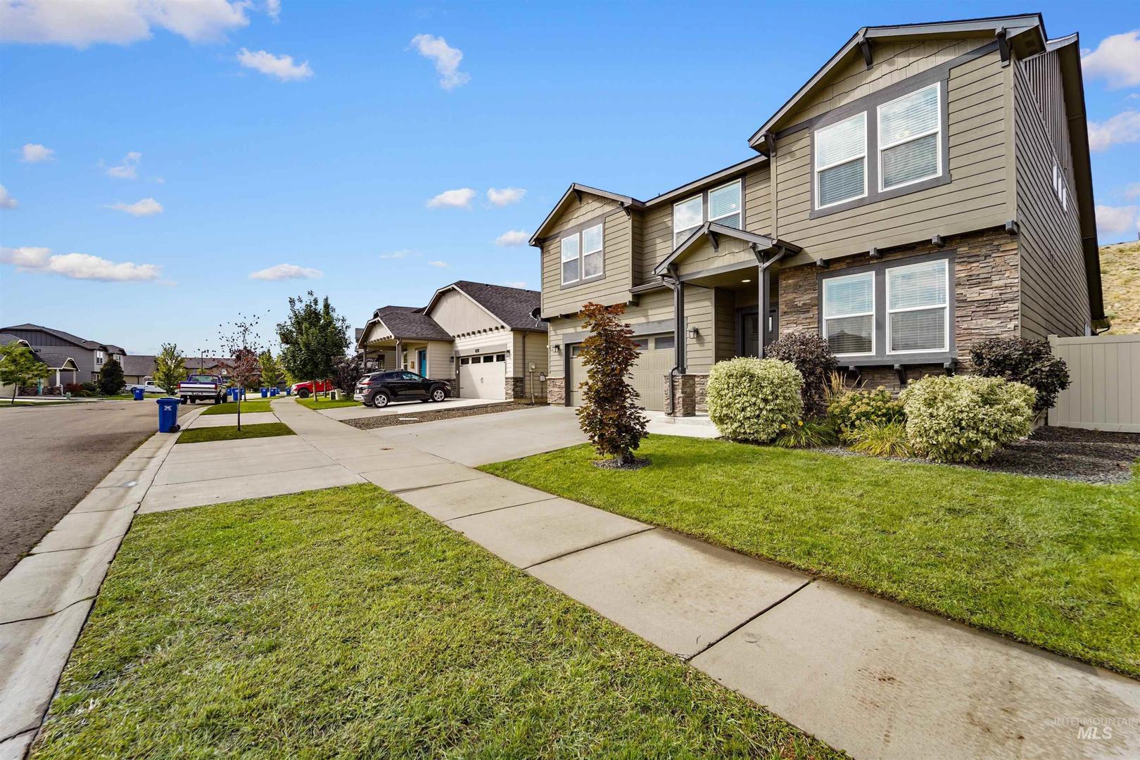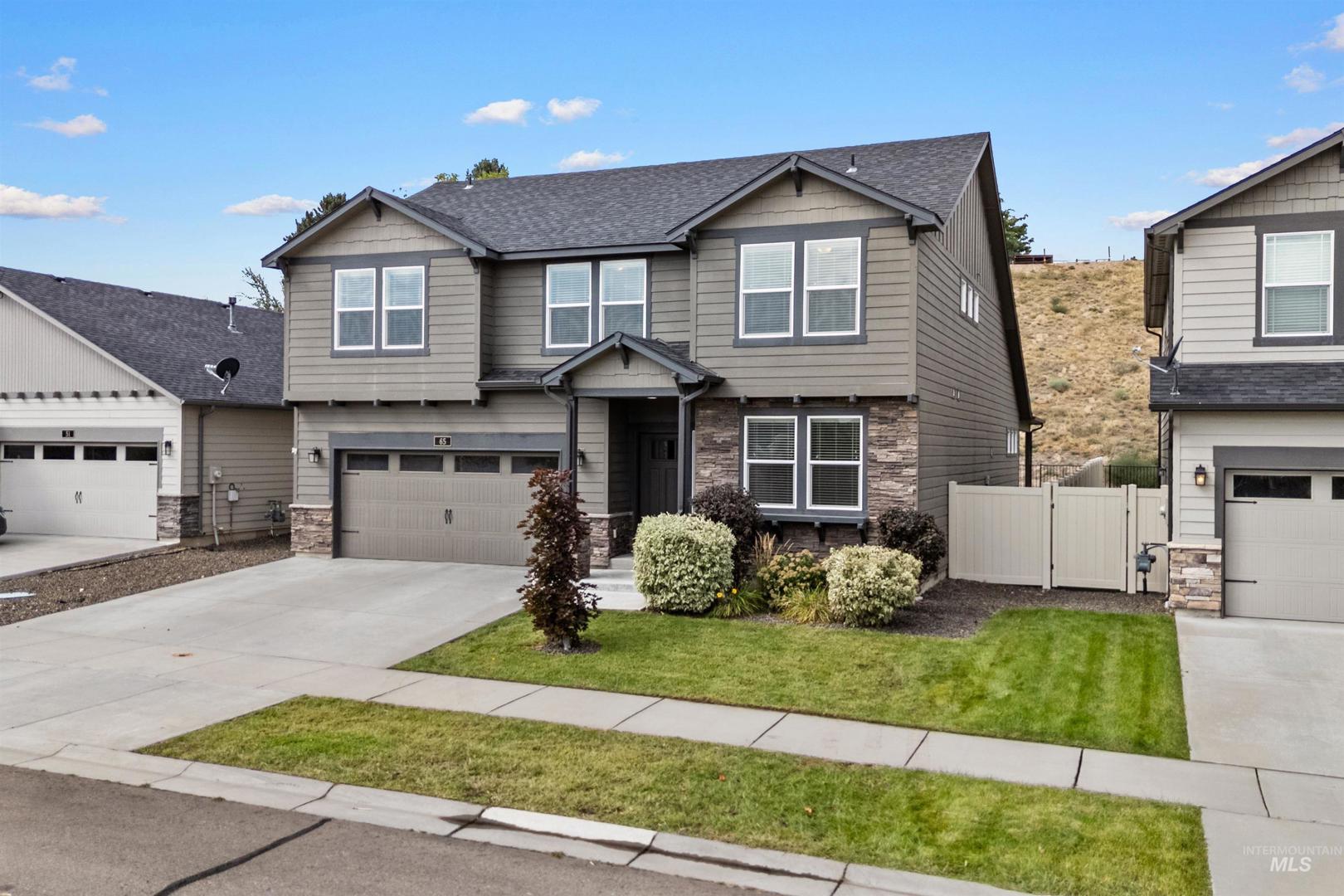Fantastic opportunity to live centrally in Eagle in a spacious two-story home offering main level master and no backyard neighbors! Enjoy high vaulted ceilings in the expansive great room with wood-look tile flooring. Open kitchen with stainless steel appliances, quartz countertops & pantry. Large master suite with dual vanities, soaker tub, and walk-in closet. Wonderful office on the main level also! Enjoy gas fireplace, alarm system and dual zone climate control. Three generous bedrooms upstairs all featuring east-facing Mountain Views, plus large bonus room / loft for entertaining. Exterior features cement board siding, with extra large covered patio and private yard! Conveniently located in Redstone Ranch between downtown and Eagle Sports Complex, walk or ride to Guerber Community Park. Highly rated Eagle Schools!