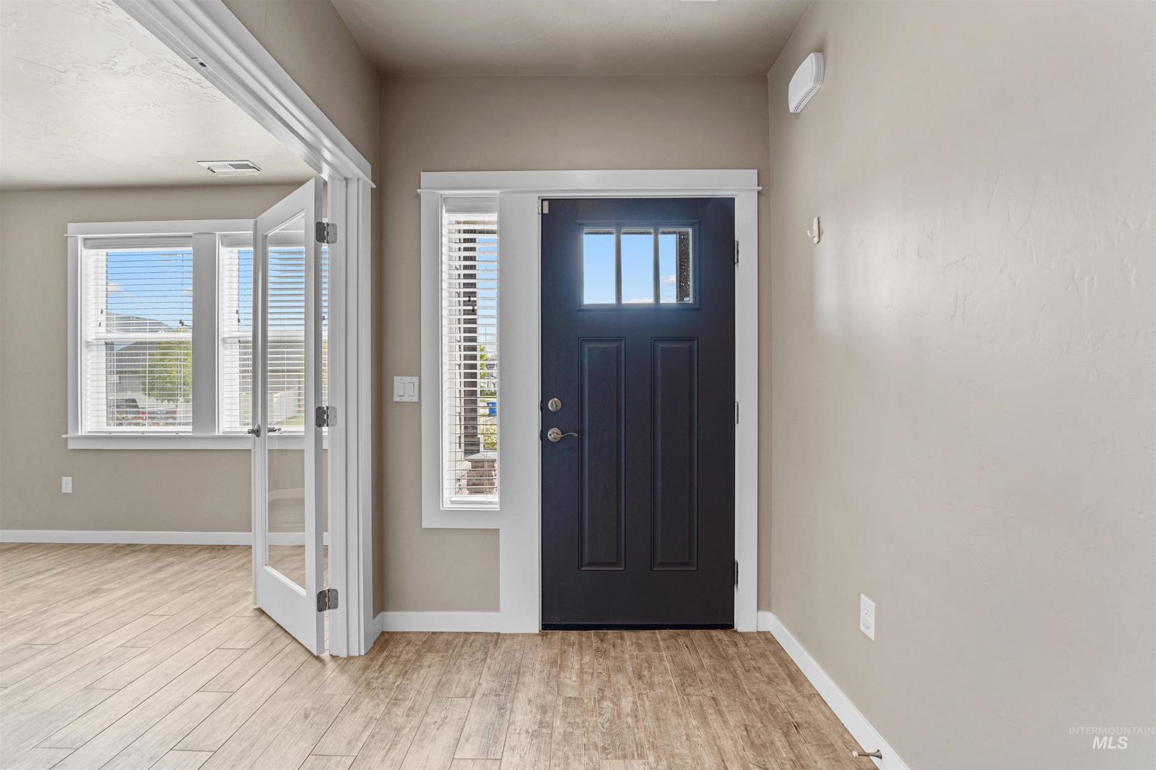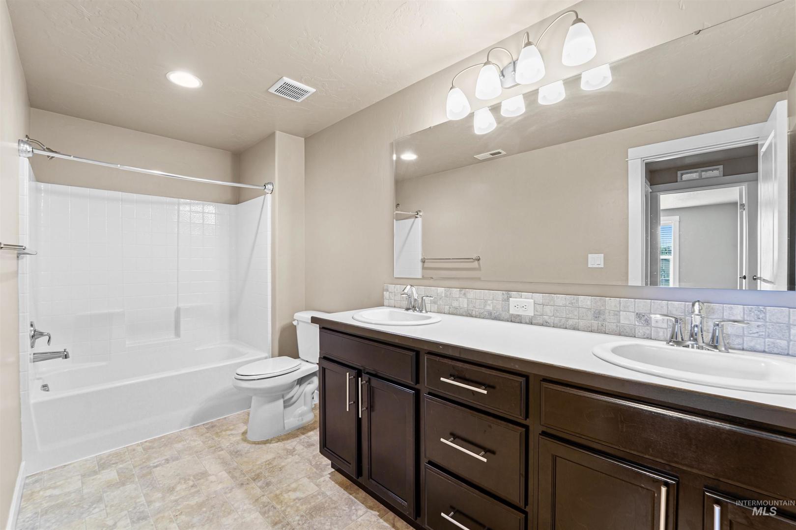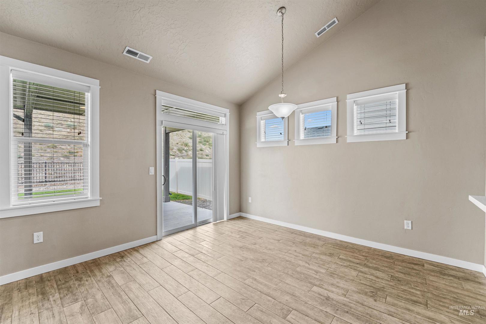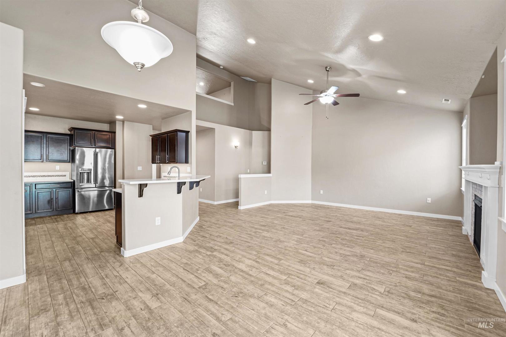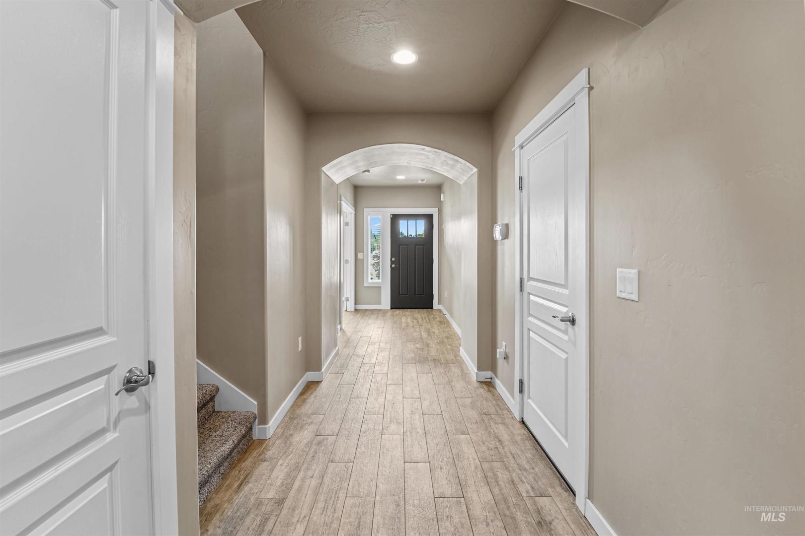 Fantastic opportunity to live centrally in Eagle in a spacious two-story home offering main level master and no backyard neighbors! Enjoy high vaulted ceilings in the expansive great room with wood-look tile flooring. Open kitchen with stainless steel appliances, quartz countertops & pantry. Large master suite with dual vanities, soaker tub, and walk-in closet. Wonderful office on the main level also! Enjoy gas fireplace, alarm system and dual zone climate control. Three generous bedrooms upstairs all featuring east-facing Mountain Views, plus large bonus room / loft for entertaining. Exterior features cement board siding, with extra large covered patio and private yard! Conveniently located in Redstone Ranch between downtown and Eagle Sports Complex, walk or ride to Guerber Community Park. Highly rated Eagle Schools!