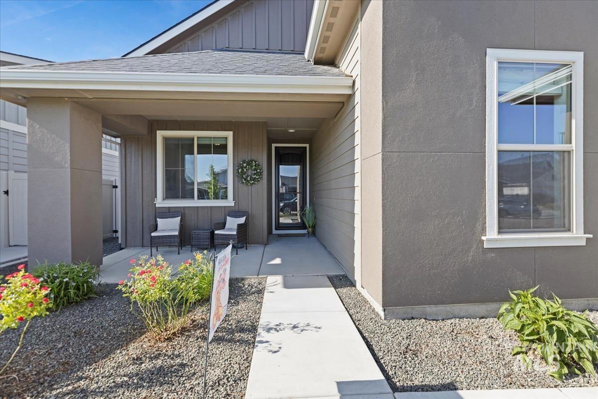 Welcome to this charming home in The Oaks North, offering a contemporary country farmhouse feel and a thoughtfully designed layout. Inside, you`ll find an open floorplan with an office just off the entry, leading to a spacious great room filled with natural light. The adjacent kitchen and eating nook overlook the beautifully landscaped backyard and feature granite countertops, a large island, and a farmhouse sink—perfect for everyday living and entertaining. The massive primary suite is flooded with natural light and offers room for a seating area. The luxurious ensuite bath includes dual vanities, a soaker tub, a tiled walk-in shower, and a large walk-in closet. Enjoy outdoor living with an expansive patio, lush landscaping, and a storage shed. French drains were added in June 2025 for peace of mind. House is wired for electric patio shade and outdoor Christmas lights. The Oaks North features pickleball courts, a pool, fishing pond, and scenic walking paths—everything you need for comfort and recreation.