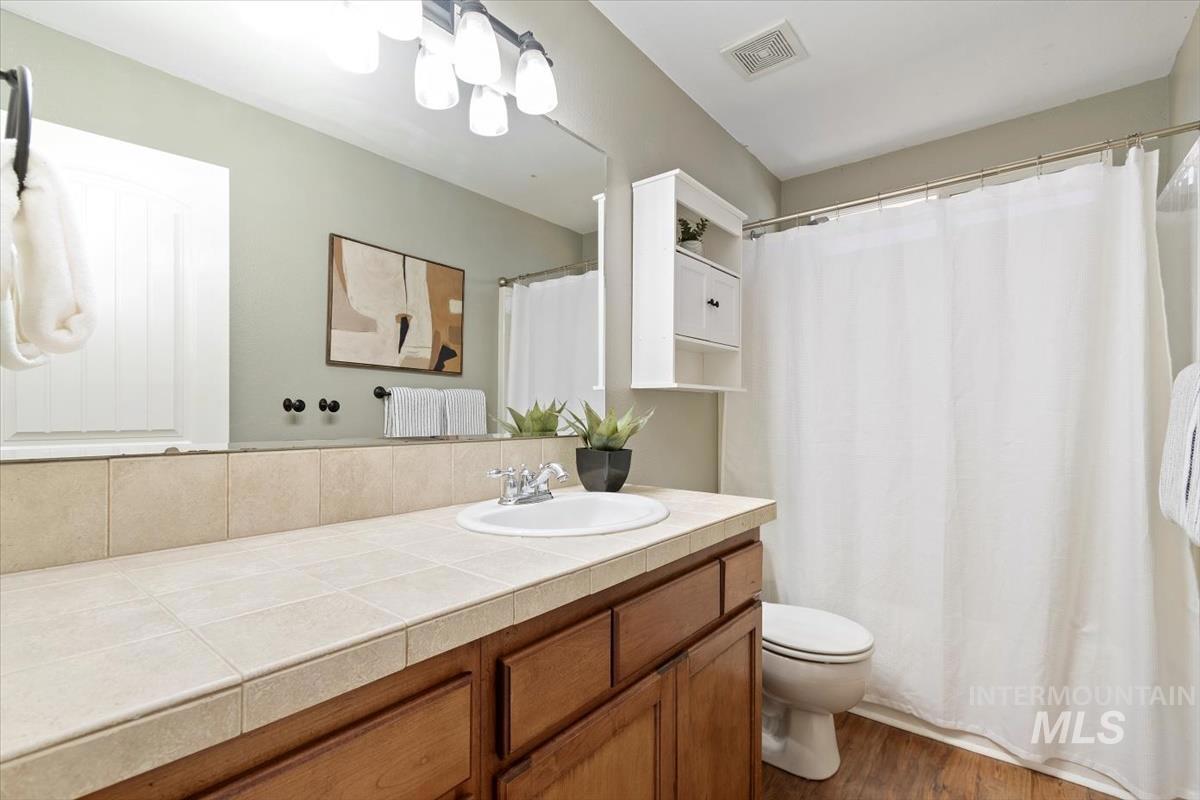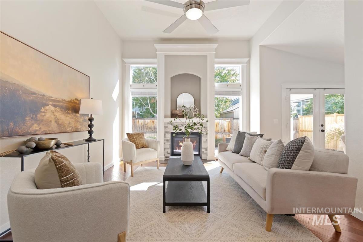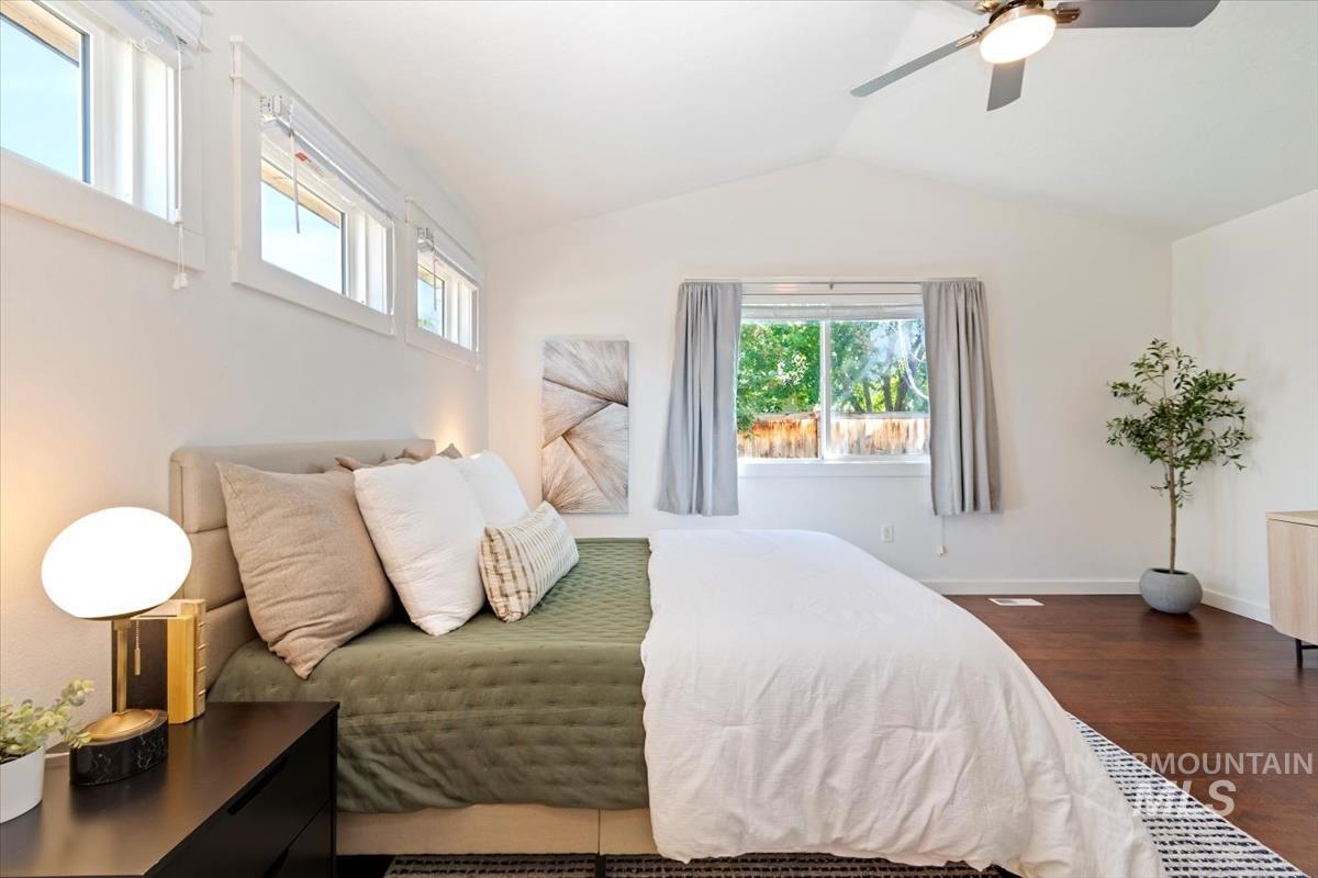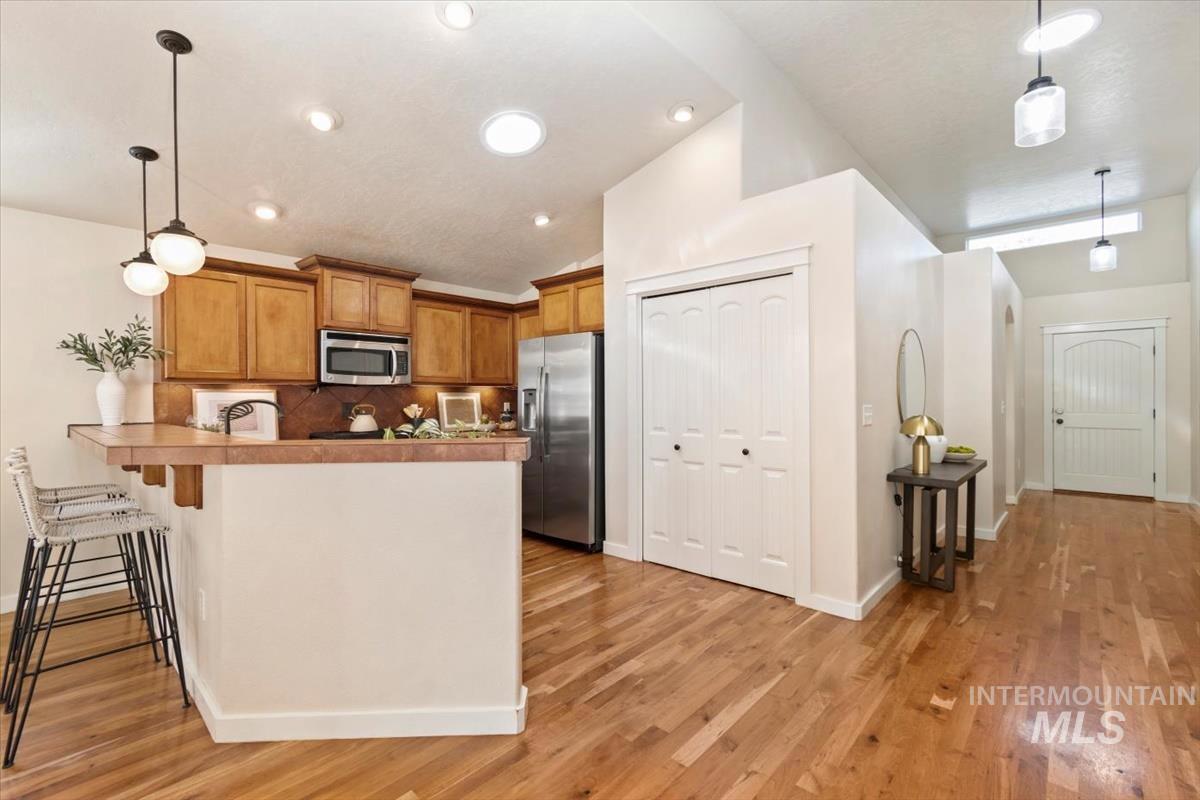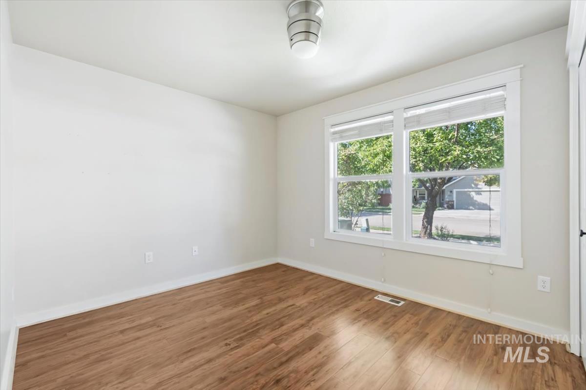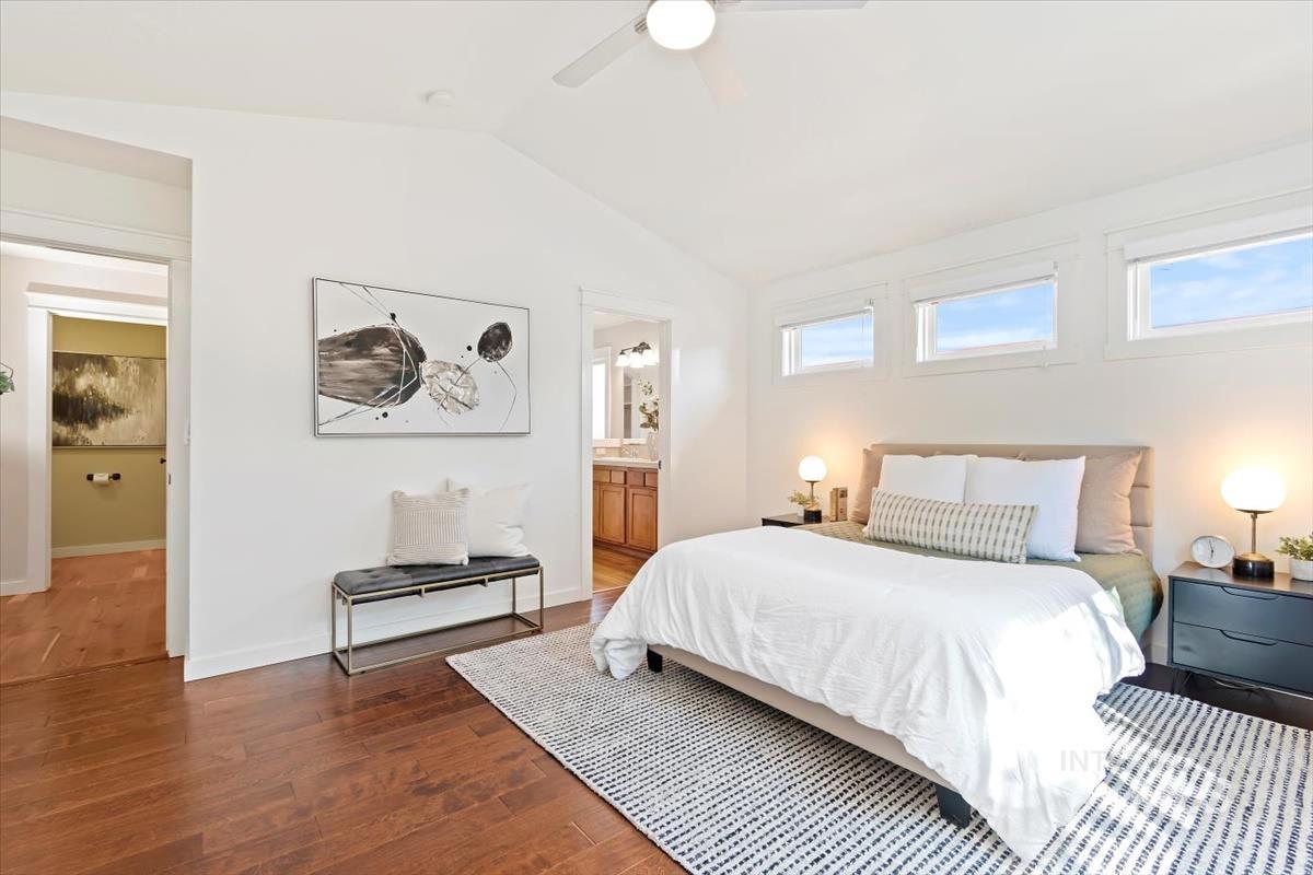 Functional and inviting, this home offers a thoughtful layout in an established Southwest Boise neighborhood, featuring convenient main level living with flexible upstairs bonus space. Durable wood flooring throughout ensures easy upkeep, while wood blinds add both privacy and timeless style. Well-appointed kitchen is complete with Bosch dishwasher, gas range, under-cabinet lighting, and pantry. The kitchen flows seamlessly into the dining nook and great room, accented by a cozy gas fireplace. Private master retreat overlooks the backyard and includes an ensuite with dual sinks, soaker tub, separate shower, and walk-in closet. Upstairs, a versatile bonus room provides the perfect space for guests, a media room, or home office. Enjoy the peaceful backyard with its pergola-covered patio and ideal balance of lawn and low-maintenance landscaping—perfect for both relaxing and entertaining.