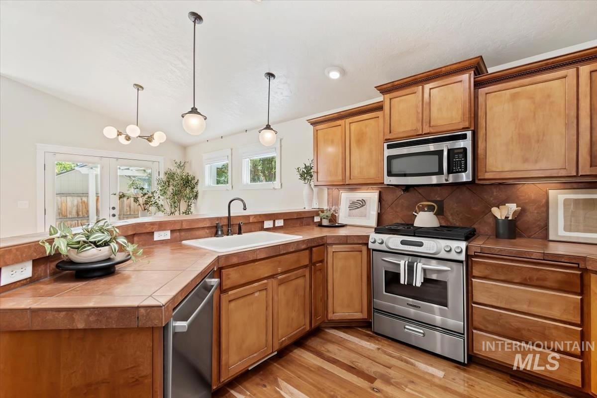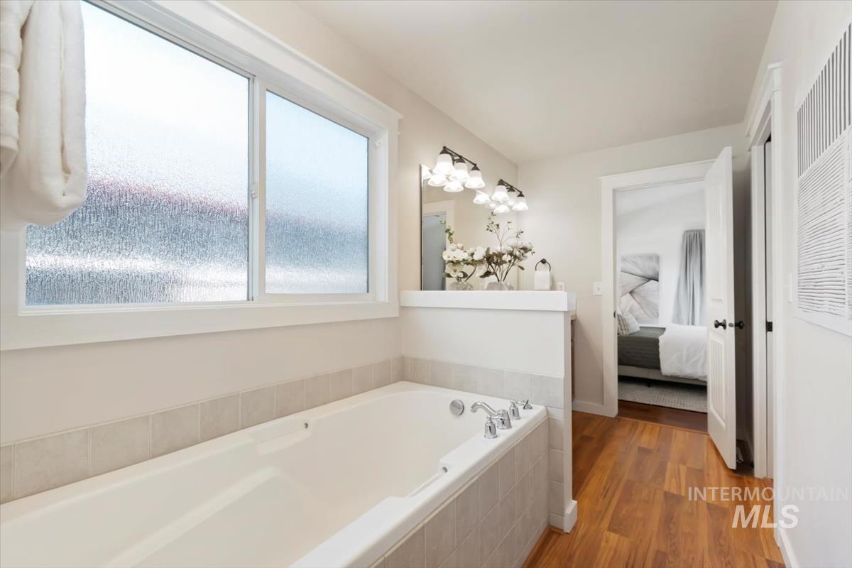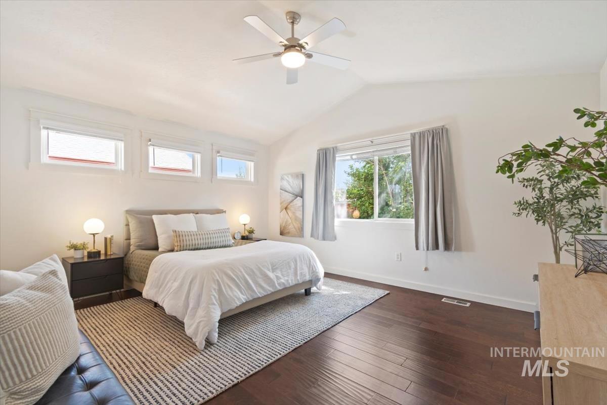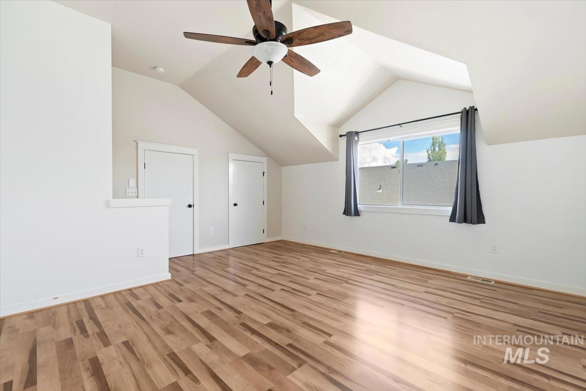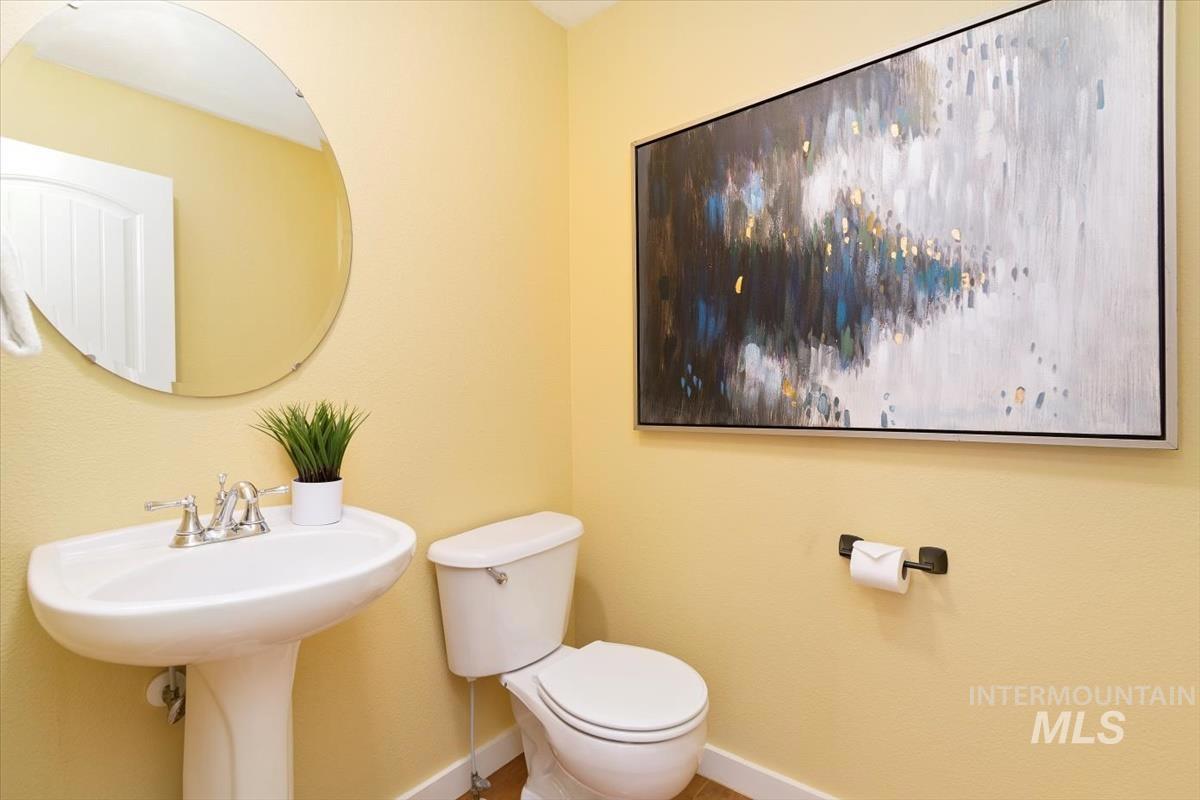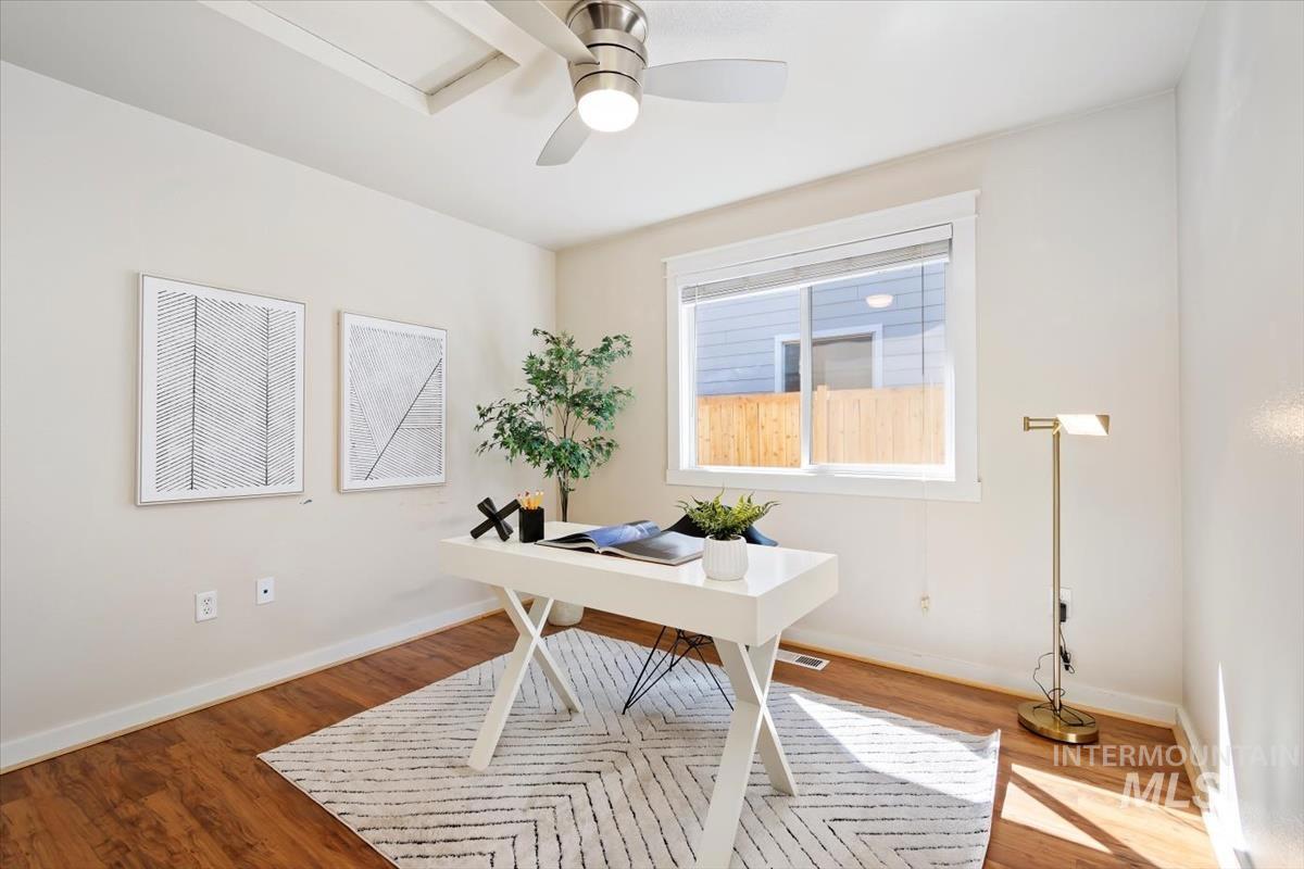 Functional and inviting, this home offers a thoughtful layout in an established Southwest Boise neighborhood, featuring convenient main level living with flexible upstairs bonus space. Durable wood flooring throughout ensures easy upkeep, while wood blinds add both privacy and timeless style. Well-appointed kitchen is complete with Bosch dishwasher, gas range, under-cabinet lighting, and pantry. The kitchen flows seamlessly into the dining nook and great room, accented by a cozy gas fireplace. Private master retreat overlooks the backyard and includes an ensuite with dual sinks, soaker tub, separate shower, and walk-in closet. Upstairs, a versatile bonus room provides the perfect space for guests, a media room, or home office. Enjoy the peaceful backyard with its pergola-covered patio and ideal balance of lawn and low-maintenance landscaping—perfect for both relaxing and entertaining.