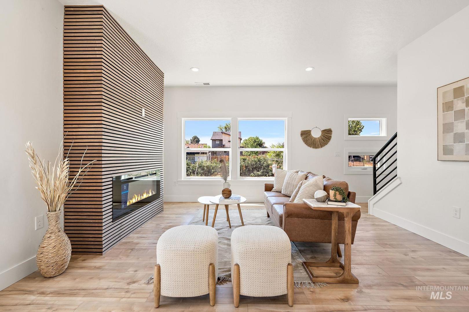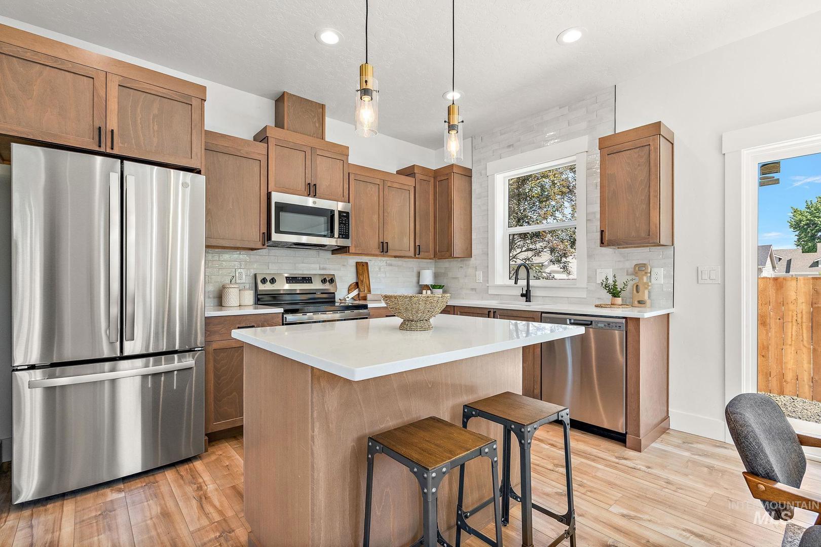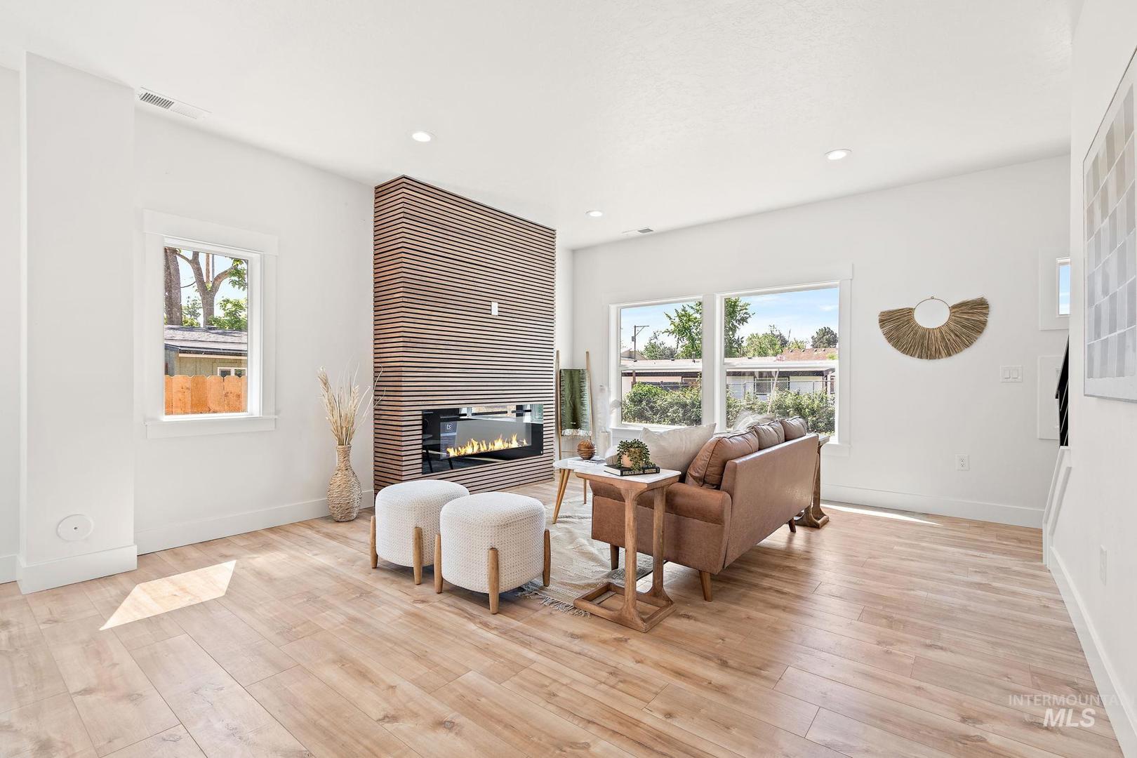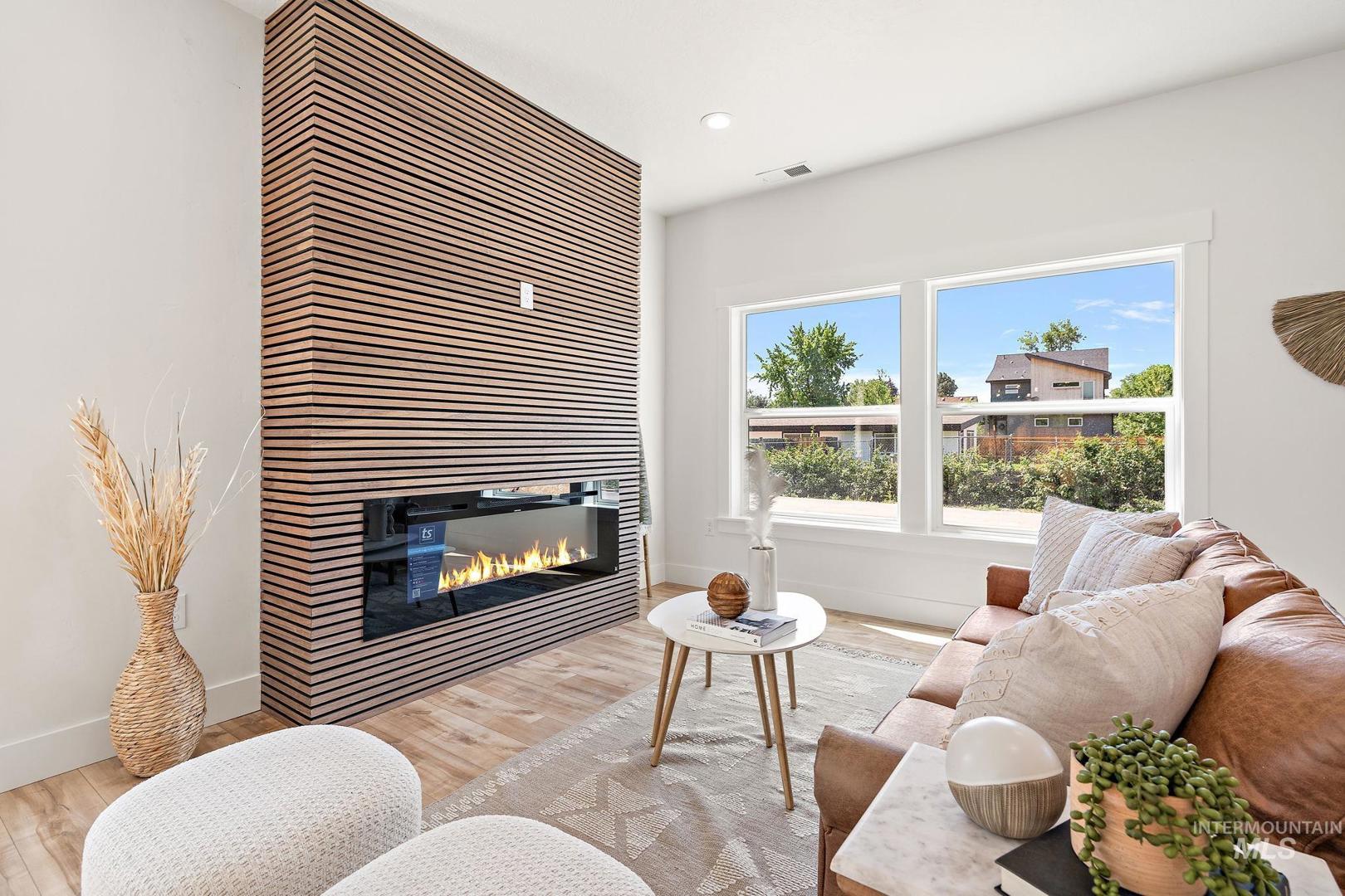Seller will pay $10,000 of your closing expenses on full price offers. Brand-new single-family home with no HOA, designed for modern living just minutes from downtown Boise and the Greenbelt. A private balcony overlooks mature trees, creating a rare sense of retreat in the city. This home features custom soft-close cabinets, a beautiful custom window package, and an included new stainless refrigerator. The open floor plan flows seamlessly around an impressive electric fireplace—creating a cozy, inviting space that’s perfect for hosting family and friends during the holidays. Inside, the flexible floor plan features three full baths upstairs and a half bath on the main, offering plenty of space for larger households or guests. The home is finished with quartz counters, soft-close cabinetry, durable flooring, and a refrigerator already included. Outside, the yard is fully landscaped with fencing and sprinklers complete—ready to enjoy from day one. Among the three new homes on Jackie Lane, this property stands out for its private outlook and thoughtful layout, blending space, privacy, and style in one of Boise’s most convenient locations.