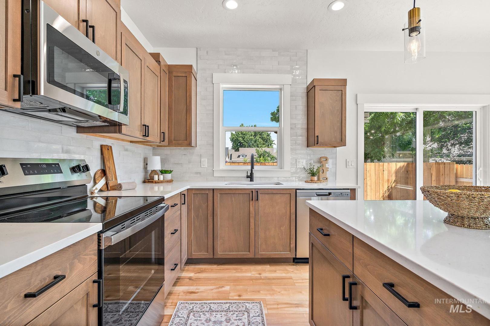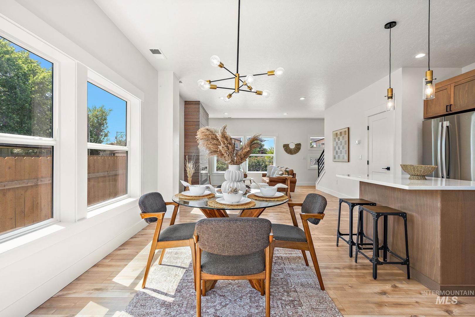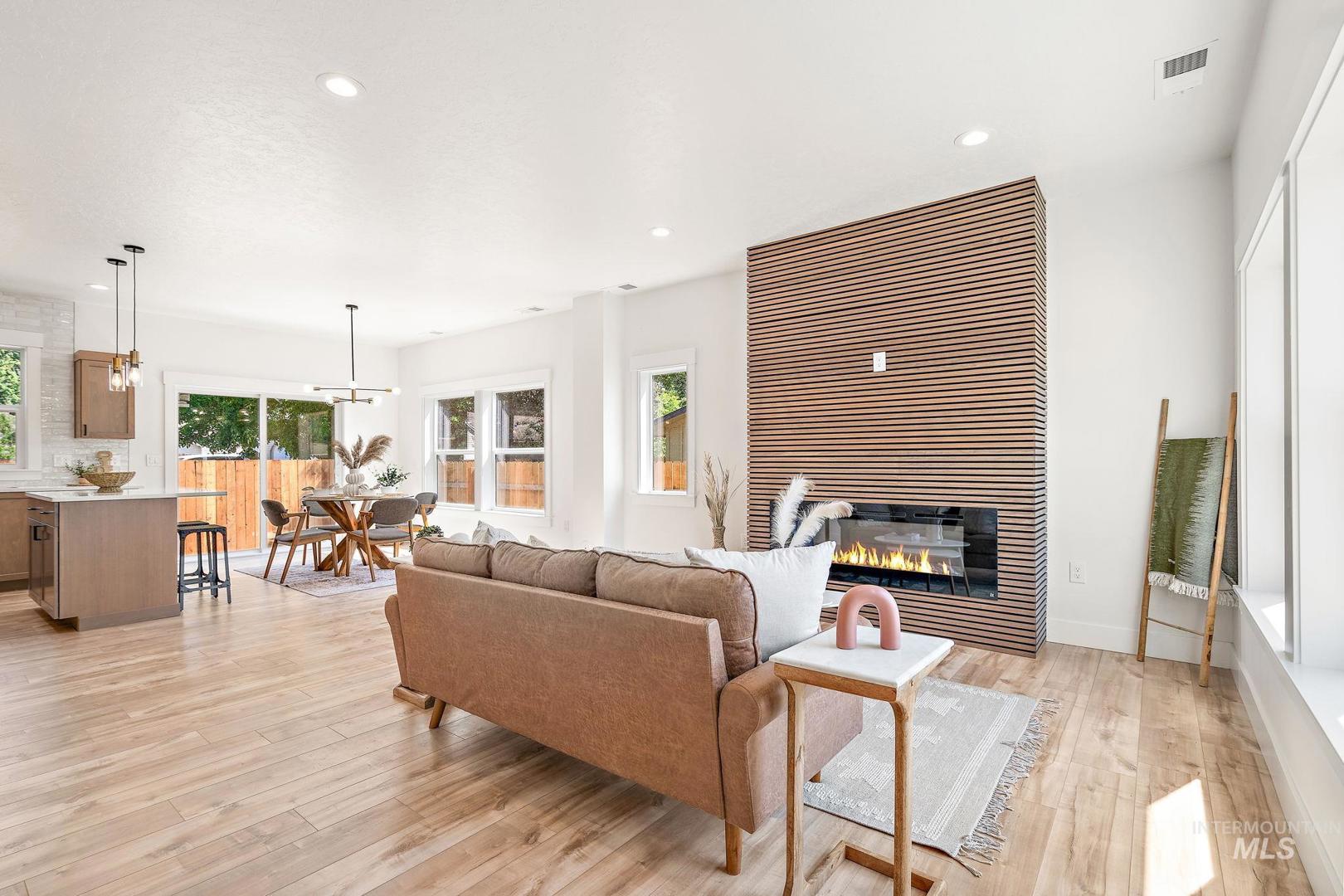Seller will pay $10,000 of your closing expenses on full price offers. Brand-new single-family home with no HOA, designed for modern living just minutes from downtown Boise and the Greenbelt. A private balcony overlooks mature trees, creating a rare sense of retreat in the city. This home features custom soft-close cabinets, a beautiful custom window package, and an included new stainless refrigerator. The open floor plan flows seamlessly around an impressive electric fireplace—creating a cozy, inviting space that’s perfect for hosting family and friends during the holidays. Inside, the flexible floor plan features three full baths upstairs and a half bath on the main, offering plenty of space for larger households or guests. The home is finished with quartz counters, soft-close cabinetry, durable flooring, and a refrigerator already included. Outside, the yard is fully landscaped with fencing and sprinklers complete—ready to enjoy from day one. Among the three new homes on Jackie Lane, this property stands out for its private outlook and thoughtful layout, blending space, privacy, and style in one of Boise’s most convenient locations.