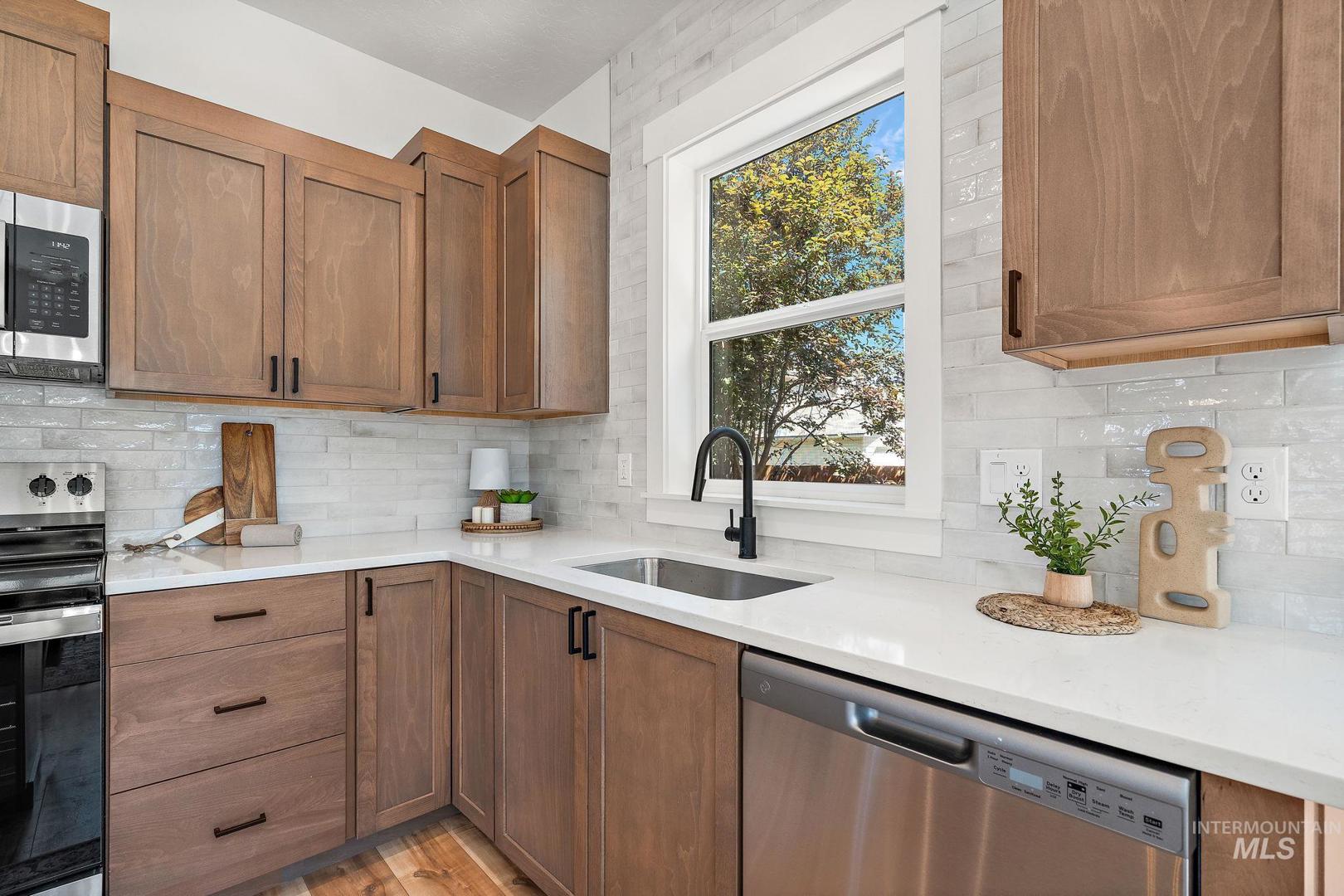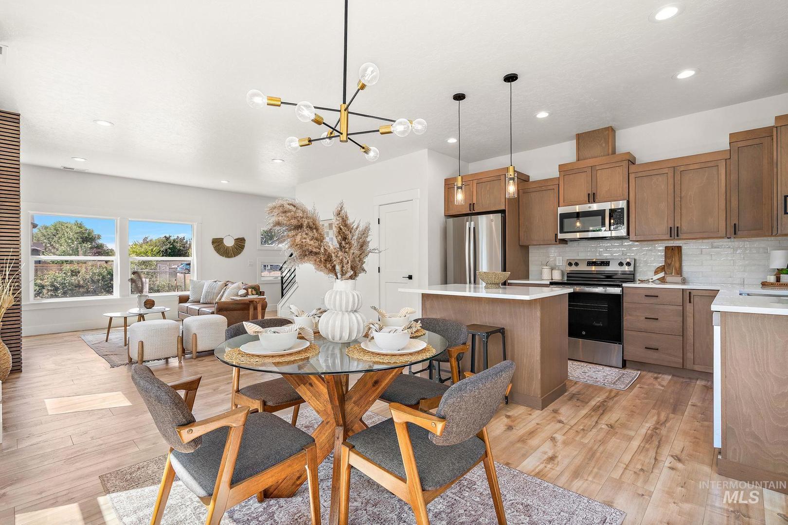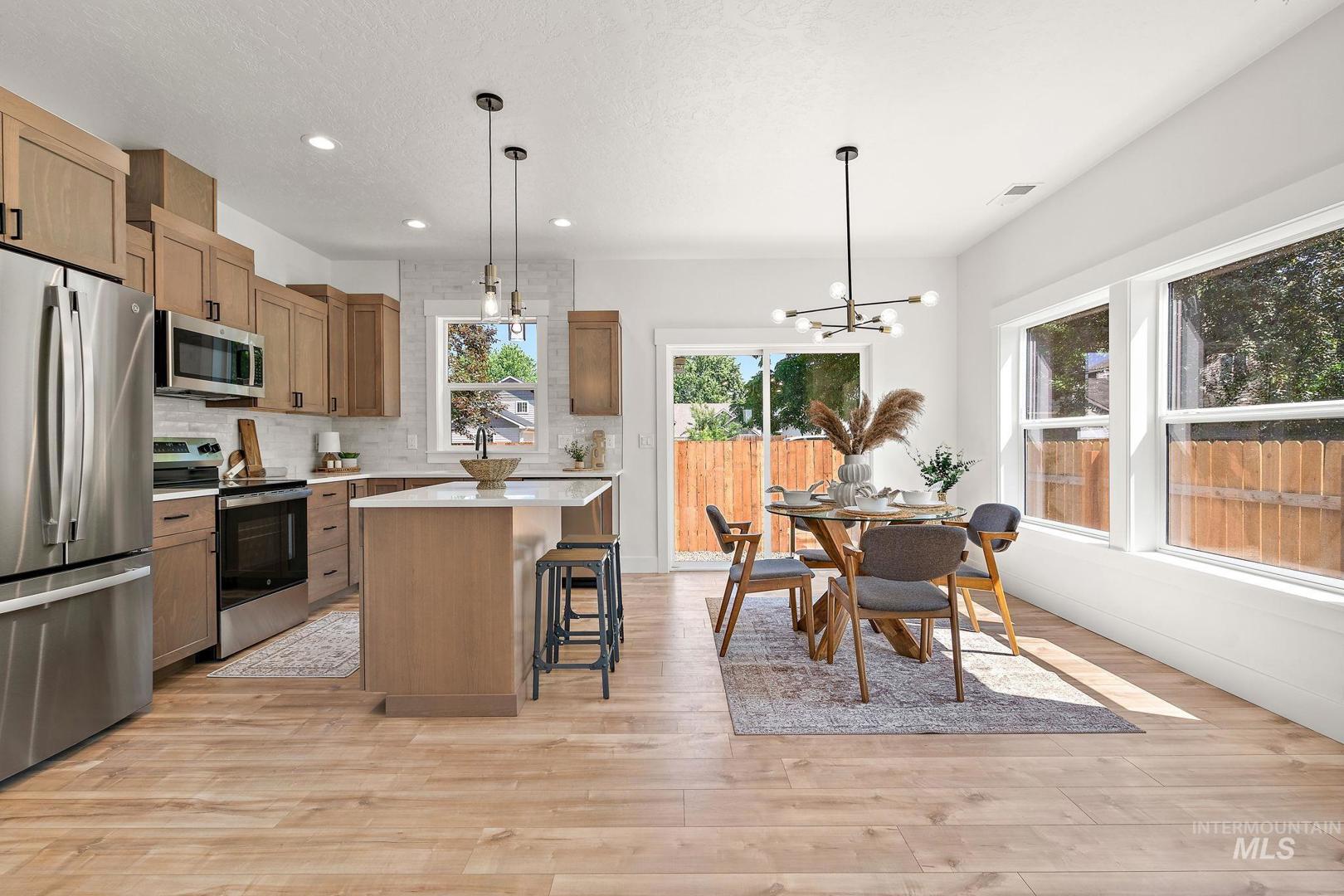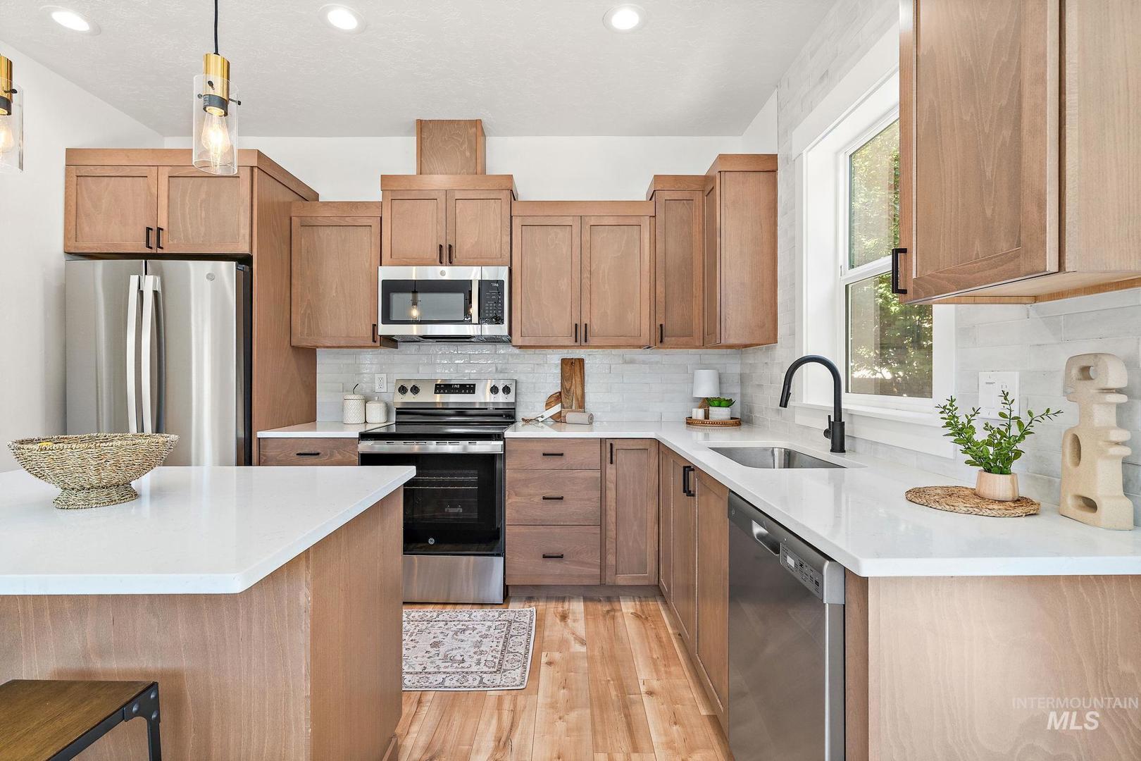 Seller will pay $10,000 of your closing expenses on full price offers. Brand-new single-family home with no HOA, designed for modern living just minutes from downtown Boise and the Greenbelt. A private balcony overlooks mature trees, creating a rare sense of retreat in the city. This home features custom soft-close cabinets, a beautiful custom window package, and an included new stainless refrigerator. The open floor plan flows seamlessly around an impressive electric fireplace—creating a cozy, inviting space that’s perfect for hosting family and friends during the holidays. Inside, the flexible floor plan features three full baths upstairs and a half bath on the main, offering plenty of space for larger households or guests. The home is finished with quartz counters, soft-close cabinetry, durable flooring, and a refrigerator already included. Outside, the yard is fully landscaped with fencing and sprinklers complete—ready to enjoy from day one. Among the three new homes on Jackie Lane, this property stands out for its private outlook and thoughtful layout, blending space, privacy, and style in one of Boise’s most convenient locations.