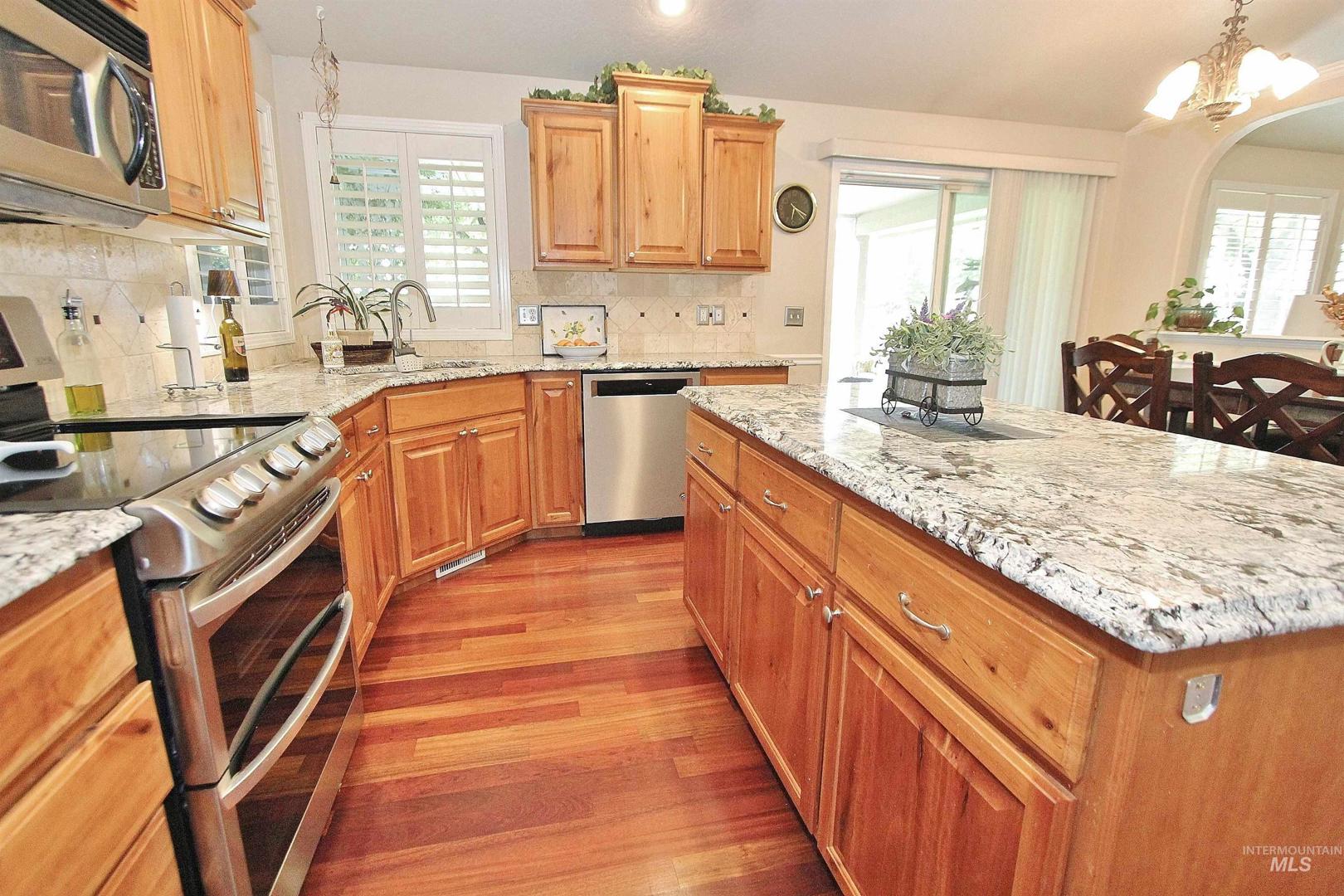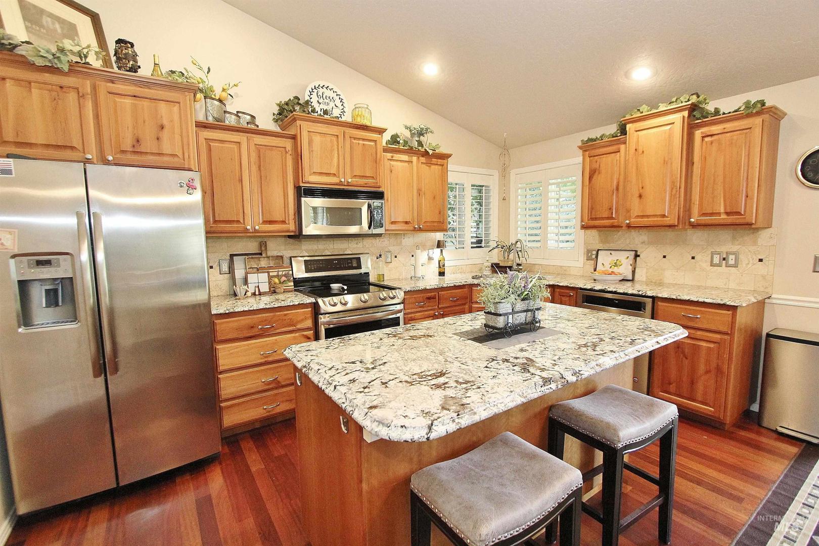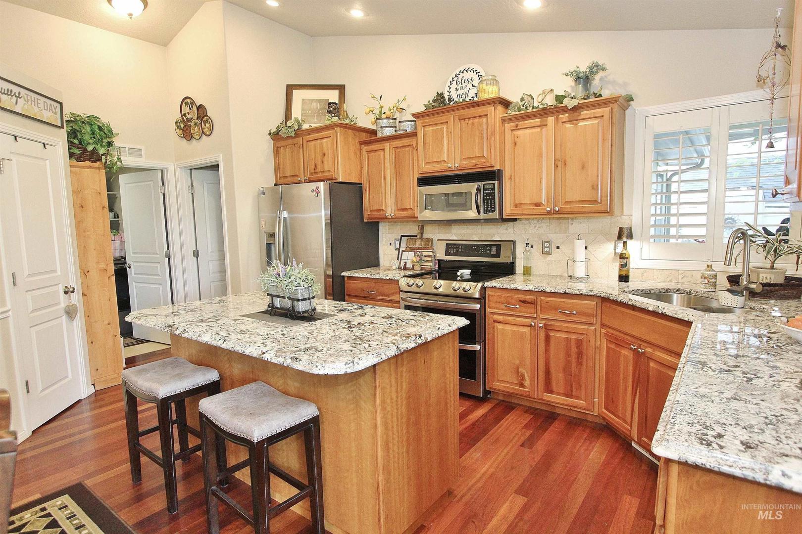 This lovely and inviting home can be yours! Located in a great area. The open floor plan and vaulted family room have great natural light and feel so spacious. The kitchen has granite counter tops and island as well as and a walk-in pantry. The plan includes separate bedrooms. The primary suite has a walk in closet and the bath has a separate shower and soaker tub along with dual sinks. The bonus room upstairs is large and perfect for activities. The private covered patio has a view of the community park and paths. Concrete pad next to the garage perfect for parking toys or small RV. The park includes a playground for the kids and a community pool.