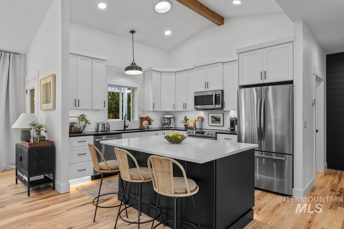 This completely remodeled home is perfectly located in an unbeatable location, minutes from Boise, Eagle and HWY 55 for easy access to your mountain adventures. Situated in a serene cul-de-sac, just steps from the greenbelt and Boise river, offering a peaceful and quiet community ambiance. Inside you will find modern and upgraded finishes throughout including hardwood floors, vaulted ceilings and a large primary suite with two generous closets. The backyard features a secret garden vibe with a syringa tree, pee gee hydrangeas, rose bushes and peonies, creating a tranquil outdoor oasis. Highly desirable Lakeland Village boasts an abundance of wildlife and access to eight stocked ponds ideal for fishing and paddle boarding, making every day feel like a retreat. Perfect for maintenance-free or a lock and leave situation, the HOA dues cover weekly lawn mowing, seasonal cleanup, fertilization, weed control, and sprinkler services, ensuring an easy lifestyle!
