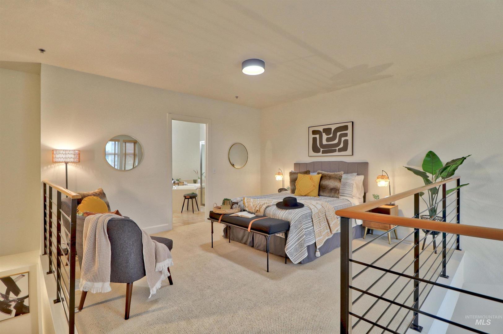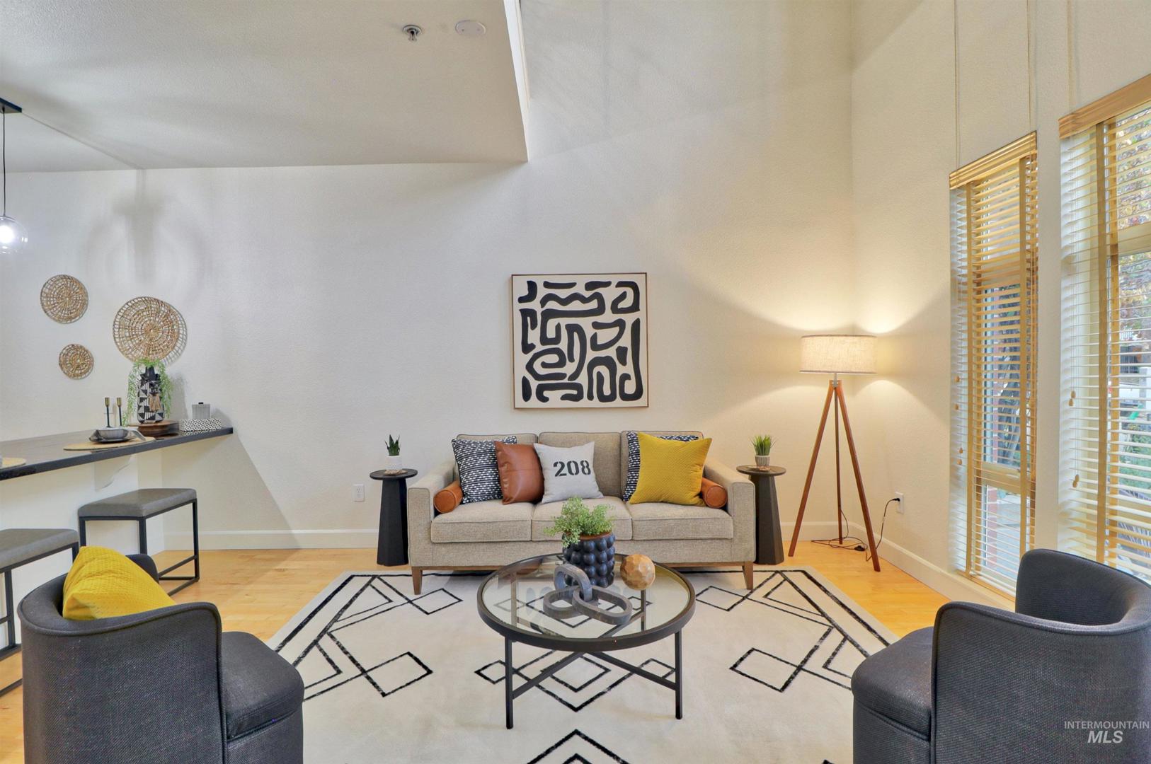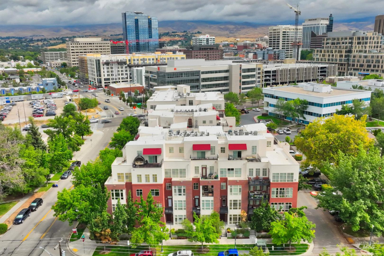 Welcome to your urban oasis in the heart of vibrant Downtown Boise! Located just steps from the Boise River, BSU & parks, this chic 1-bedroom loft-style condo offers a perfect blend of modern comfort and city sophistication. This condo lives like a townhome with easy, private street-entry/access and your own gated courtyard. Walking into the great room, you are greeted by the open floor plan featuring high ceilings and large windows that flood the space with natural light, it`s the perfect space to gather and make memories. Freshly painted, new fixtures, engineered hardwood flooring, granite countertops, stainless appliances, pantry, 1/2 bath & full laundry. The 2nd level is home to the spacious primary suite with glass shower, soaker tub, walk in closet and private balcony. *Includes 1 deeded, secured parking space in the gated community garage. Rooftop patio with bbq and views of the city. This condo is perfect for those seeking a modern, low-maintenance lifestyle with all the benefits of downtown living.