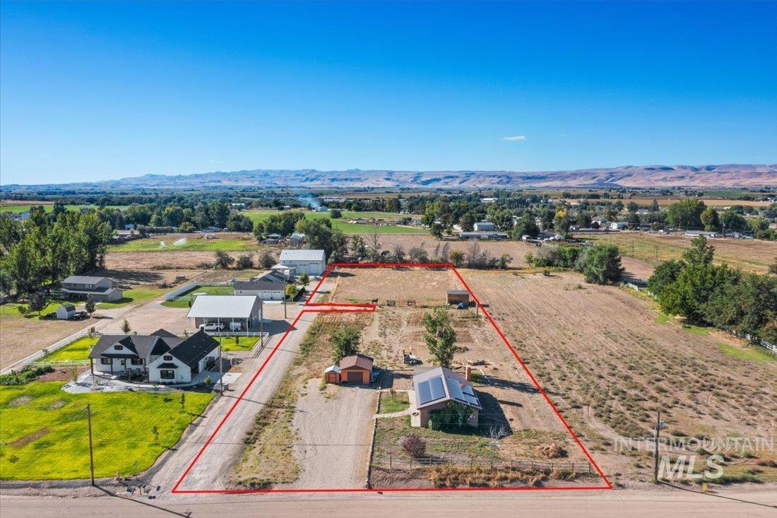 Embrace the best of Idaho country living with this charming 2-bedroom brick home plus office, nestled on 2 acres that are already split for future potential. Framed by sweeping Owyhee Mountain views and surrounded by peaceful open space, this property invites you to slow down and savor the rural lifestyle—while still being just minutes from Sunnyslope’s renowned Wine Trail. The home blends rustic character with thoughtful updates, featuring a durable metal roof, newer HVAC system, and a covered, enclosed patio perfect for year-round enjoyment. Whether you’re sipping coffee at sunrise or winding down at sunset, this home radiates comfort and timeless appeal. For those dreaming of a hobby farm or small agricultural venture, the property is ready to deliver: livestock-friendly zoning, irrigation water rights, and included solar panels provide both opportunity and efficiency. A detached 2-car garage, shed, and lean-to offer flexible space for animals, equipment, or workshop projects.