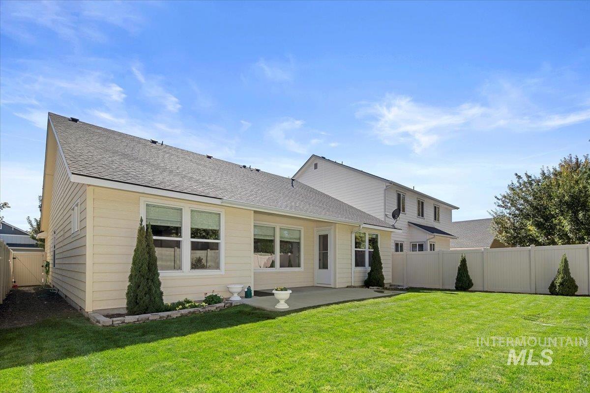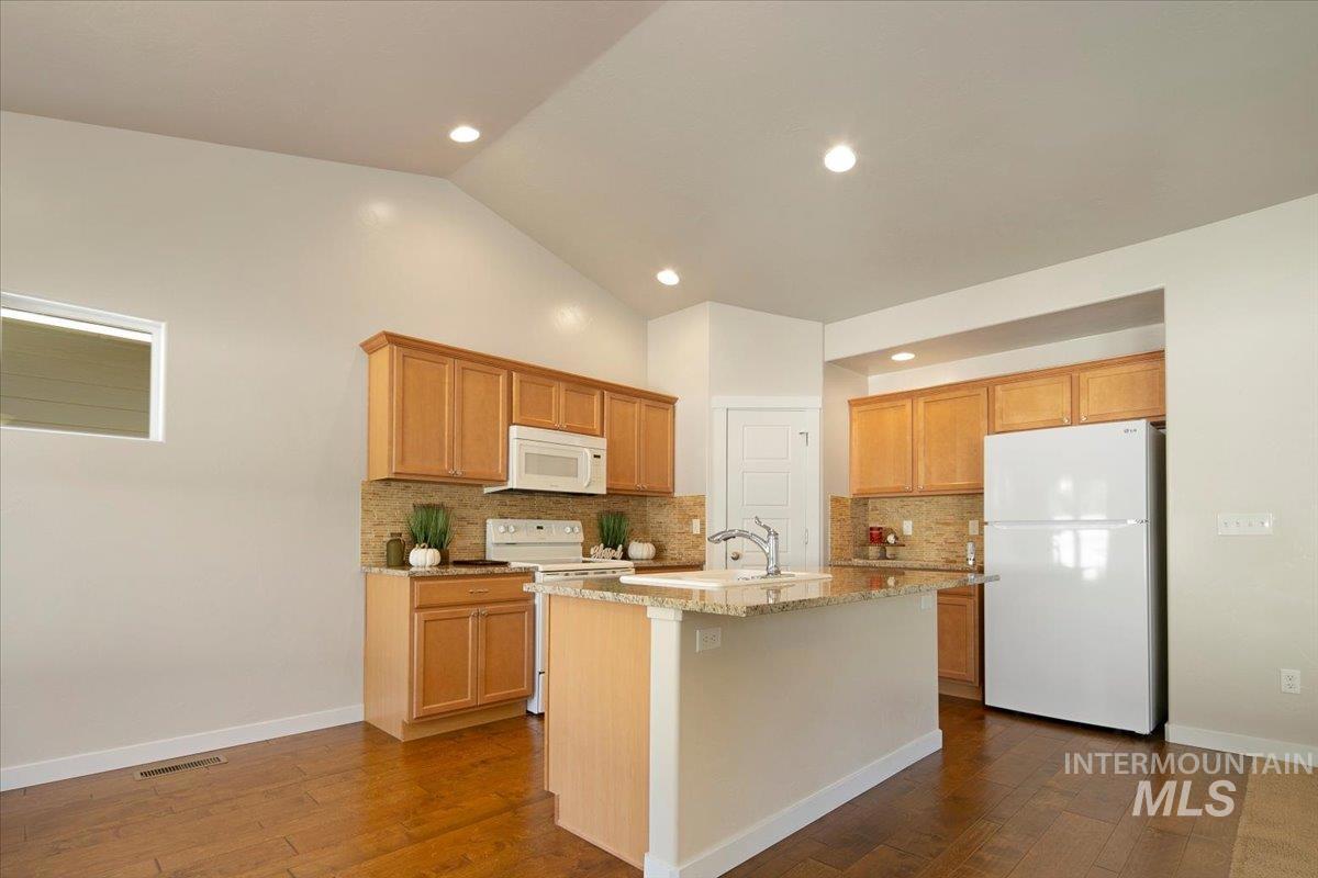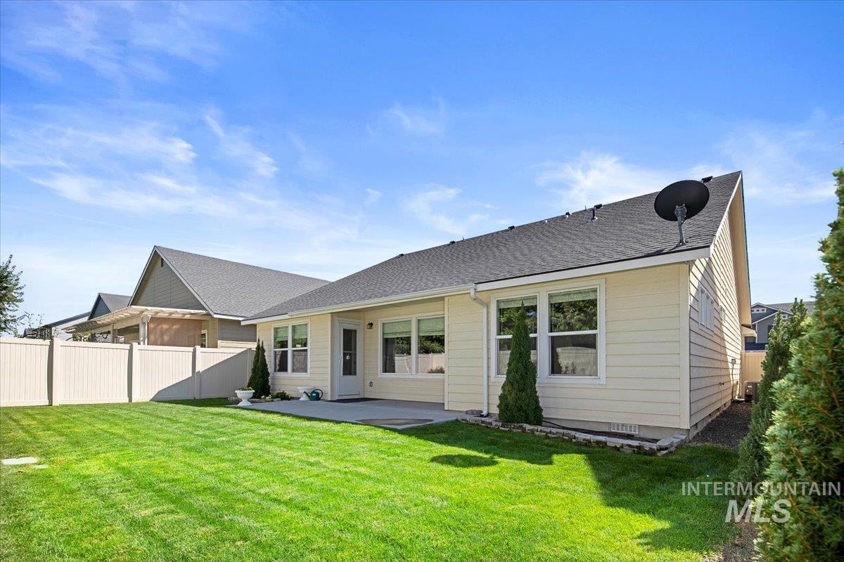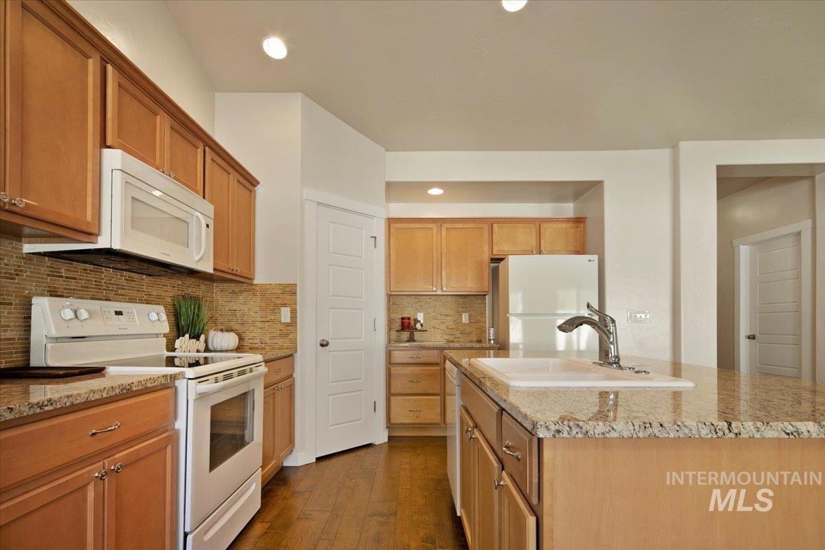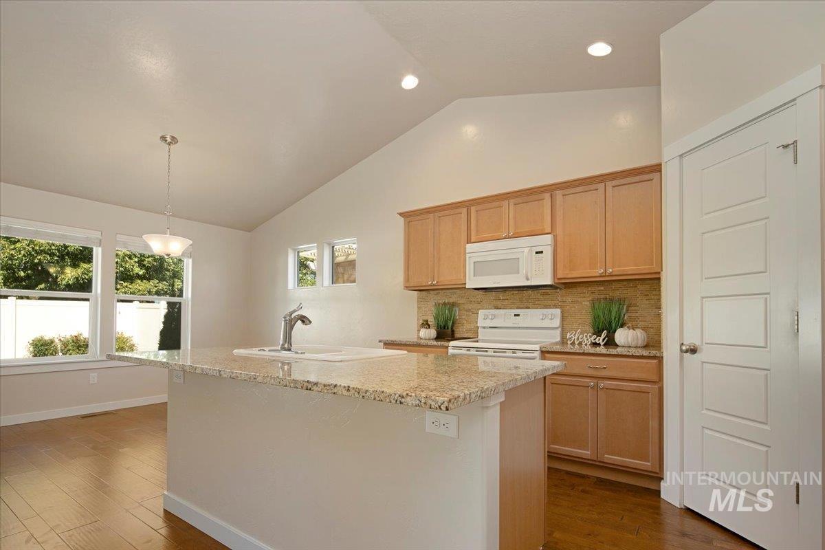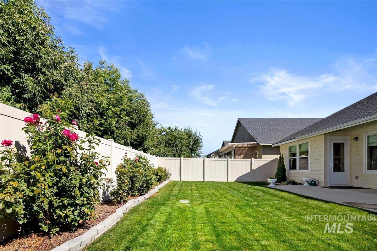 This one-owner, single-level home is sure to delight with its split-bedroom floor plan, great room living, and vaulted ceilings that overlook a beautifully manicured backyard. Engineered wood floors grace the entry hallway, offering a warm welcome to all who enter. The kitchen is a standout with its beautiful granite counters and a full range of appliances, making it both functional and stylish. It opens to the great room, creating an ideal space for entertaining and everyday living. The primary bedroom ensuite is privately situated at the back of the home with serene backyard views and patio access. The ensuite bathroom features dual vanities, a walk-in shower, a large walk-in closet, and a separate commode area. Conveniently, the home has garage access leading directly into the ample-sized laundry room. Built in 2016, this well-maintained home is centrally located with easy access to The Village for shopping, dining, and entertainment. The neighborhood has a walking path and nearby dog park at Redwood park!