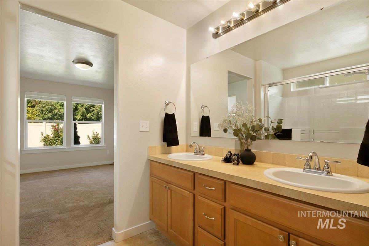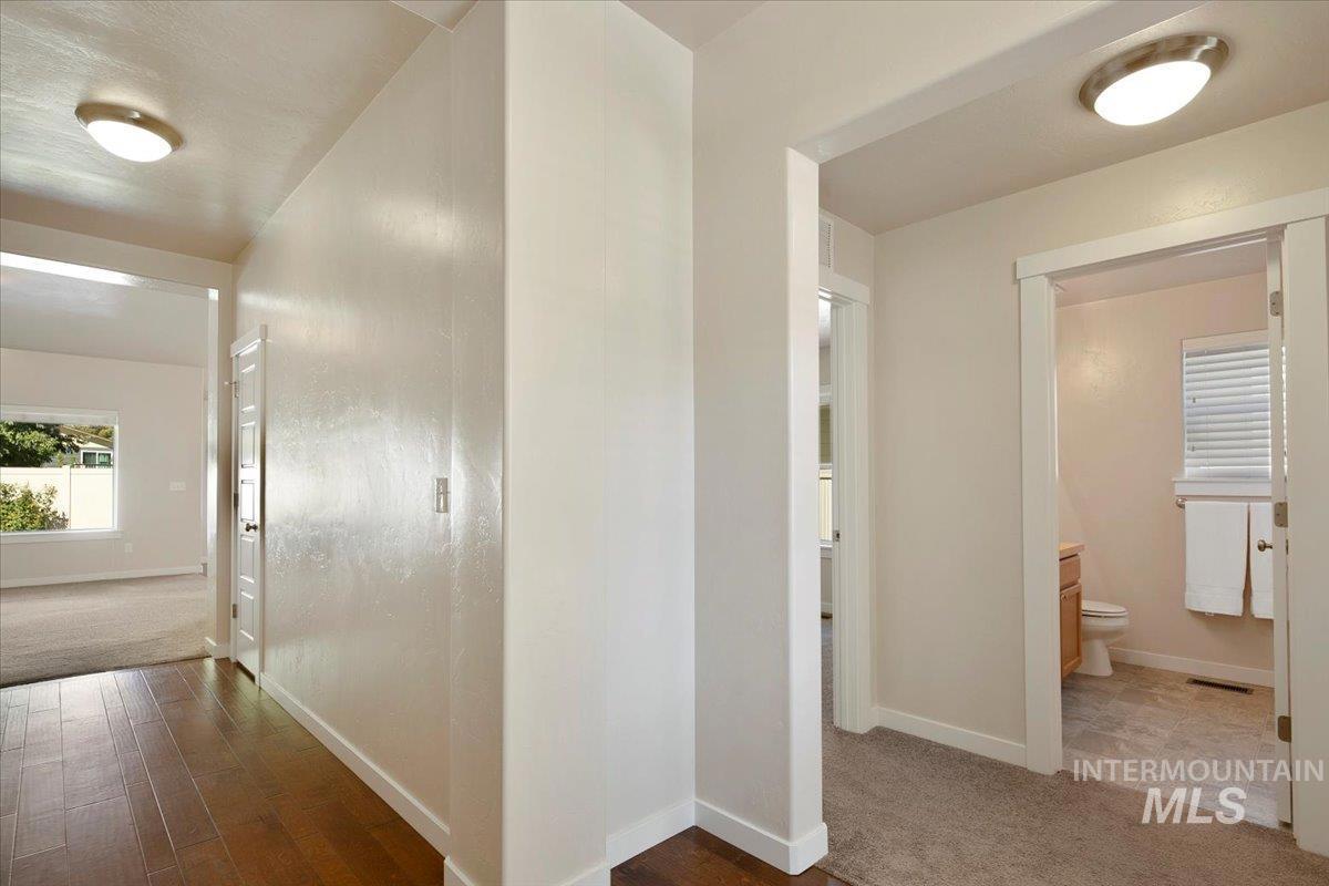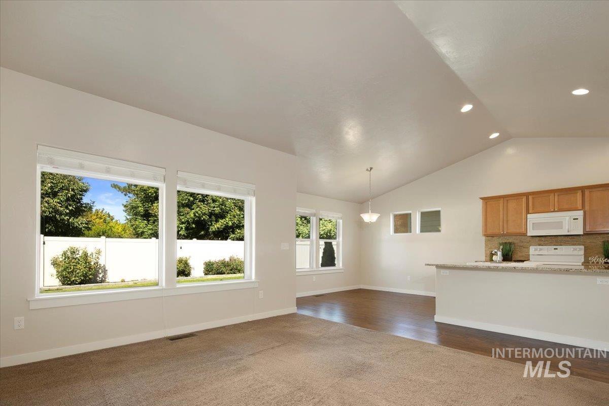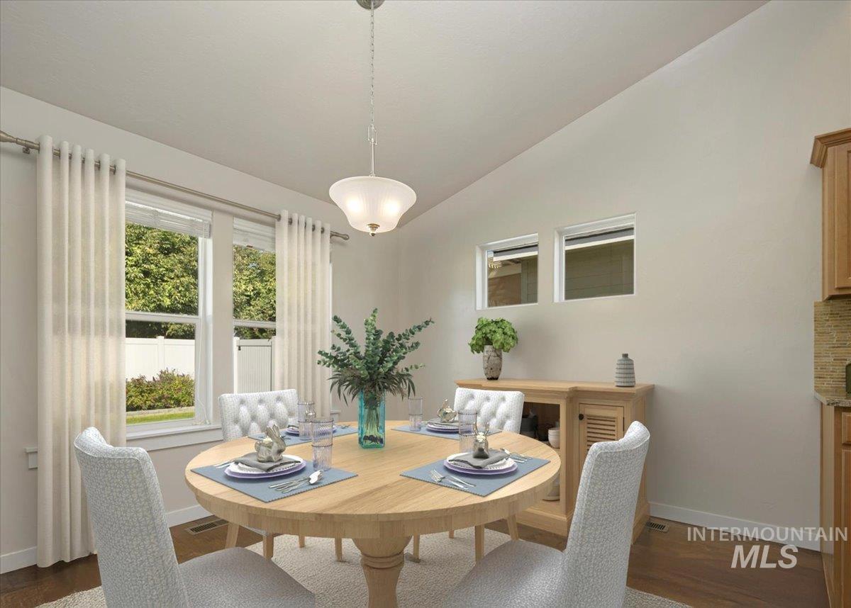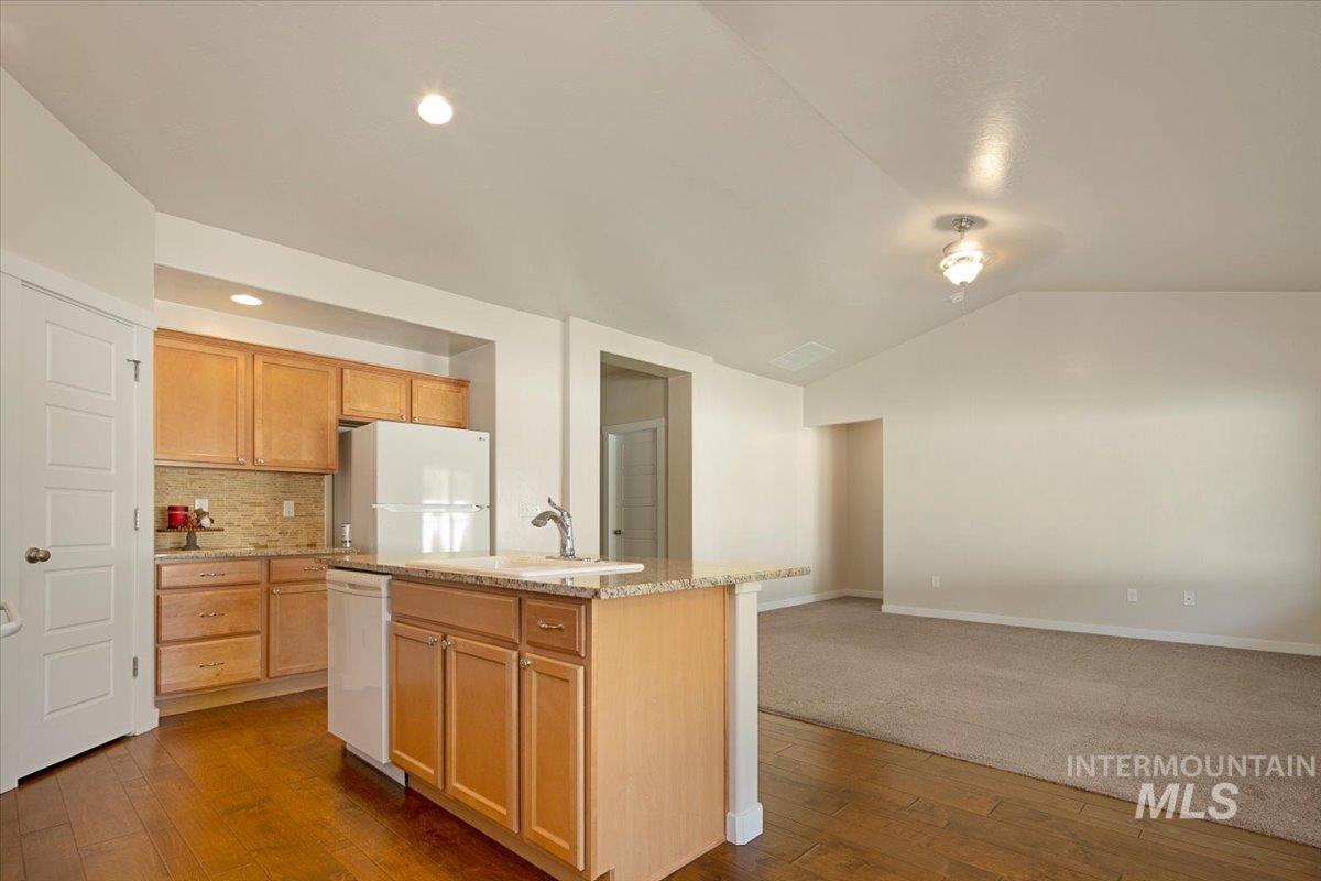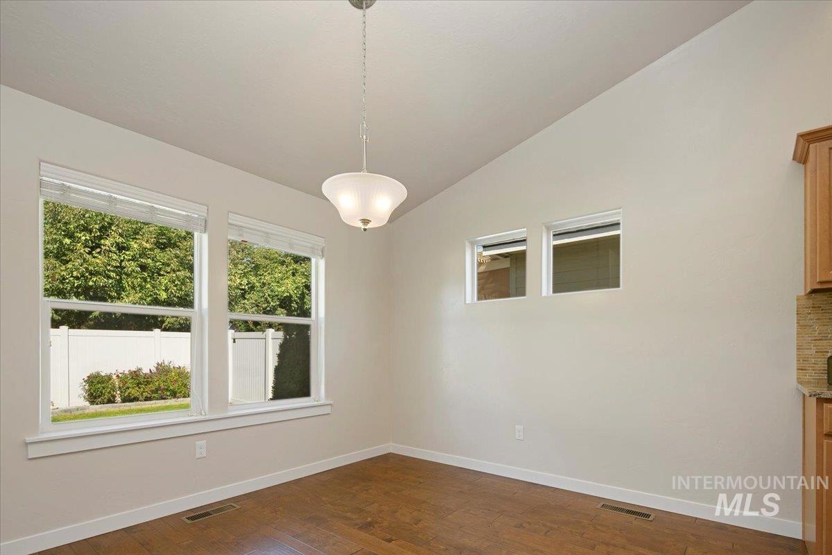This one-owner, single-level home is sure to delight with its split-bedroom floor plan, great room living, and vaulted ceilings that overlook a beautifully manicured backyard. Engineered wood floors grace the entry hallway, offering a warm welcome to all who enter. The kitchen is a standout with its beautiful granite counters and a full range of appliances, making it both functional and stylish. It opens to the great room, creating an ideal space for entertaining and everyday living. The primary bedroom ensuite is privately situated at the back of the home with serene backyard views and patio access. The ensuite bathroom features dual vanities, a walk-in shower, a large walk-in closet, and a separate commode area. Conveniently, the home has garage access leading directly into the ample-sized laundry room. Built in 2016, this well-maintained home is centrally located with easy access to The Village for shopping, dining, and entertainment. The neighborhood has a walking path and nearby dog park at Redwood park!
