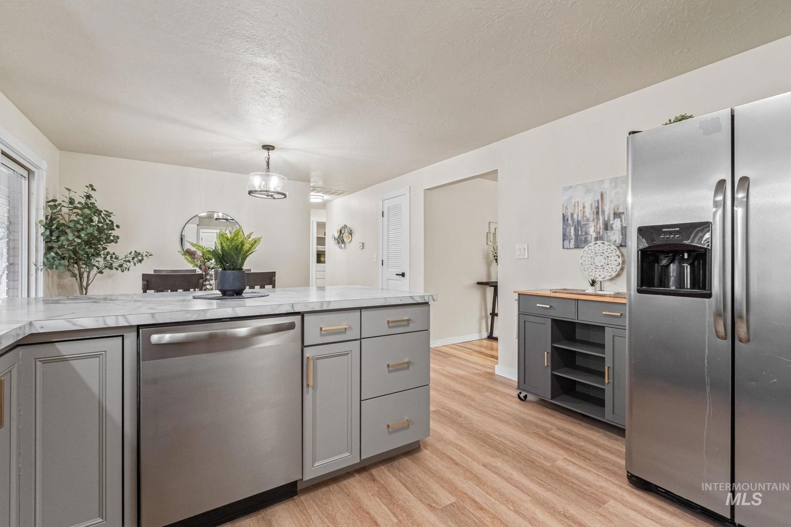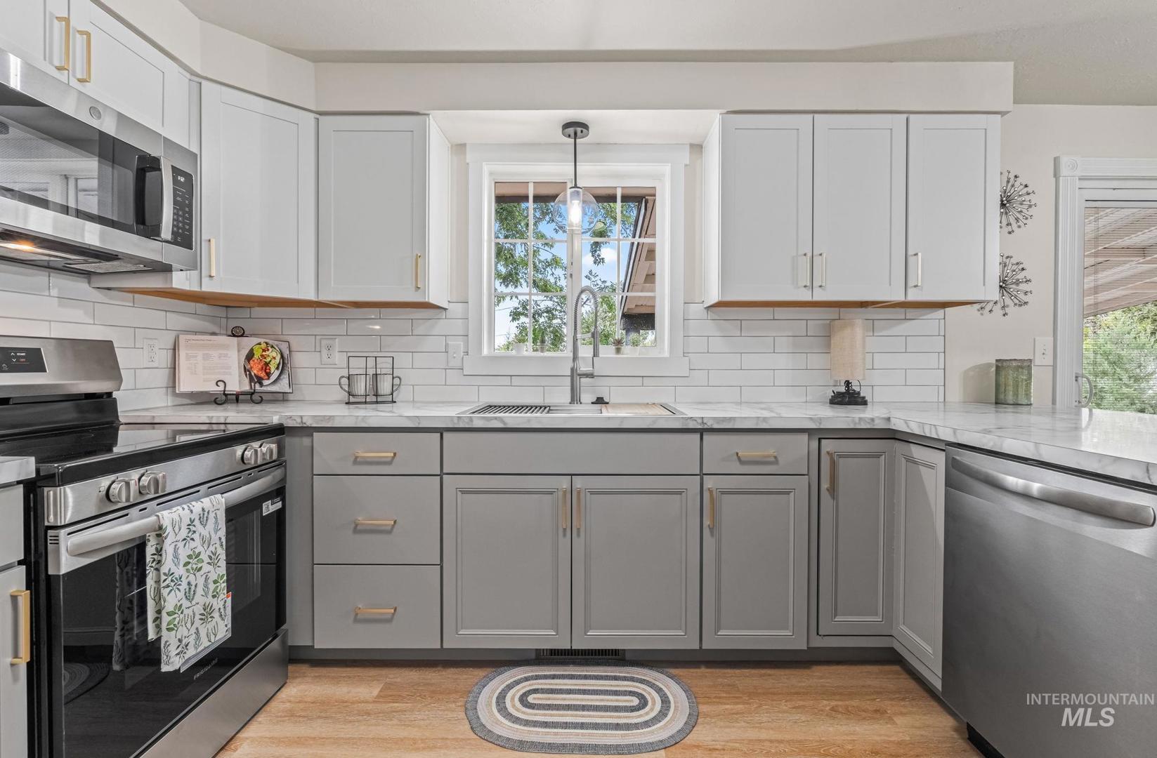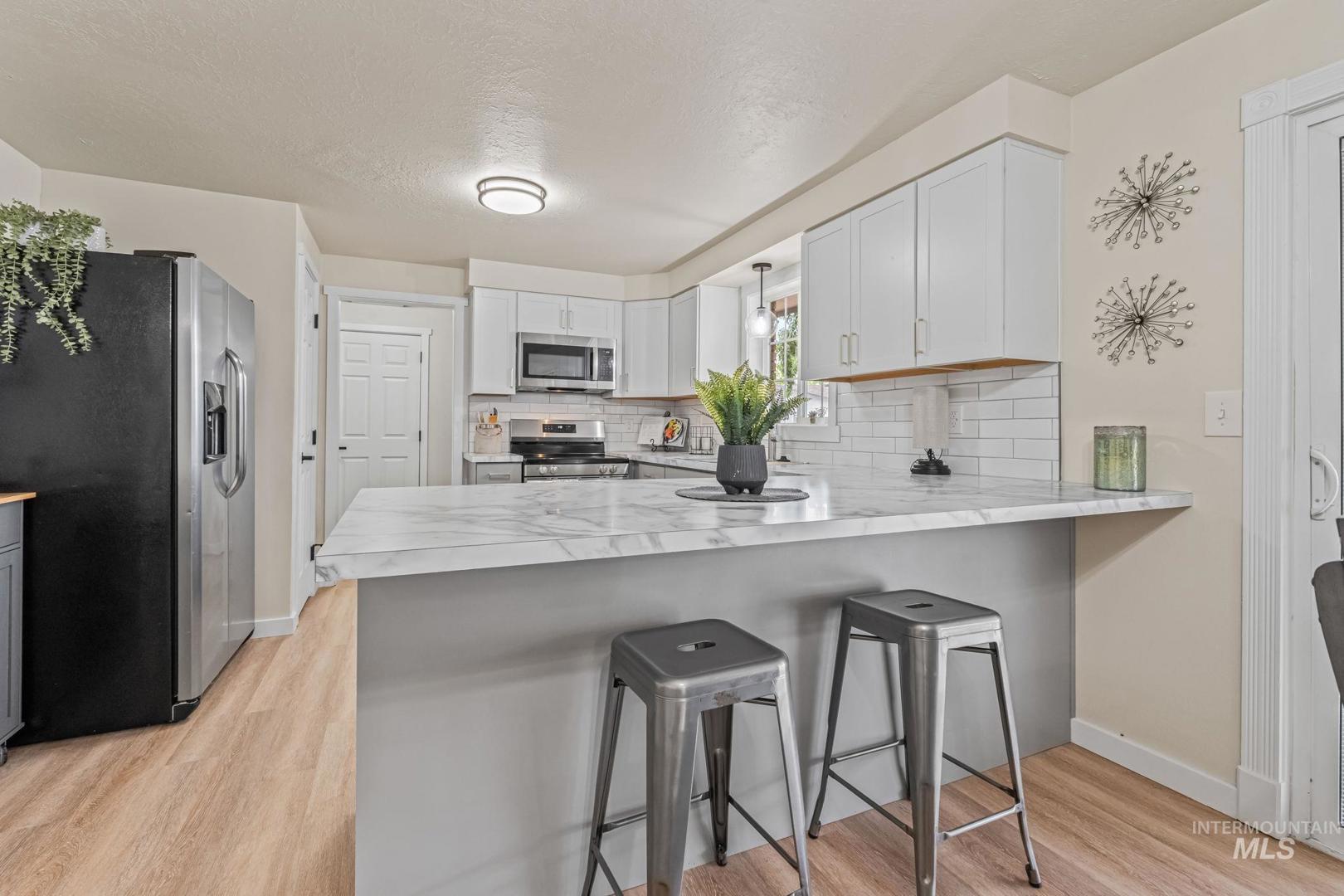 You`ll love this freshly-rehabbed mid-century home on the bench! It`s absolutely charming inside and out, with new interior paint, refinished hardwood floors, and brand new LVP. The kitchen has a pantry, and it also has stainless steel appliances, new cabinets, and new countertops. The bathrooms also have new vanities. The front yard is beautiful, with something blooming all the time, and you`ll love the backyard with its covered patio, firepit, and storage shed. There is a big garden area that could be turned into RV parking with little work, and the house has a brand new roof and newer vinyl windows. It`s also convenient to downtown, BSU, the freeway, and the airport. 13-month home warranty with a full-price offer. Make sure you go see it today!