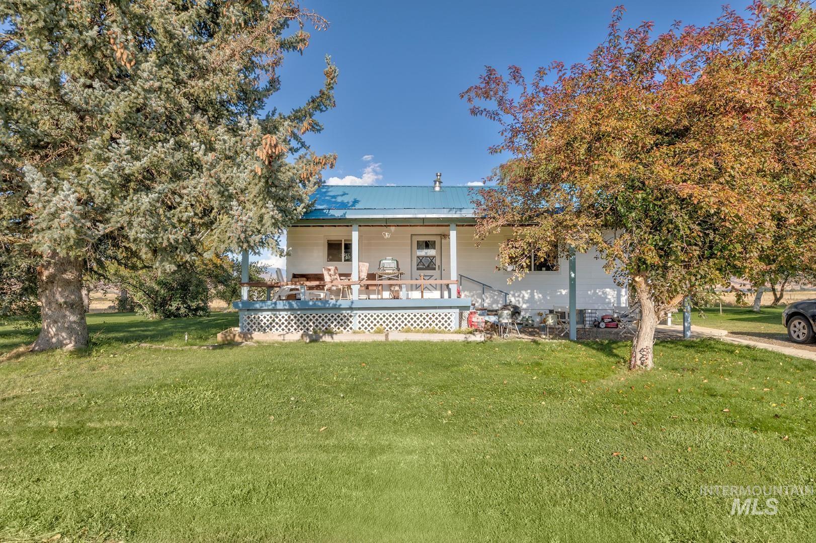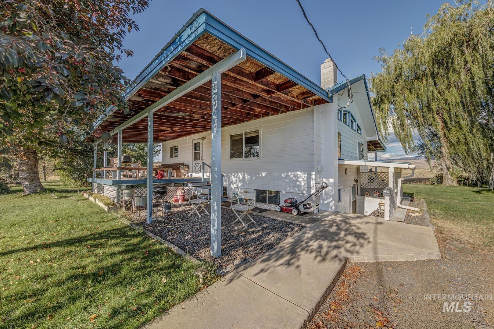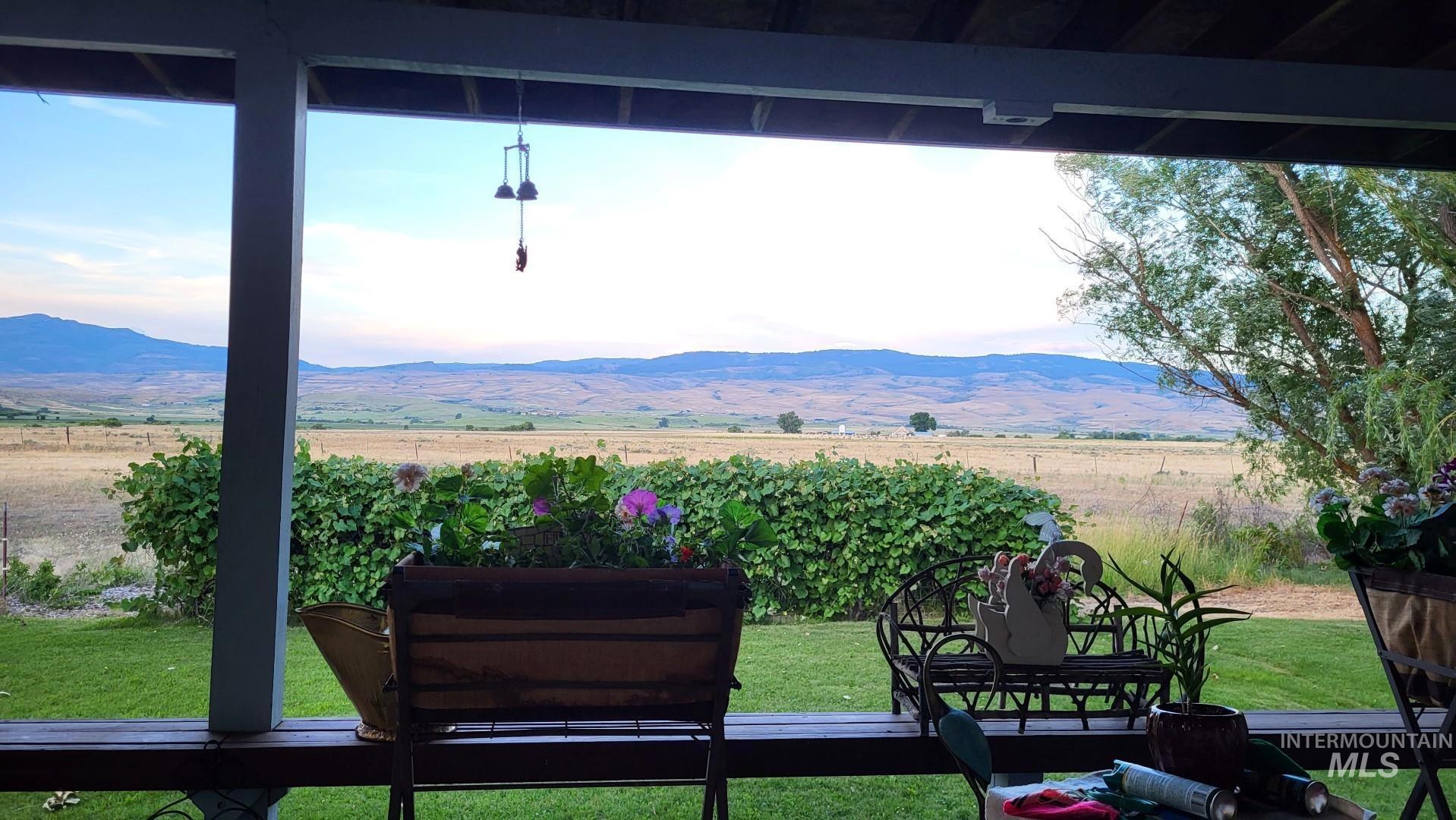 Welcome to the tranquility of country life, set amongst fields, beautiful panoramic views, & wildlife on this 20-acre mini ranch. The property includes a multi-gen open floor plan home, 3 bay garage w/extra storage area, & separate workshop. The covered front deck leads into the main level of the house, where you`ll find an open & airy great room, kitchen, dining, & primary bedroom w/ensuite bathroom. Features include a cathedral tongue & groove wood ceiling, dual pane windows providing great natural light, LVP flooring, pellet stove & electric baseboard heaters for cozy winters, stainless steel down draft stove/oven & refrigerator, & wonderful views from every room. Walk out the back door to another spacious covered deck surrounded by a parklike yard w/numerous shade & fruit trees, & spectacular mountains in the backdrop. The lower level can be accessed from inside, or from a separate covered entrance. Kitchen, dining, 3 bedrooms (or office), family, bath & utility area.