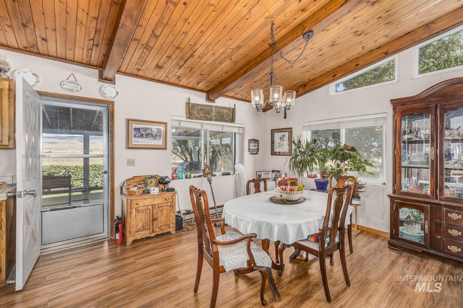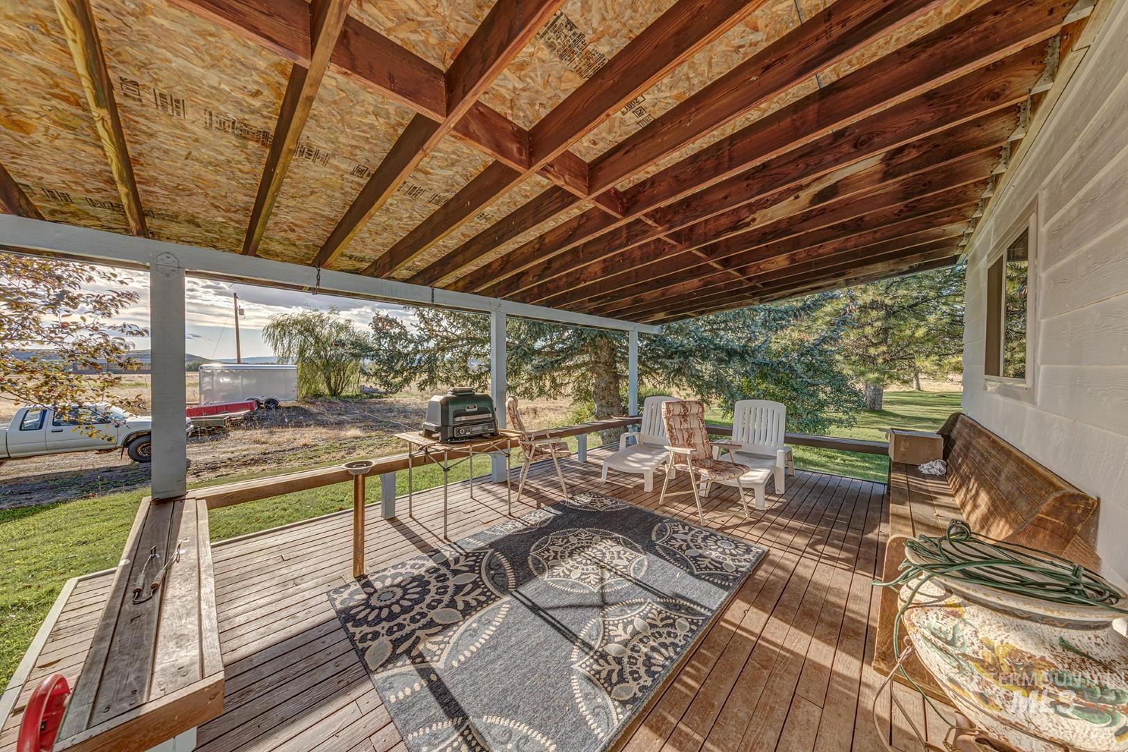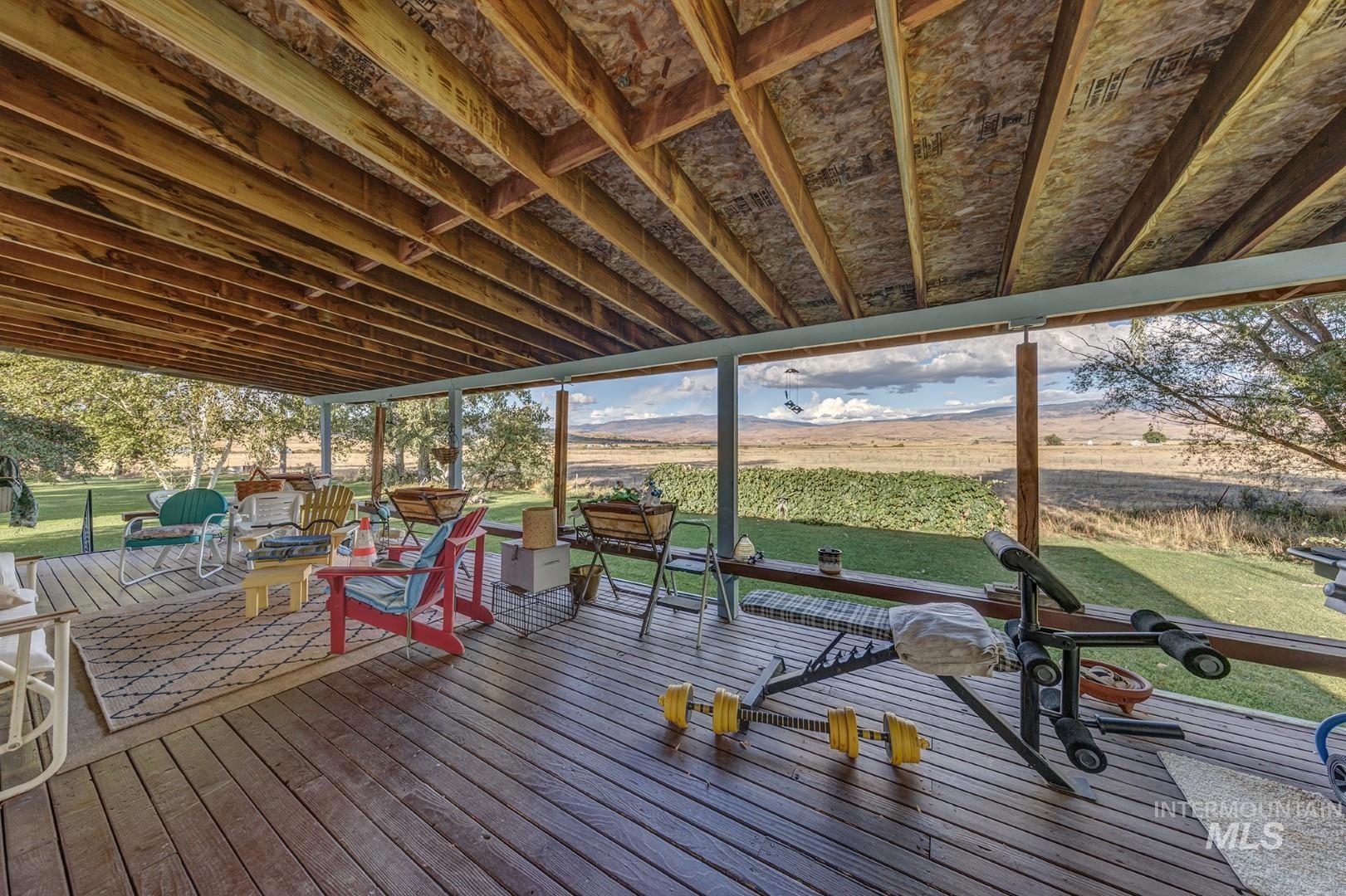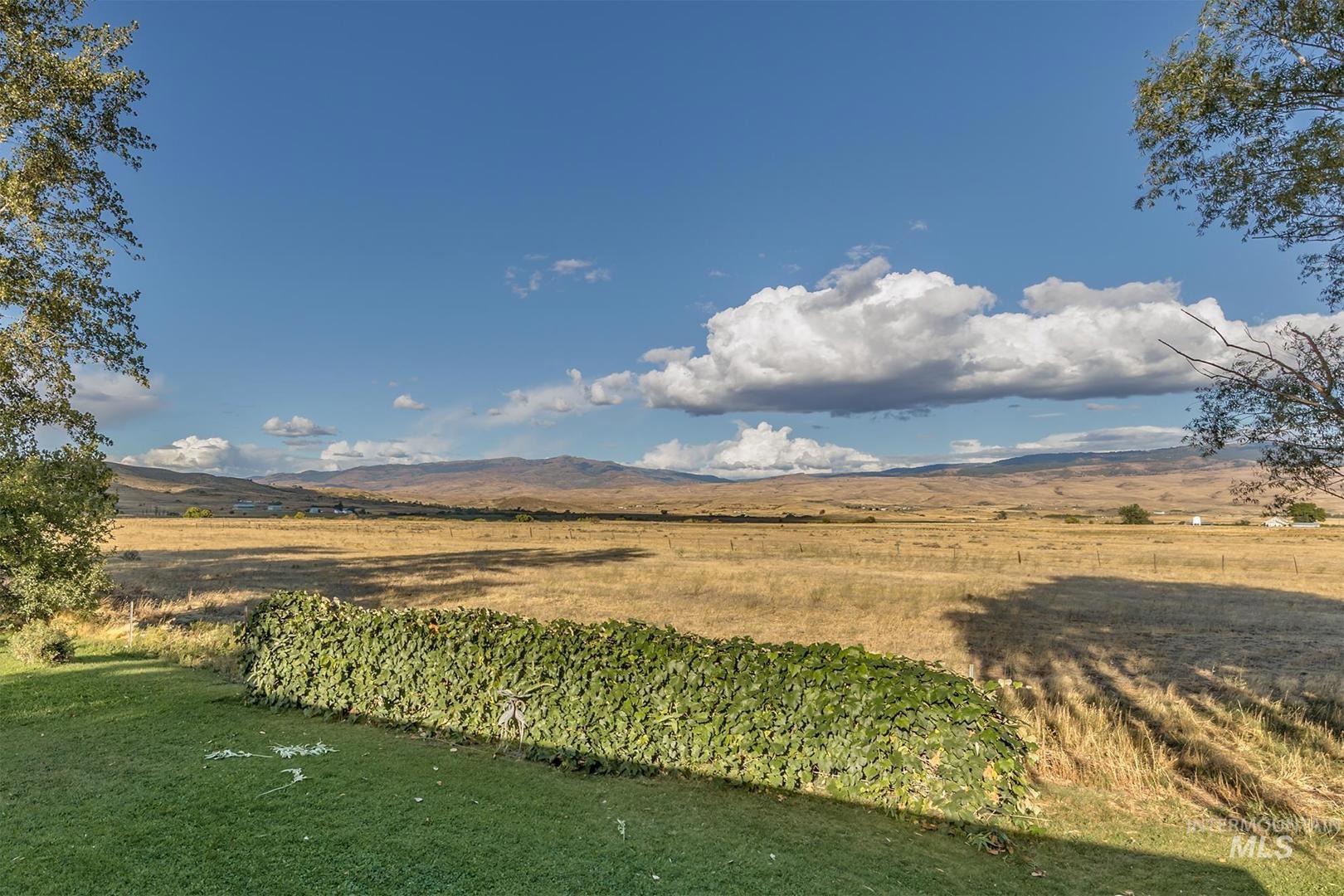 Welcome to the tranquility of country life, set amongst fields, beautiful panoramic views, & wildlife on this 20-acre mini ranch. The property includes a multi-gen open floor plan home, 3 bay garage w/extra storage area, & separate workshop. The covered front deck leads into the main level of the house, where you`ll find an open & airy great room, kitchen, dining, & primary bedroom w/ensuite bathroom. Features include a cathedral tongue & groove wood ceiling, dual pane windows providing great natural light, LVP flooring, pellet stove & electric baseboard heaters for cozy winters, stainless steel down draft stove/oven & refrigerator, & wonderful views from every room. Walk out the back door to another spacious covered deck surrounded by a parklike yard w/numerous shade & fruit trees, & spectacular mountains in the backdrop. The lower level can be accessed from inside, or from a separate covered entrance. Kitchen, dining, 3 bedrooms (or office), family, bath & utility area.