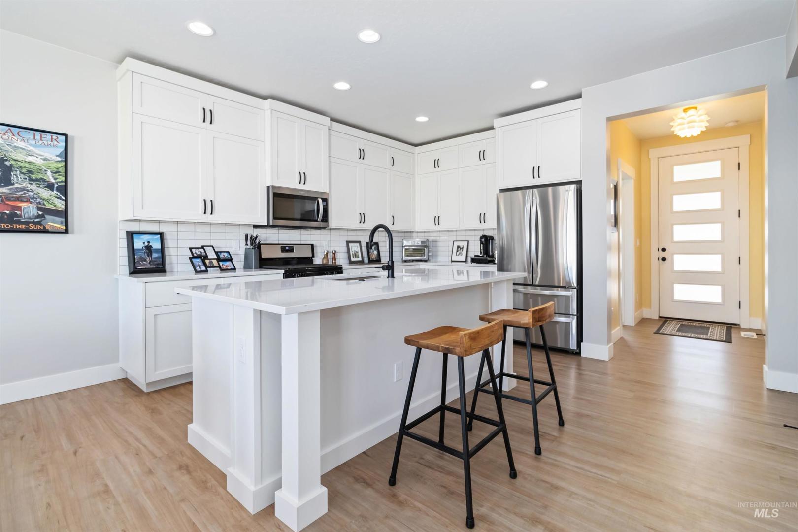 The Elliot offers single-level living at it`s finest. An efficient, open-concept layout includes a large four bedrooms, 2 baths, and convenient everyday entry. The inviting kitchen includes a large central island and offers easy access to a casual dining area and expansive great room highlighted by a cozy corner fireplace. A covered back patio encourages outdoor entertaining. Escape the day in the large primary suite and relax in the full tile shower. Gorgeous quartz countertops throughout.