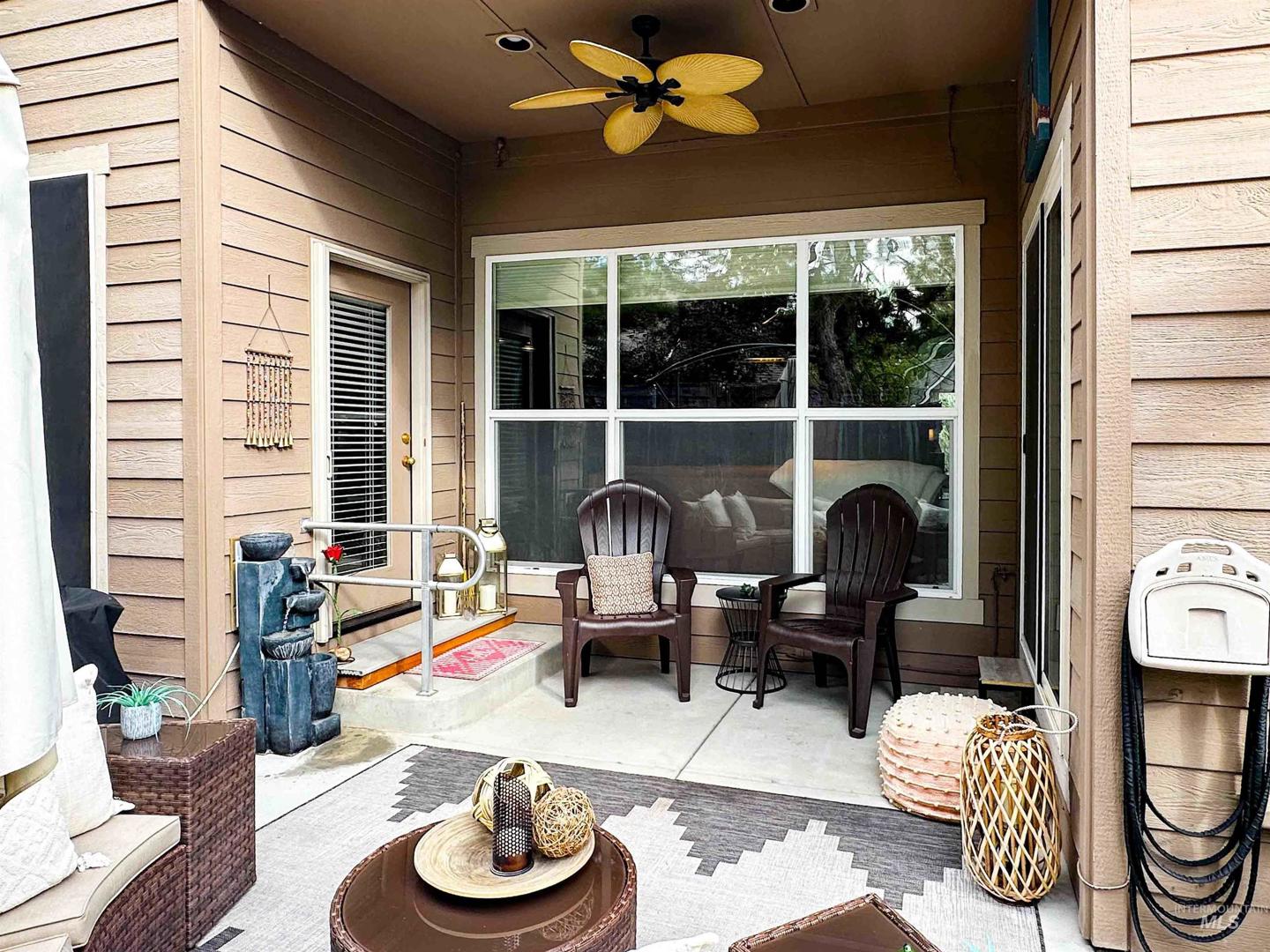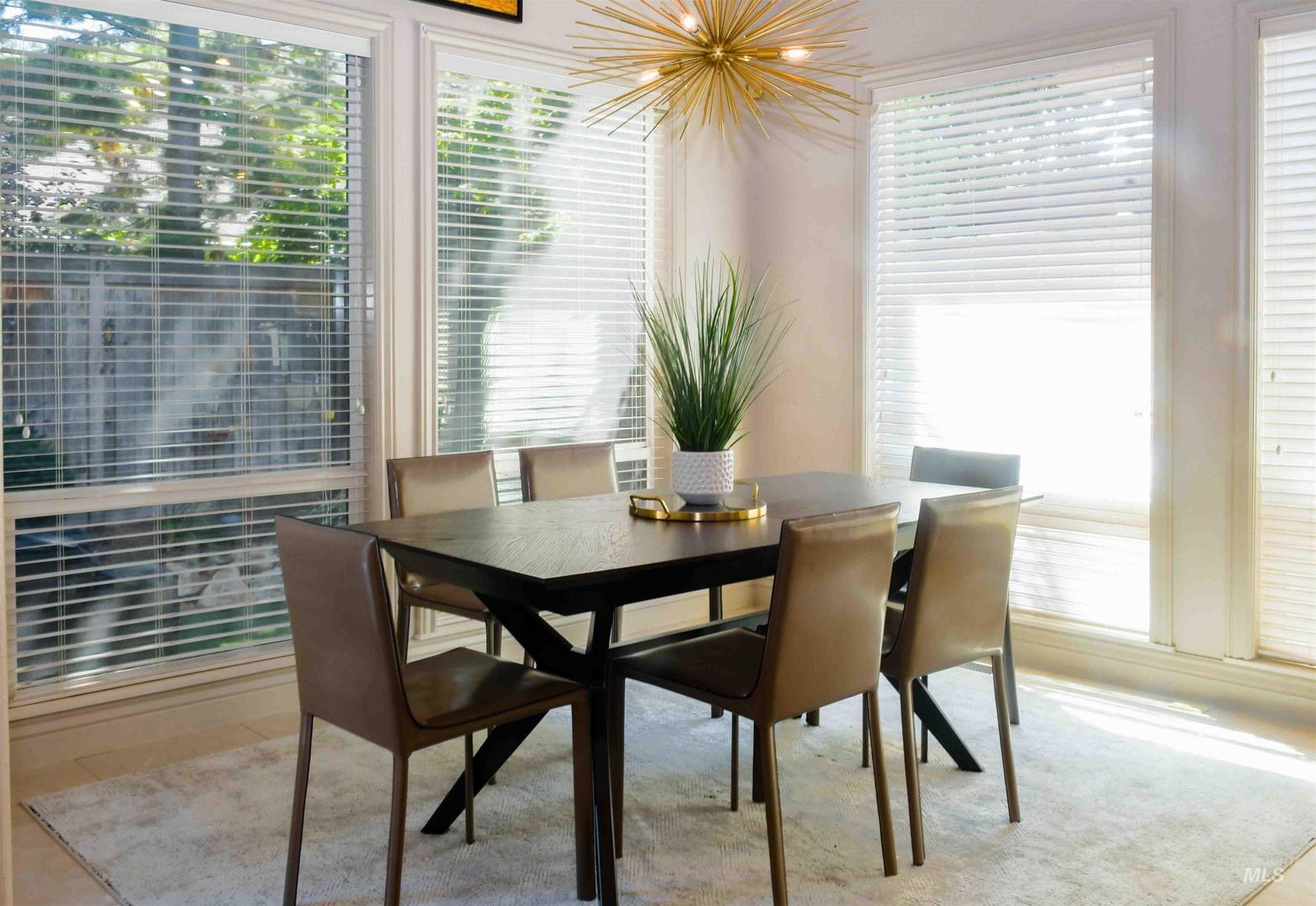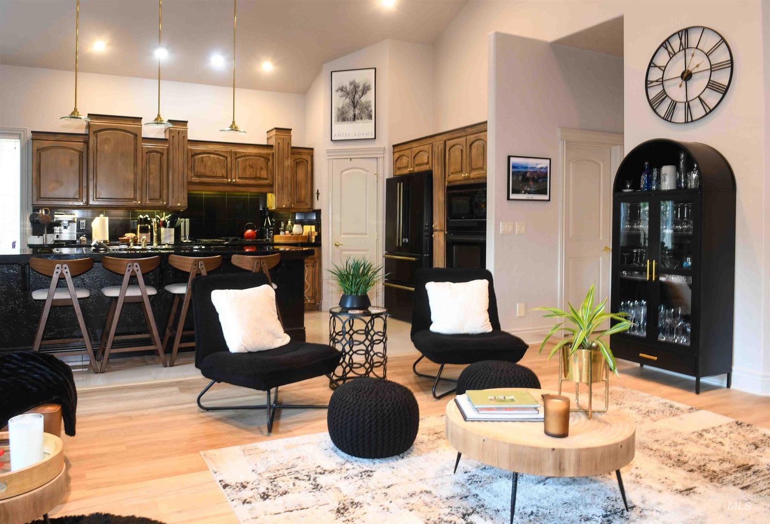 Stunning single-level home in a prime Boise location with river and Greenbelt access! Nestled in a quiet, well-kept community with private fishing ponds, this beautifully updated home offers the perfect mix of serenity and convenience. Upgrades include a new gas furnace (2019), water heater (2018), brand-new LVP flooring, lighting, slab granite island countertop and undermount sink (installing Sept 2025), plus a new refrigerator and new wine fridge. The soaring 20-ft ceilings create a bright, open floor plan, while a private, fenced back porch is perfect for relaxing or entertaining. Additional features include central vacuum, water softener, and a 4-year Choice Home Warranty. Enjoy peaceful surroundings with shopping, dining, library, and entertainment just minutes away. Move-in ready and low-maintenance, this gem combines comfort, style, and location! Buyer to verify all information.