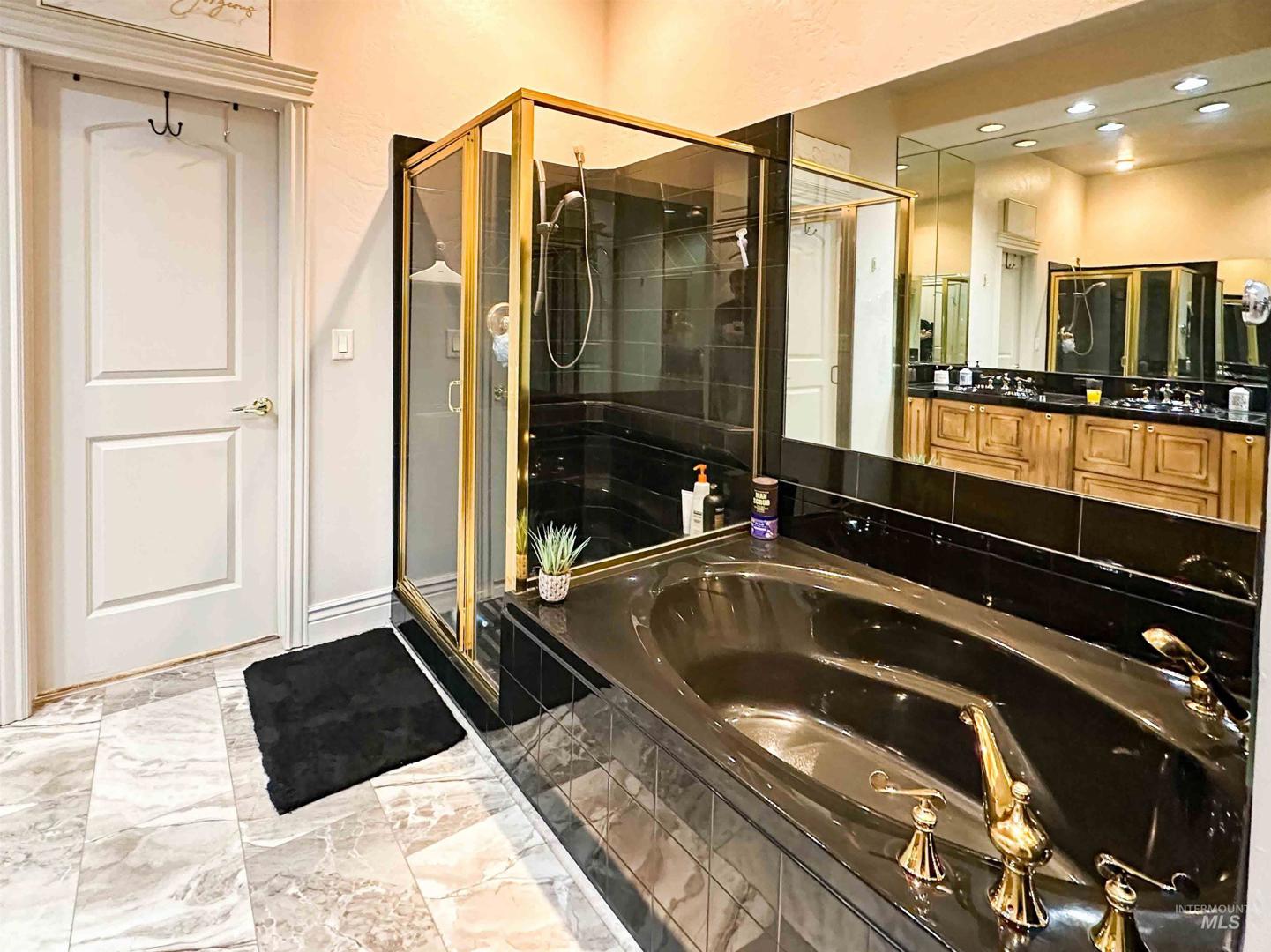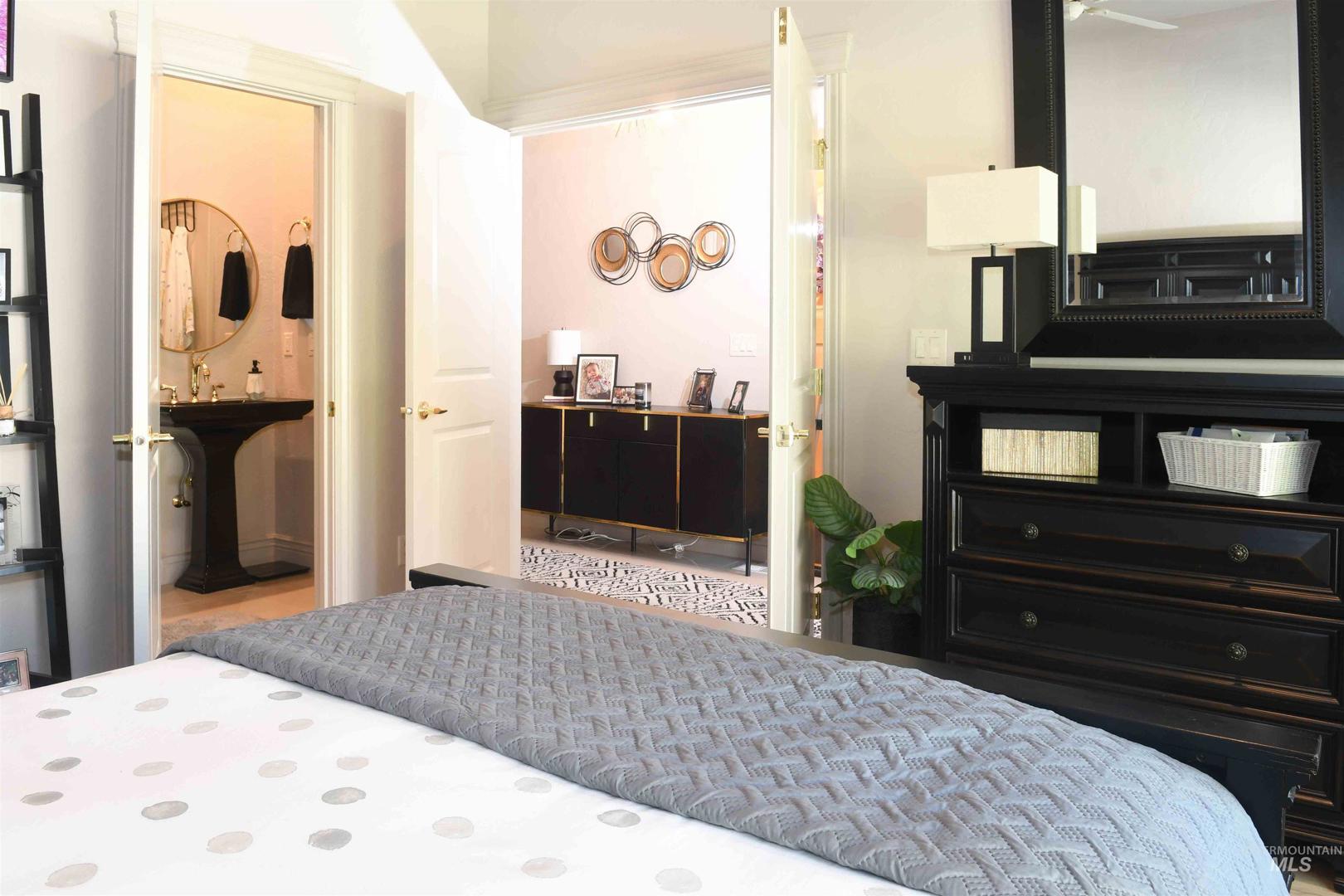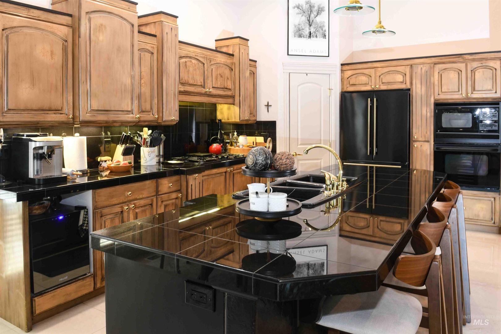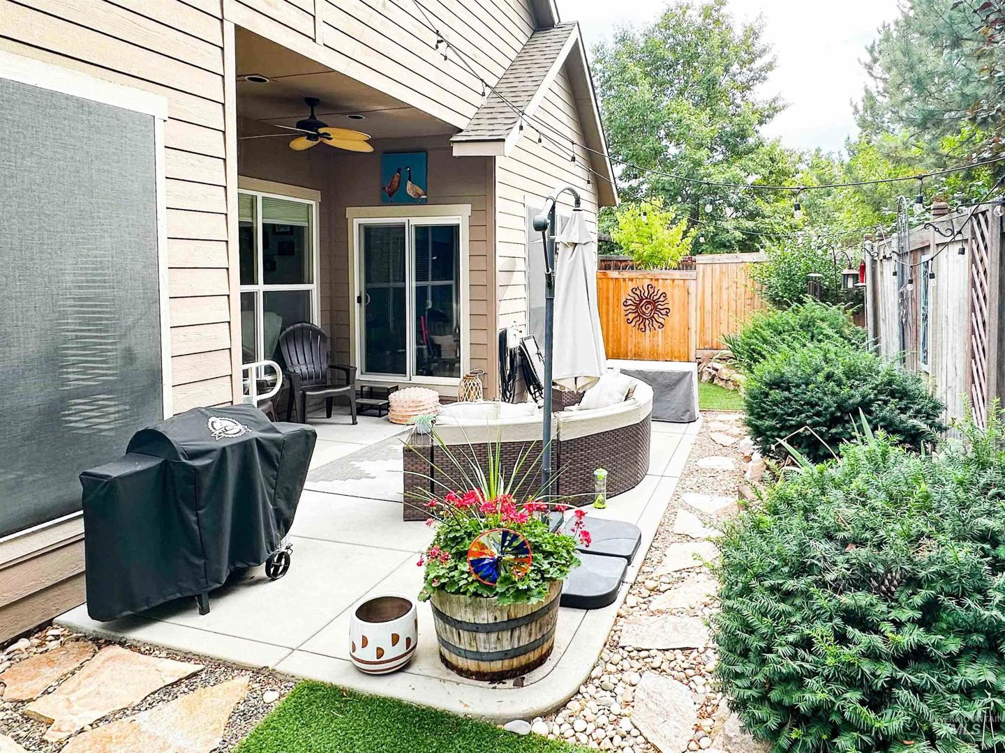Stunning single-level home in a prime Boise location with river and Greenbelt access! Nestled in a quiet, well-kept community with private fishing ponds, this beautifully updated home offers the perfect mix of serenity and convenience. Upgrades include a new gas furnace (2019), water heater (2018), brand-new LVP flooring, lighting, slab granite island countertop and undermount sink (installing Sept 2025), plus a new refrigerator and new wine fridge. The soaring 20-ft ceilings create a bright, open floor plan, while a private, fenced back porch is perfect for relaxing or entertaining. Additional features include central vacuum, water softener, and a 4-year Choice Home Warranty. Enjoy peaceful surroundings with shopping, dining, library, and entertainment just minutes away. Move-in ready and low-maintenance, this gem combines comfort, style, and location! Buyer to verify all information.