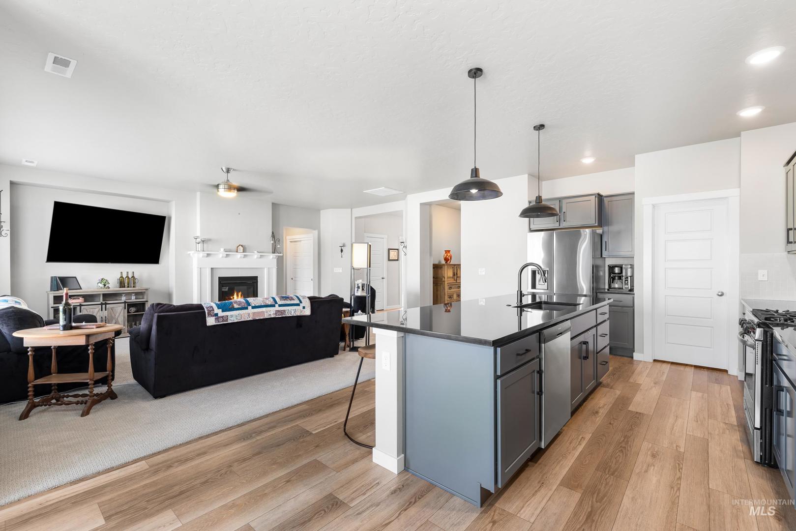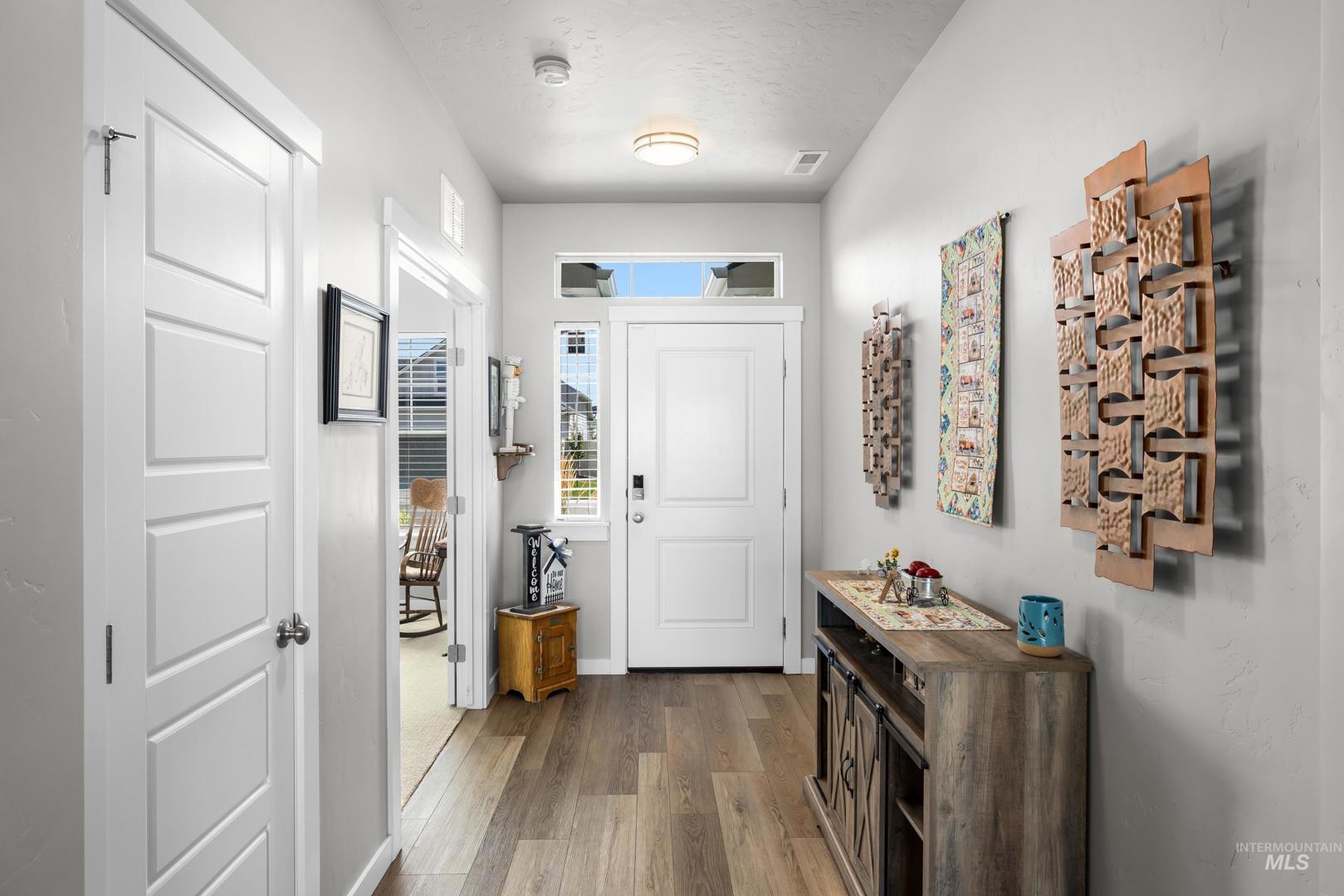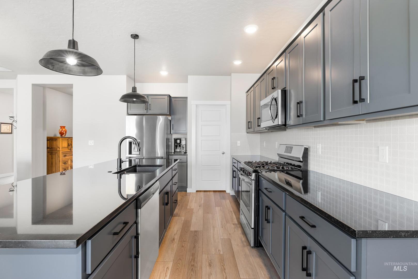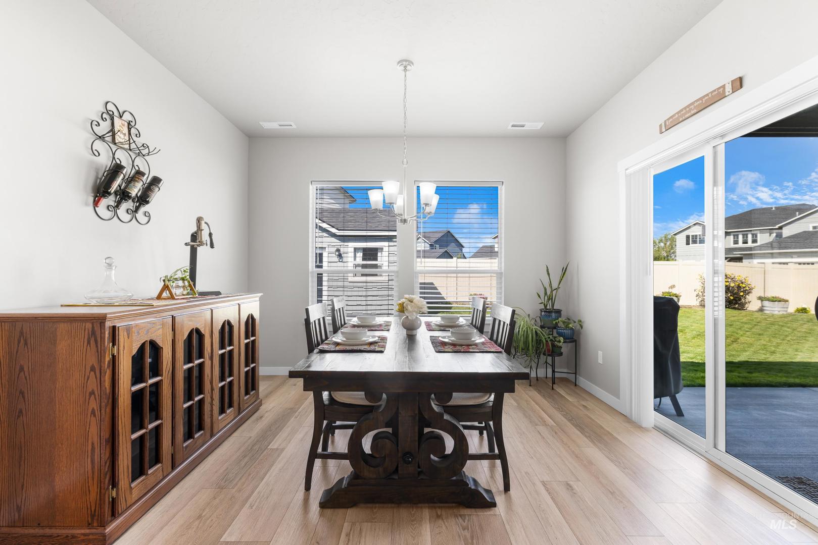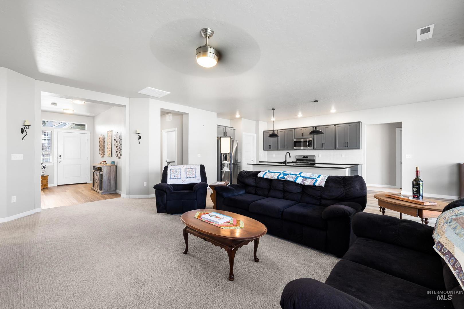 Built in 2022 and still presenting like new, this single-level home offers a thoughtfully designed split floorplan that balances privacy and flow. The kitchen anchors the living space with sleek quartz countertops, ample storage, and an open layout that connects seamlessly to dining and gathering areas. A spacious three-car garage provides room for vehicles and hobbies, while a newly built 10x20 shed with full power, heating, and AC adds even more versatility—ideal as a workshop, office, or creative retreat. Positioned on a desirable corner lot, the property enjoys extra light and a sense of openness, complemented by a covered patio perfect for relaxing or entertaining year-round. Located just minutes from freeway access and downtown Meridian, you’ll find everyday convenience paired with modern comfort. Whether hosting friends, working from home, or enjoying a quiet evening, this residence offers a lifestyle that feels both elevated and easy.