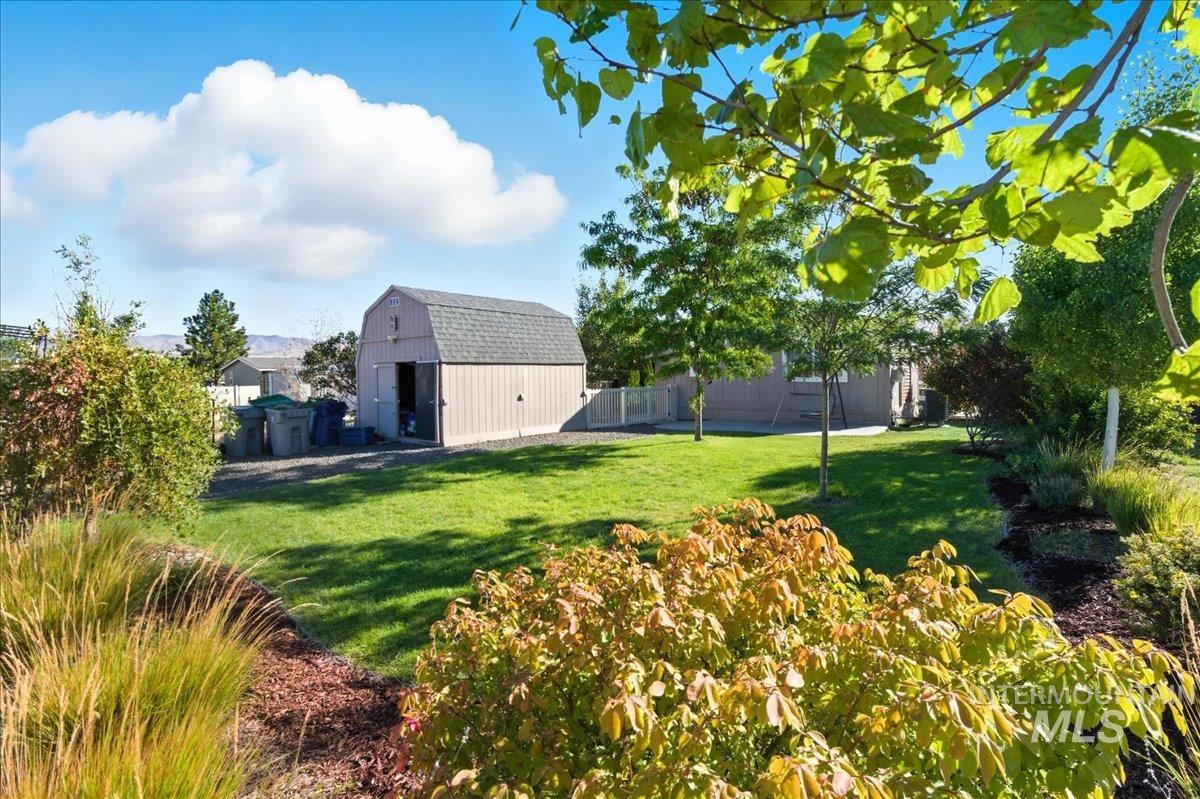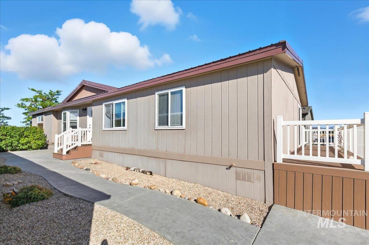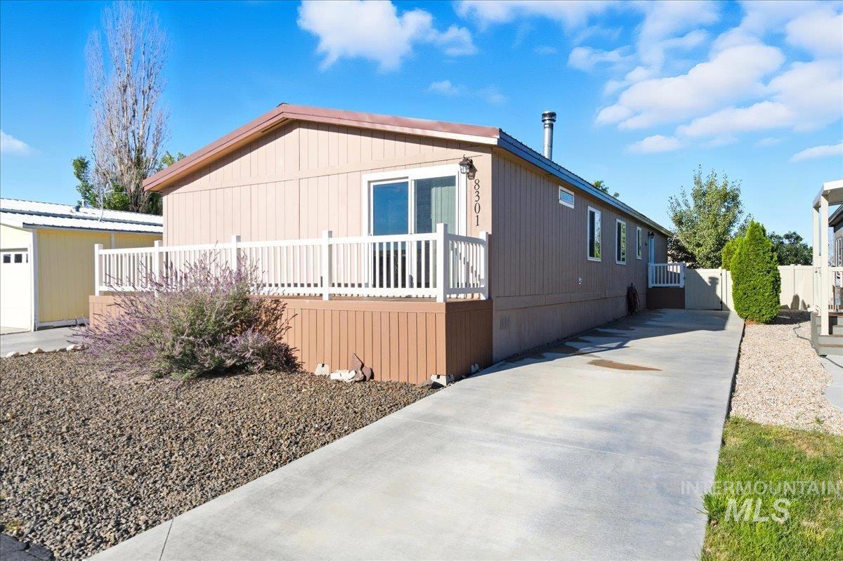 Generously sized 4-bedroom, 2-bath well-kept manufactured home with vaulted ceilings, wood stove, tile floors, and an open-concept layout built for comfortable living and entertaining. Sun-soaked living spaces highlight the home, while dual driveways and a large storage shed offer plenty of extra space. The fully fenced yard features a dog run, stamped concrete, and mature landscaping, all maintained pesticide-free. With no backyard neighbors and wide-open views, you’ll love the peace and privacy. Start your day with sunrise coffee on the front porch and wind down with fiery desert sunsets. Prime location near Micron, Lucky Peak, and I-84 — perfect for work or weekend escapes.