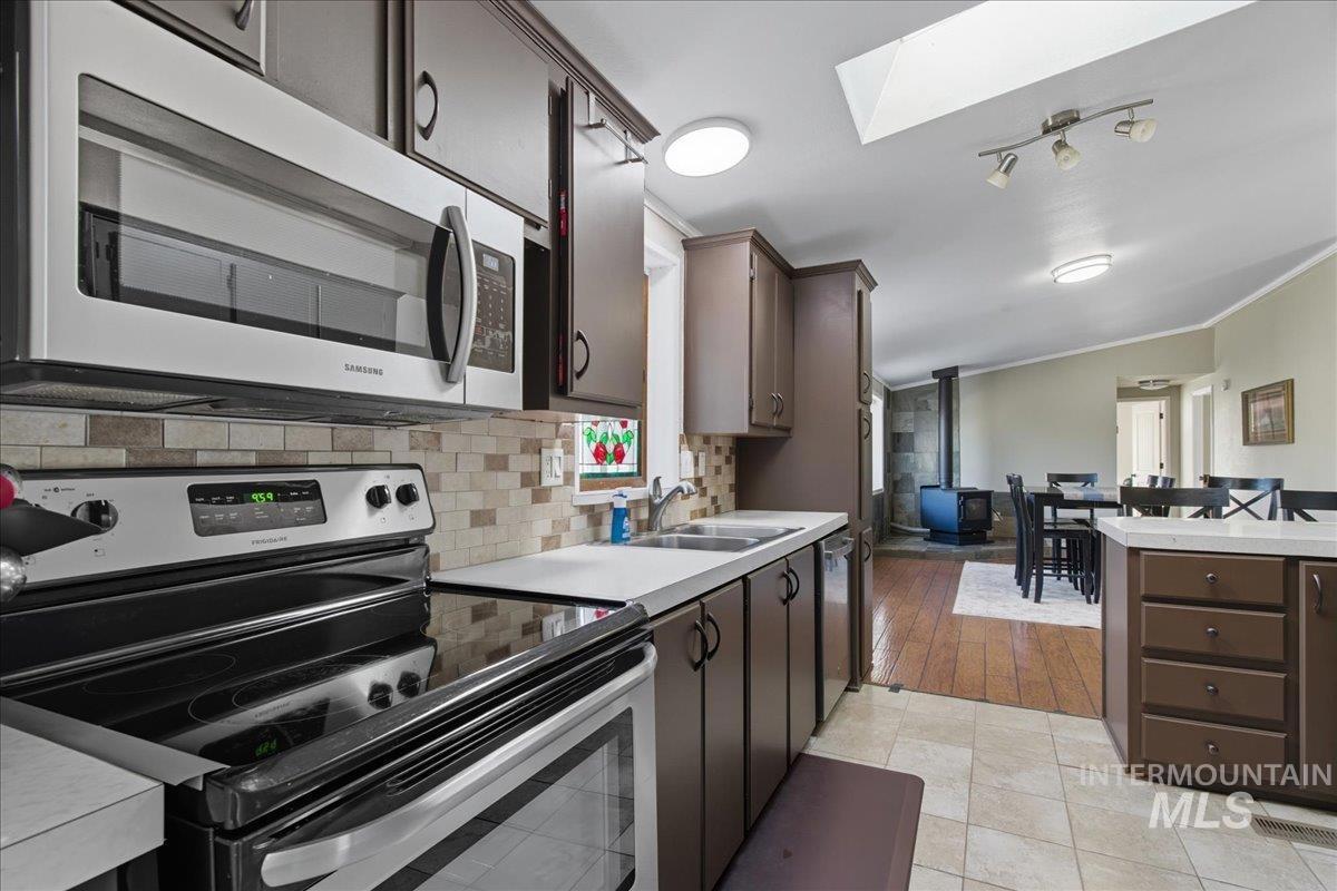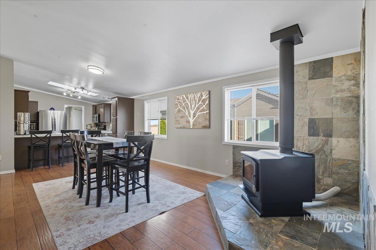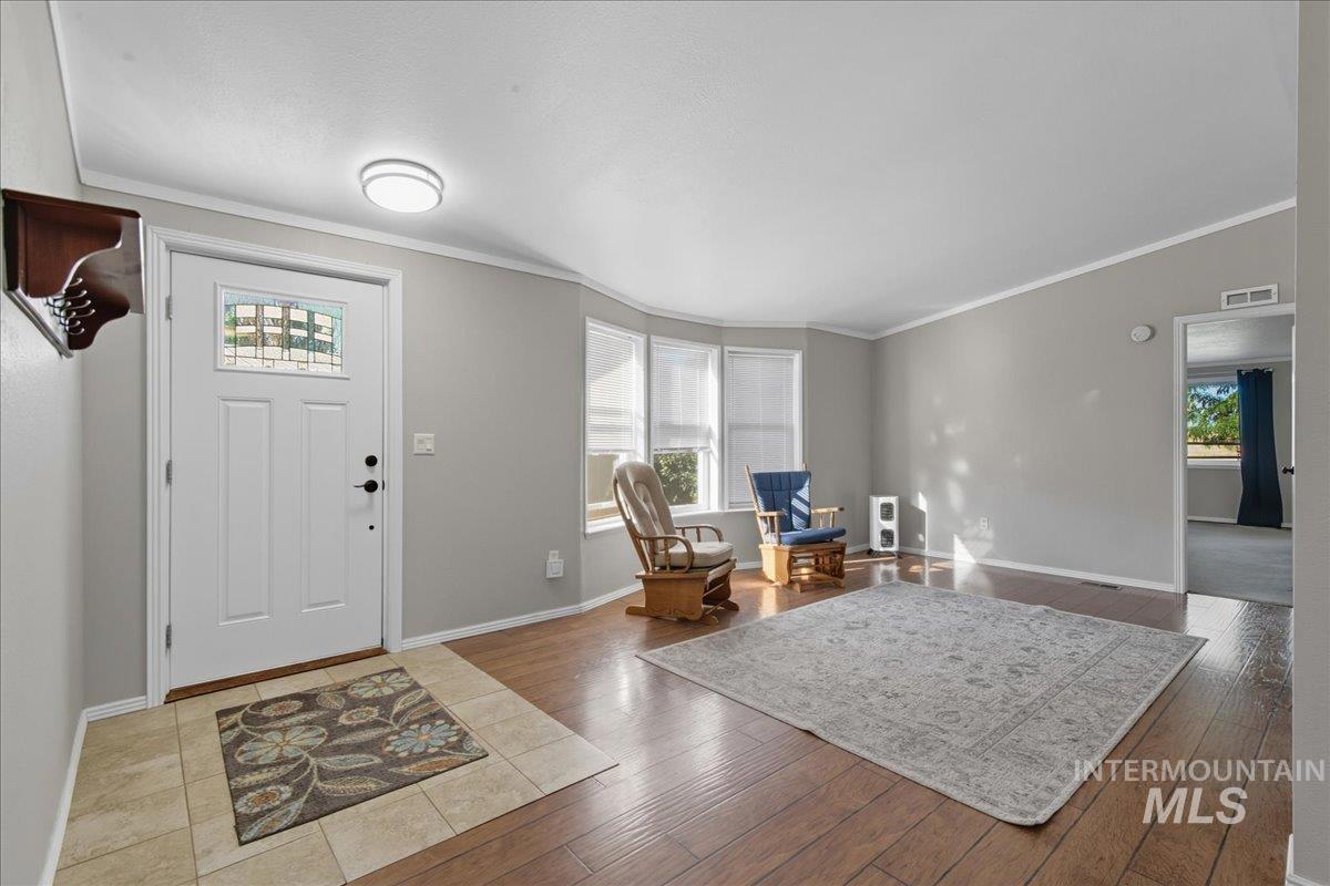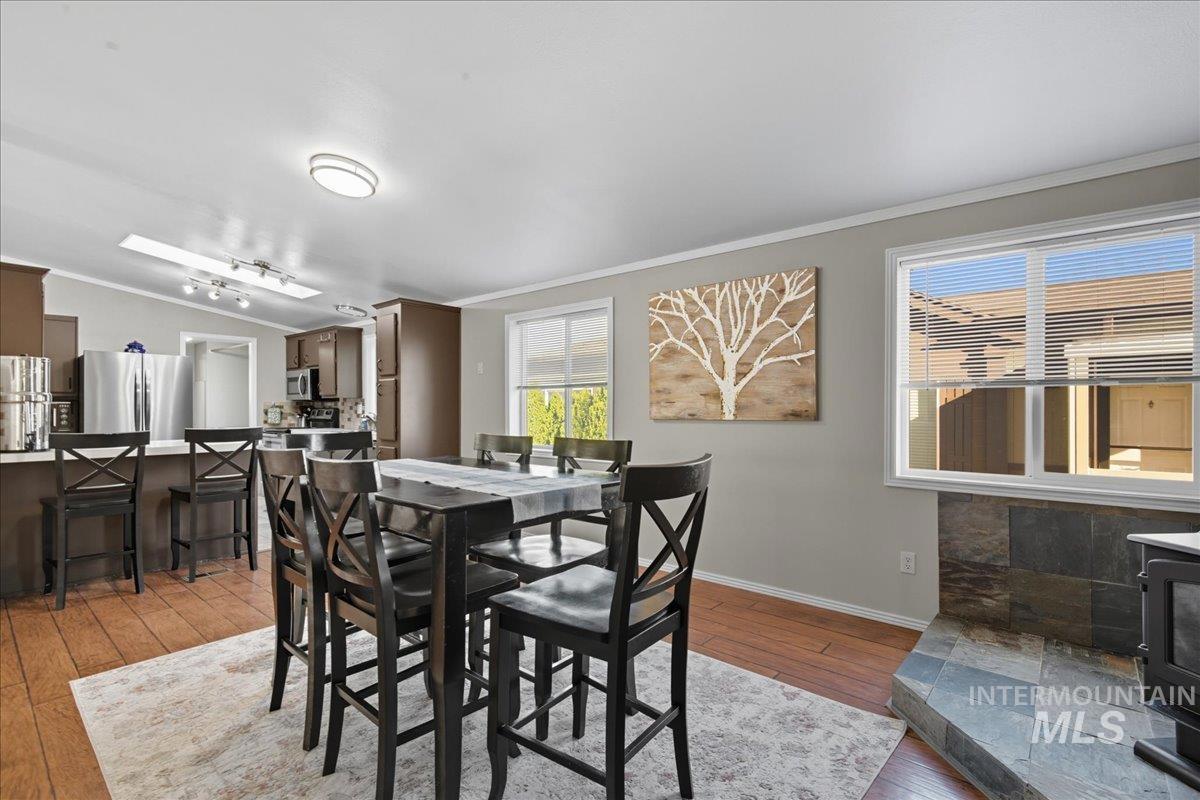 Generously sized 4-bedroom, 2-bath well-kept manufactured home with vaulted ceilings, wood stove, tile floors, and an open-concept layout built for comfortable living and entertaining. Sun-soaked living spaces highlight the home, while dual driveways and a large storage shed offer plenty of extra space. The fully fenced yard features a dog run, stamped concrete, and mature landscaping, all maintained pesticide-free. With no backyard neighbors and wide-open views, you’ll love the peace and privacy. Start your day with sunrise coffee on the front porch and wind down with fiery desert sunsets. Prime location near Micron, Lucky Peak, and I-84 — perfect for work or weekend escapes.