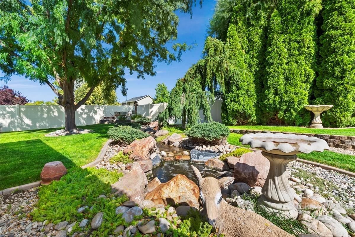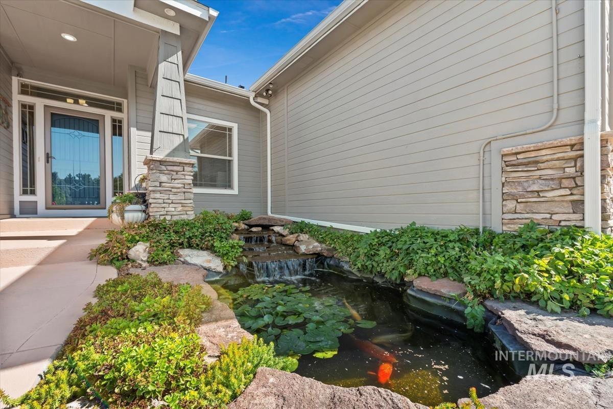 Welcome to this stunning home in coveted Bridgewater Estates! Enjoy HUGE RV parking big enough for multiple trailers, two tranquil water features including a koi pond & a cascading backyard stream. The beautifully landscaped backyard features a spacious patio with gas fire pit, covered grill area, & a screened-in patio that opens to the living room—perfect for indoor/outdoor living. The 3-car garage boasts 8` doors & high ceilings. Inside, the home is warm & inviting with a central living room, w/views of the kitchen, dining areas & back yard, & a formal dining (or office). The vaulted master suite offers a spa-like bath, soaker tub, huge walk-in closet with private hot tub access! Upstairs includes an office, half bath, & bonus/4th bedroom. High-end finishes throughout: real hardwood floors, granite, & premium carpet. New furnace (25), newer water heater (20). This exceptional home is a must-see! Note: the 4th bedroom is also being advertised as a bonus room, it could easily be used as either. Fiber internet