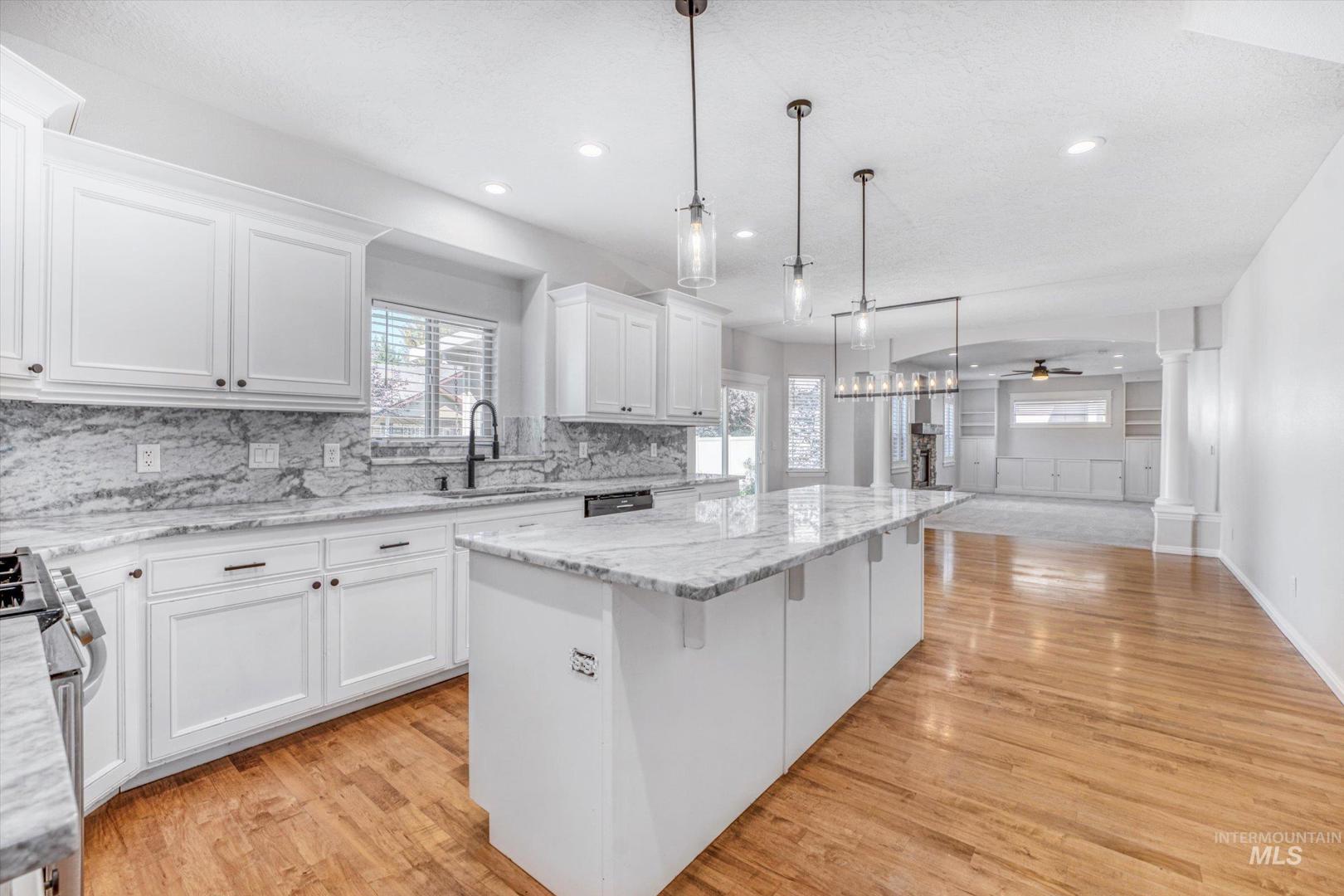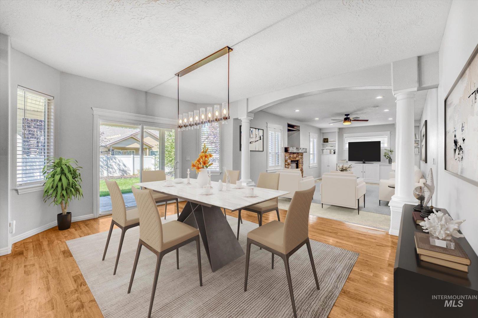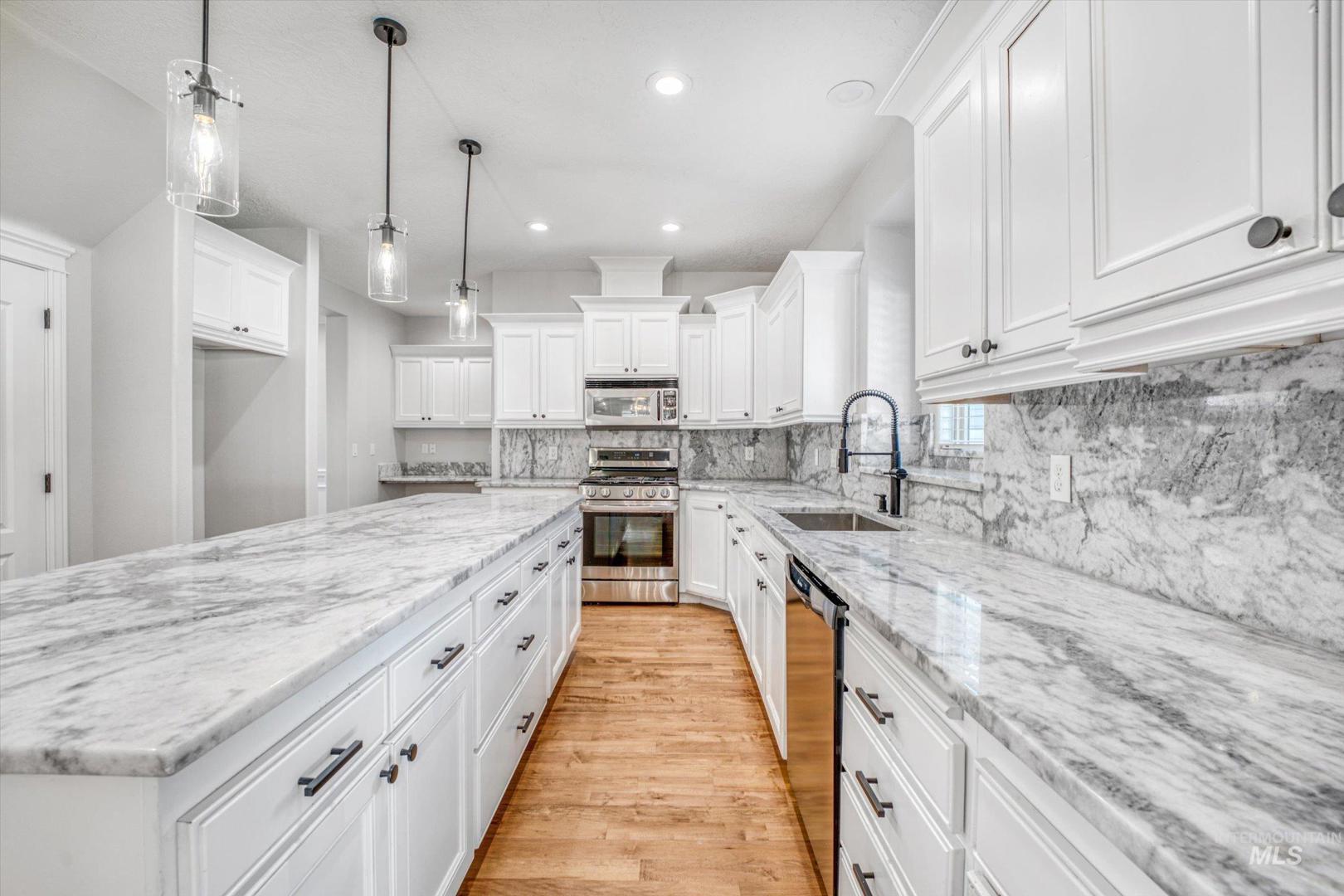 Beautiful, well appointed home in the highly sought after Pinewood Lakes Subdivision in Star Idaho. Large open concept kitchen, dining and family room are perfect for entertaining. Dolomite kitchen countertops, plantation shutters throughout, large family room with gas fireplace, separate formal dining room, office space, and a three car garage. Spacious primary suite featuring soaker tub, dual vanities, separate shower, and walk in closet. The interior was just painted and all carpet was replaced. Covered patio area. Established landscaping. Large pantry and mudroom/laundry room offer ample storage. Community Pool and open space.