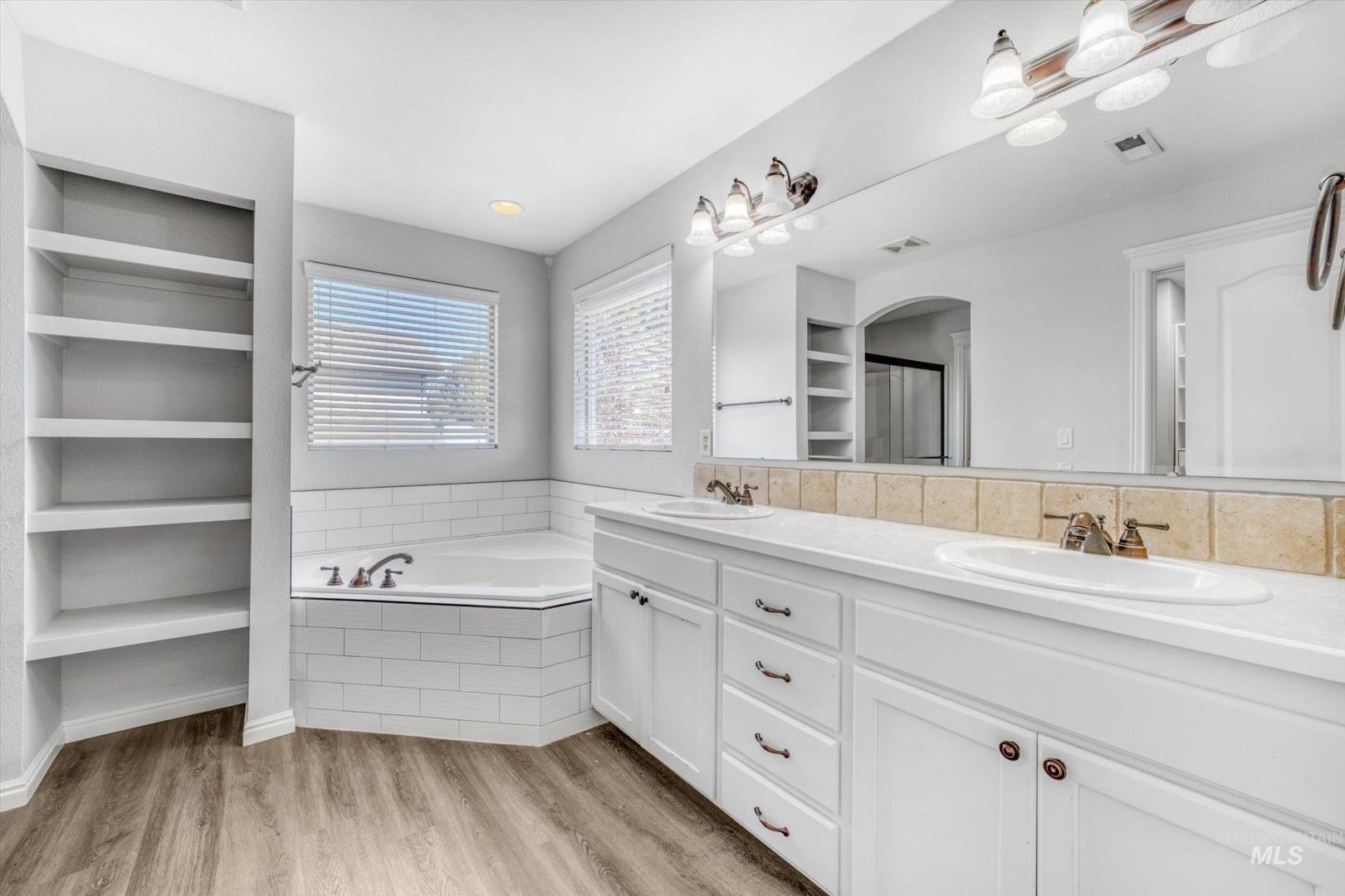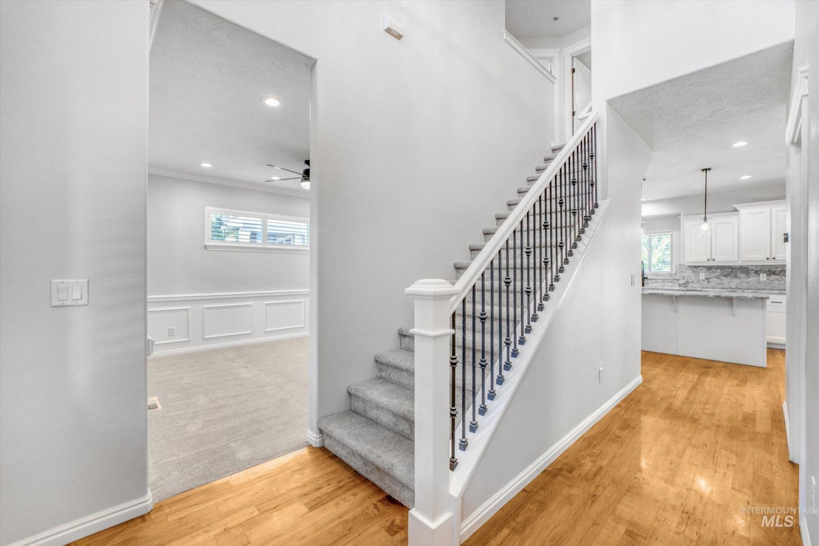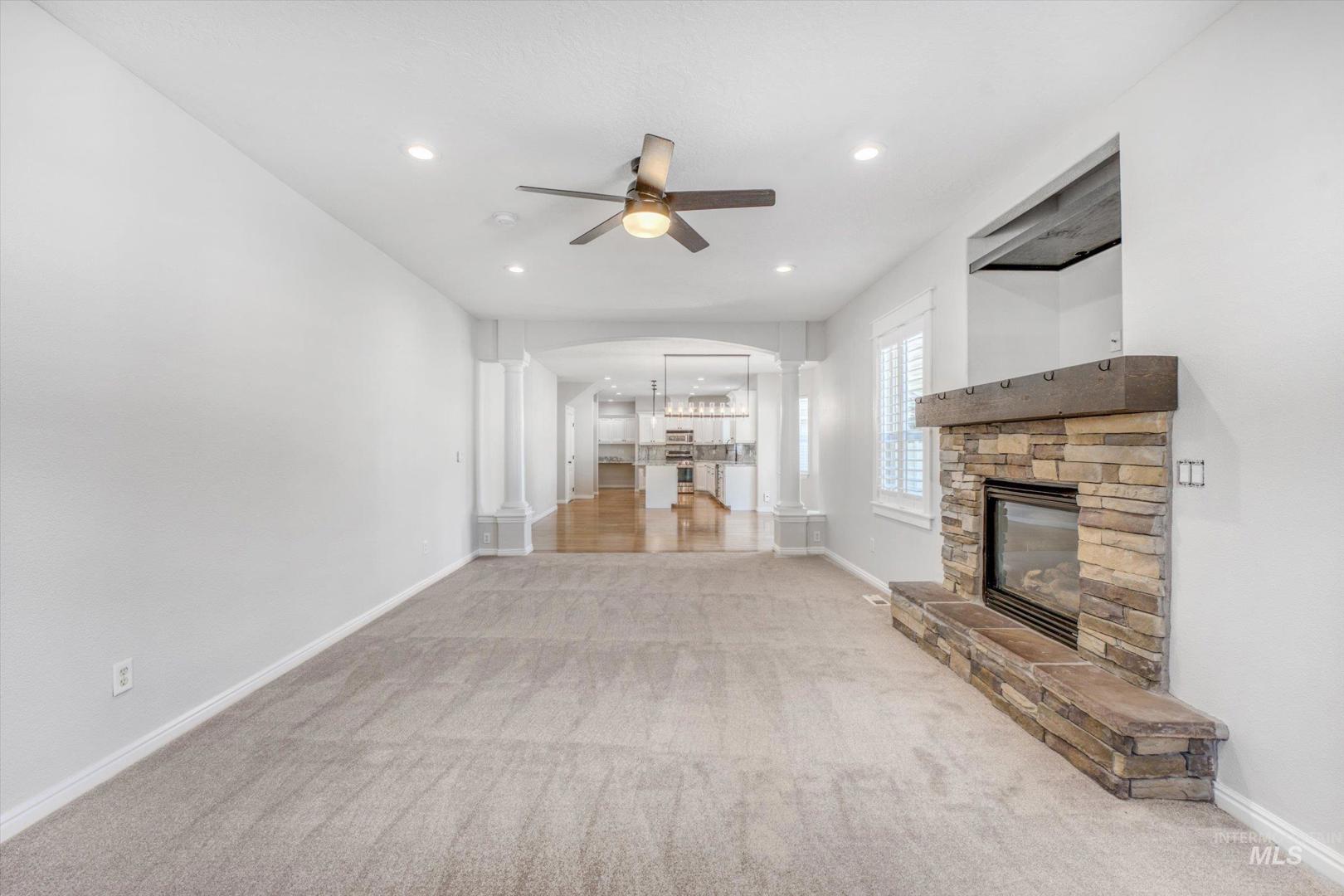 Beautiful, well appointed home in the highly sought after Pinewood Lakes Subdivision in Star Idaho. Large open concept kitchen, dining and family room are perfect for entertaining. Dolomite kitchen countertops, plantation shutters throughout, large family room with gas fireplace, separate formal dining room, office space, and a three car garage. Spacious primary suite featuring soaker tub, dual vanities, separate shower, and walk in closet. The interior was just painted and all carpet was replaced. Covered patio area. Established landscaping. Large pantry and mudroom/laundry room offer ample storage. Community Pool and open space.