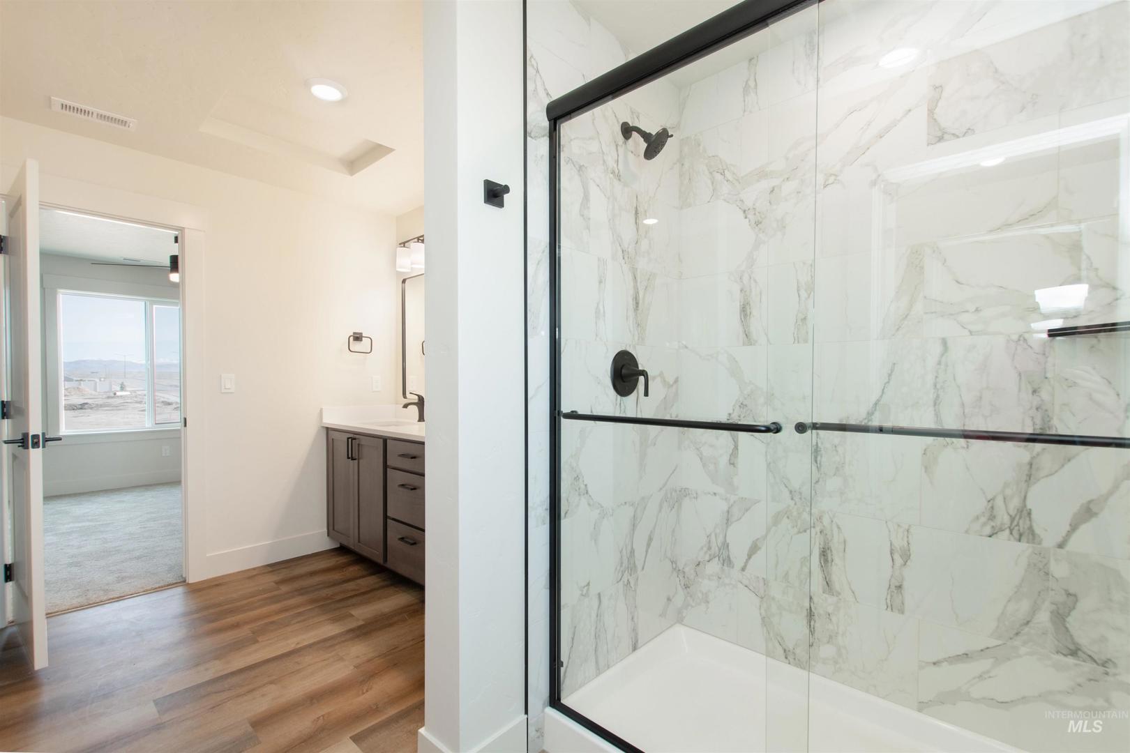 Call for Seller incentive rate buy-down! The Mayfield by Bear Homes is a 2-story alley-load home featuring expansive living and dining areas plus a main-level office or optional 4th bedroom. The spacious kitchen includes stainless steel appliances, a walk-in pantry, soft-close cabinetry, and dovetail drawers. The open-concept great room provides plenty of space for entertaining and easy flow for gatherings. You`ll love the beautifully finished suite bath with high-end touches. Interior finishes include quartz countertops, durable LVP flooring throughout main areas, 9` ceilings, and hand-textured walls. Enjoy your evenings on the fully covered patio. A 3 car garage offers extra space for storage or hobbies. Front and back landscaping included as well as full fencing. The community features scenic walking paths and open common areas for outdoor enjoyment. Located just minutes from Micron and all the recreational opportunities and amenities of East Boise like Lucky Peak, the Greenbelt, hiking trails and more. Annual conservation fee of $60. Photos Similar.