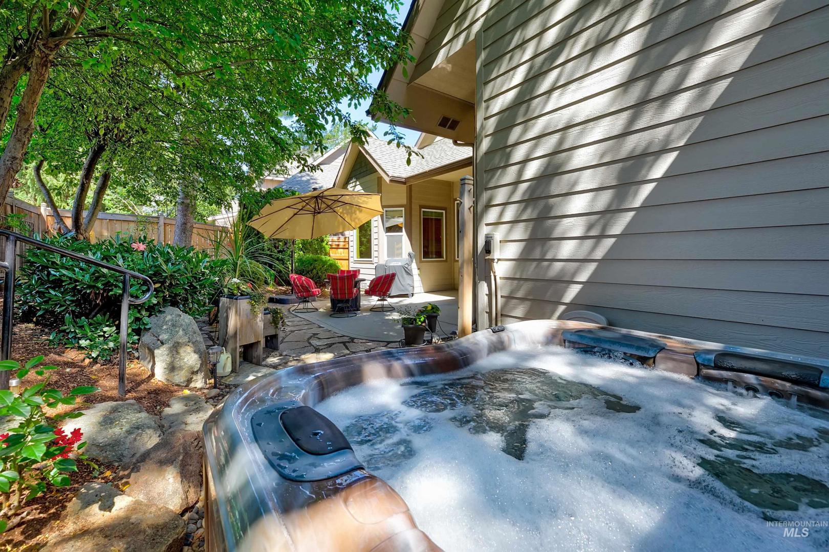Townhome w/Main level master bedroom suite and separate guest bedroom/bath upstairs. Updated home nestled in small, private, well maintained neighborhood in sought after location. Easy access to the greenbelt, river, shopping, library, restaurants, etc. Surrounded by mature landscaping home offers the perfect relaxed lifestyle. Plenty of space with 3 bedrooms & 3 baths. Spacious great room w/gas FP, built-in bookshelves/soaring ceilings. Updated kitchen-large island w/range & breakfast bar. New granite counters/backsplash. New SS refrigerator & DW, new sink,large walk-in pantry. Laundry rm has extra storage. New carpet thruout. All baths have new granite counters & new sinks. Master suite-walk-in closet, bath w/heated floors. Don`t miss hot tub tucked away in charming backyard. Private patio. All this to enjoy but w/ little maintenance. Two car garage w/storage racks and a bike hoist system.
