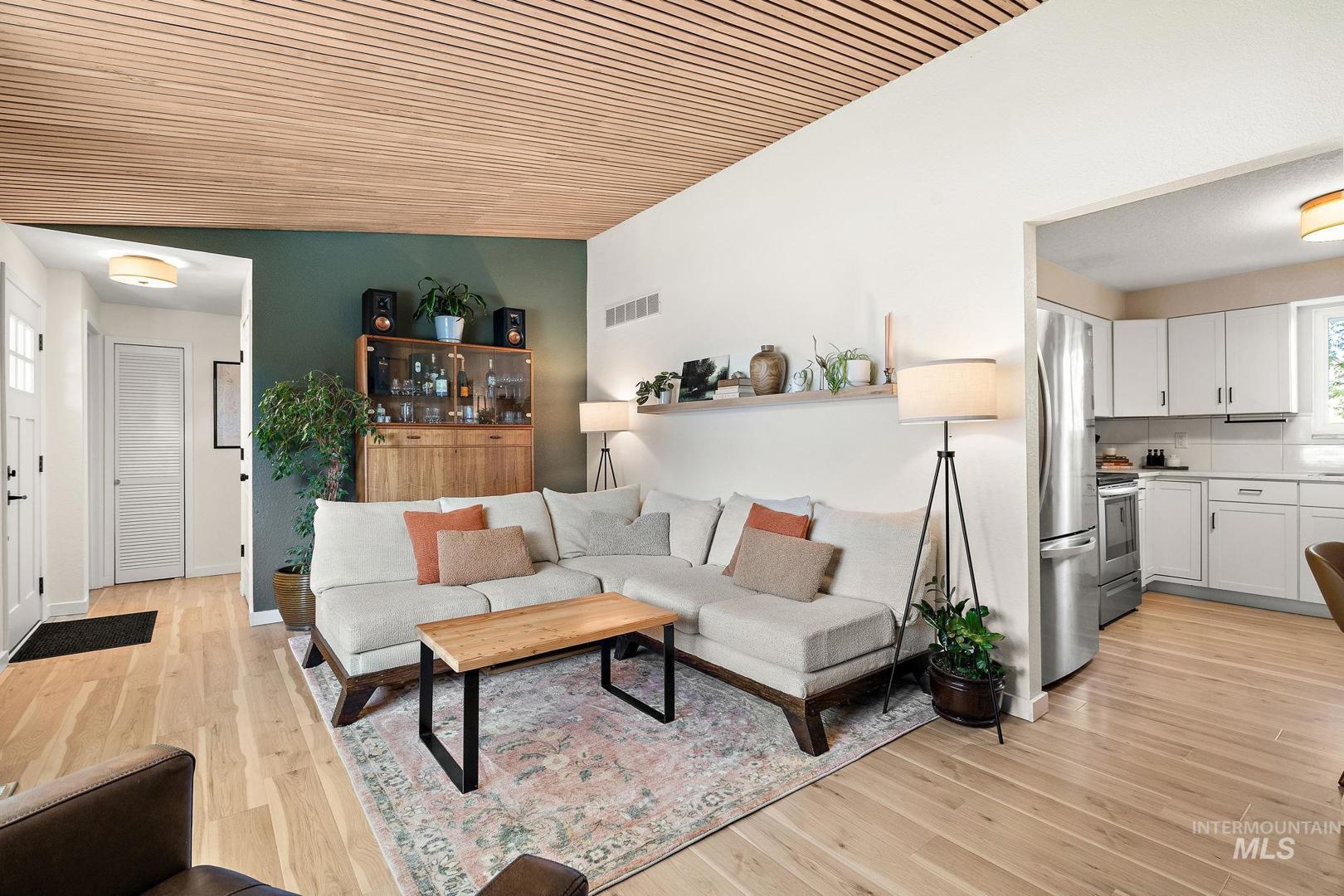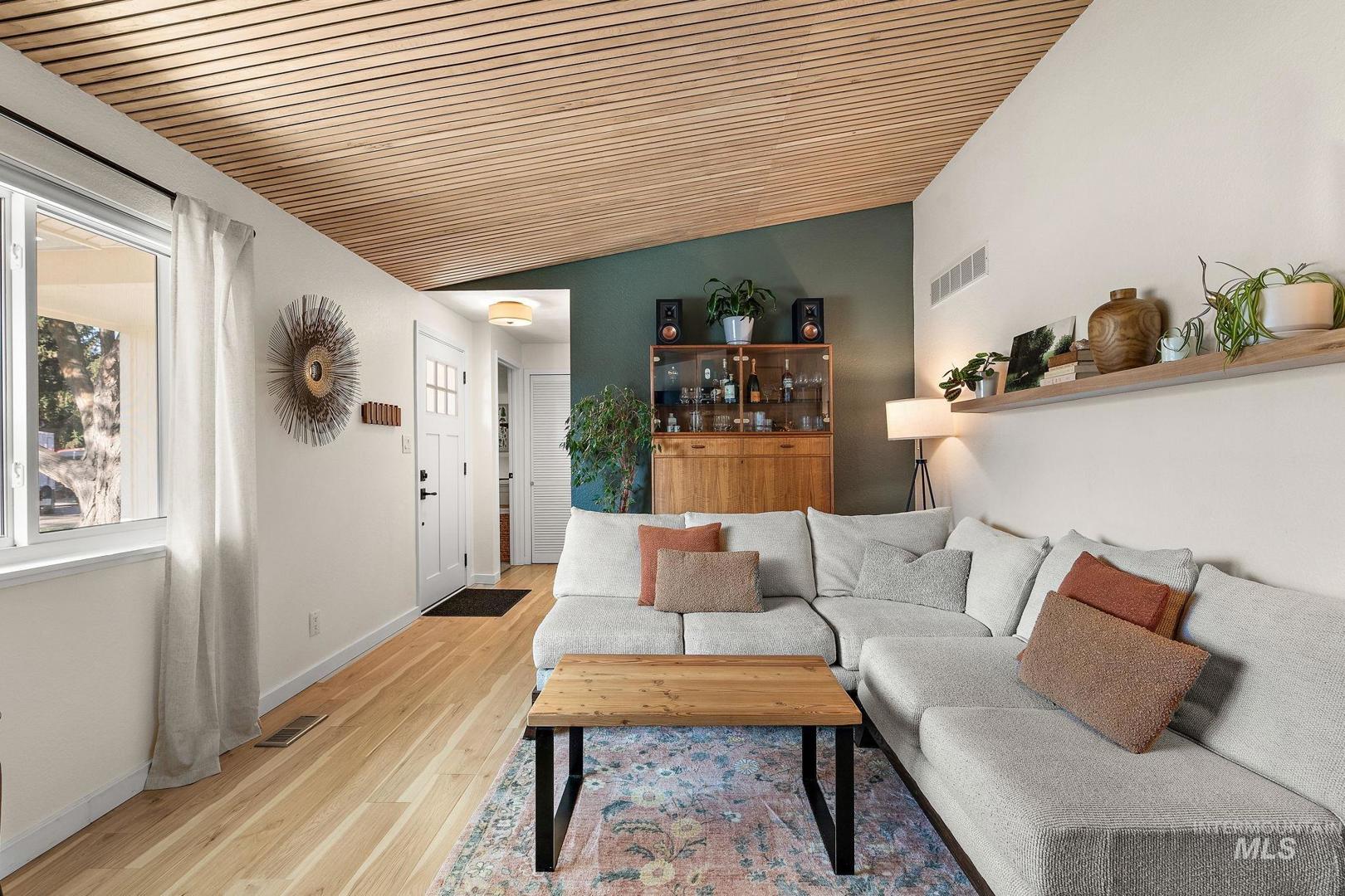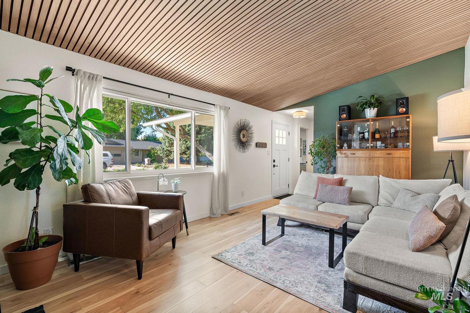 Welcome to this beautifully refreshed single-level home in the heart of Garden City! Inside, vaulted ceilings and a cozy fireplace make the living room bright and inviting, while the modern dine-in kitchen features updated cabinetry and stainless appliances. Both baths have been tastefully updated, and the spacious bedrooms offer comfort for everyone. The home also features an updated roof, windows, and siding, adding to its appeal. Set on a .22-acre lot with no backyard neighbors, this property is a true retreat in a quiet neighborhood. Expansive gardening space, mature landscaping, and shady trees create a private oasis, while RV parking and a fully fenced yard add convenience and flexibility. All this, just minutes from the Boise River, Greenbelt, local wineries, markets, and the best of Garden City and Boise dining, shopping, and galleries. A perfect blend of comfort, updates, and location—you won’t want to miss it!