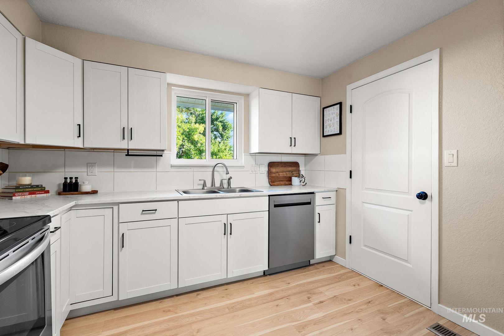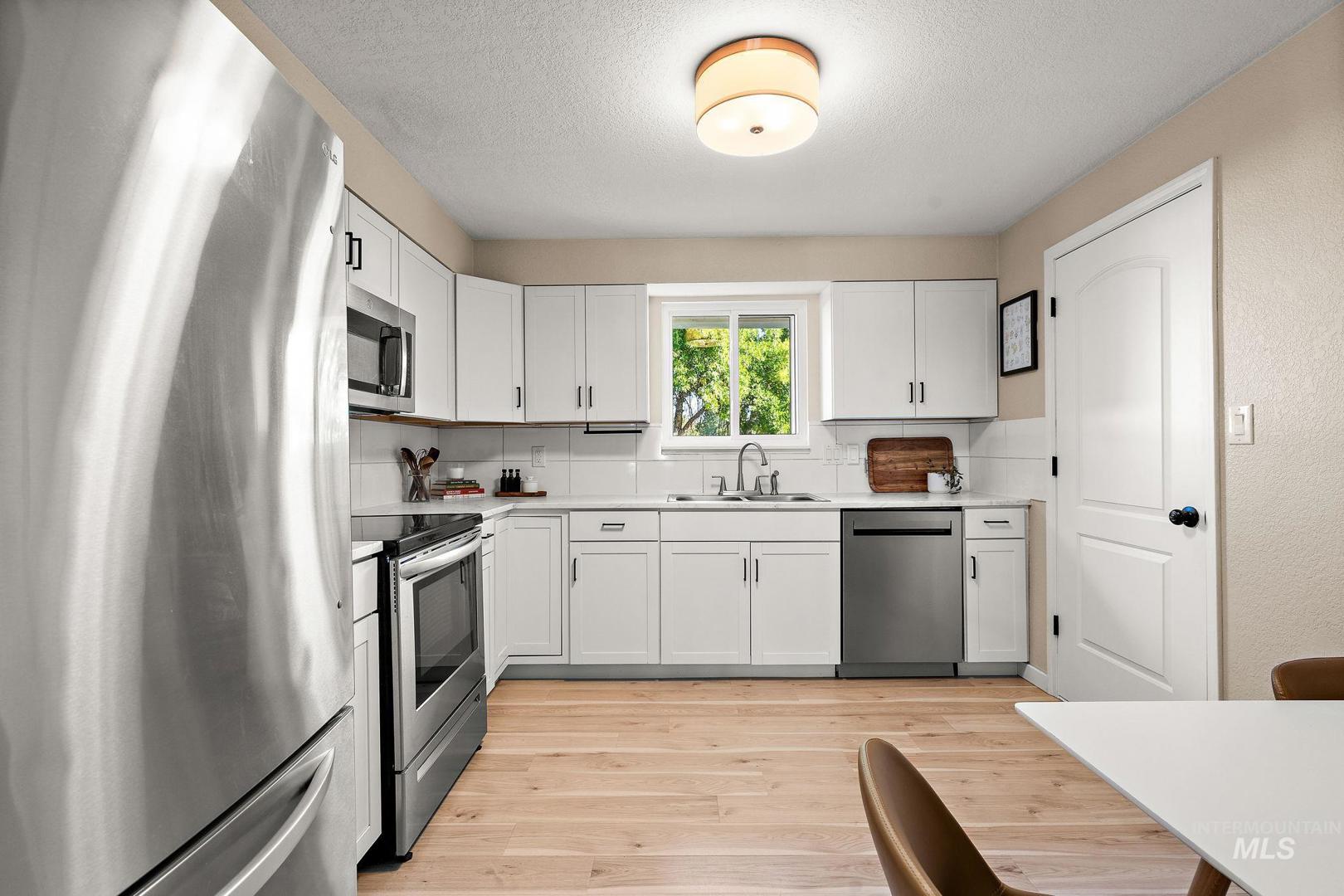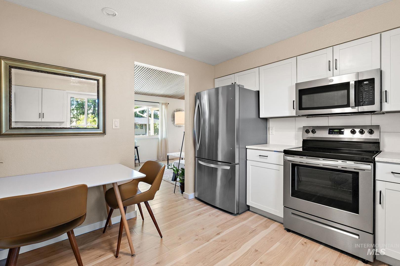 Welcome to this beautifully refreshed single-level home in the heart of Garden City! Inside, vaulted ceilings and a cozy fireplace make the living room bright and inviting, while the modern dine-in kitchen features updated cabinetry and stainless appliances. Both baths have been tastefully updated, and the spacious bedrooms offer comfort for everyone. The home also features an updated roof, windows, and siding, adding to its appeal. Set on a .22-acre lot with no backyard neighbors, this property is a true retreat in a quiet neighborhood. Expansive gardening space, mature landscaping, and shady trees create a private oasis, while RV parking and a fully fenced yard add convenience and flexibility. All this, just minutes from the Boise River, Greenbelt, local wineries, markets, and the best of Garden City and Boise dining, shopping, and galleries. A perfect blend of comfort, updates, and location—you won’t want to miss it!