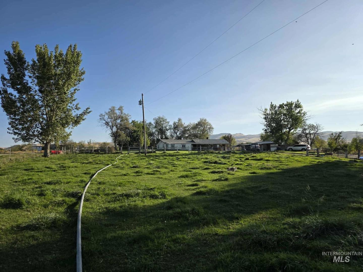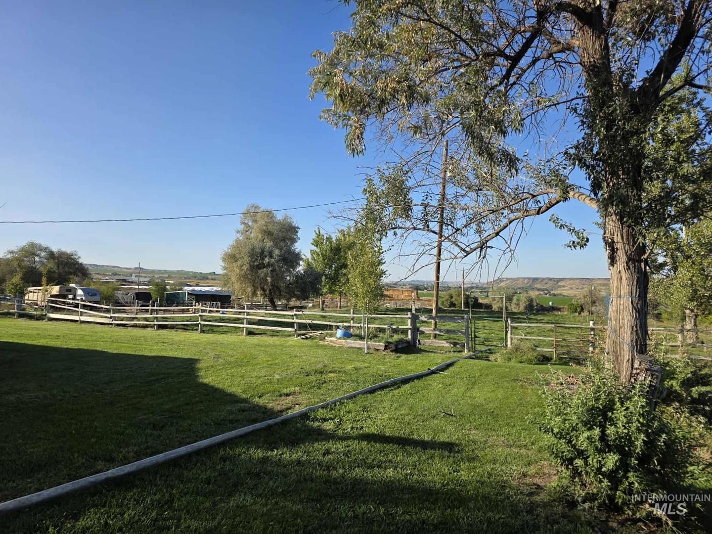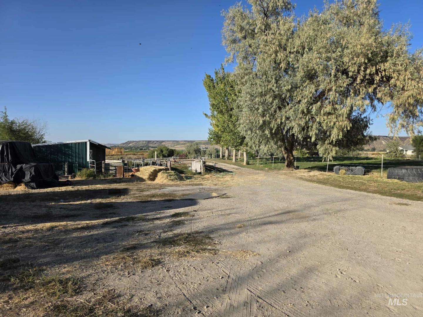 Charming 3 bed 2 bath home on 5+ Quiet Acres. Nice kitchen with a large walk in pantry. Cozy Wood stove and a Metal roof. One 2 stall barn with a tack room. One shop with single car garage. Irrigation on property includes 7 lines of 3 in pipe with a 5 Hp irrigation pump. Everything is Green! Large garden area and chicken coop. Bring all the animals you want, it`s all fenced. No HOAs or CCRS. Beautiful mature trees. Owyhee Mountains out your backdoor. Snake River rim view out your front door. Close to Givens Hot Springs. Improvements happening daily. All Appliances stay with the house.