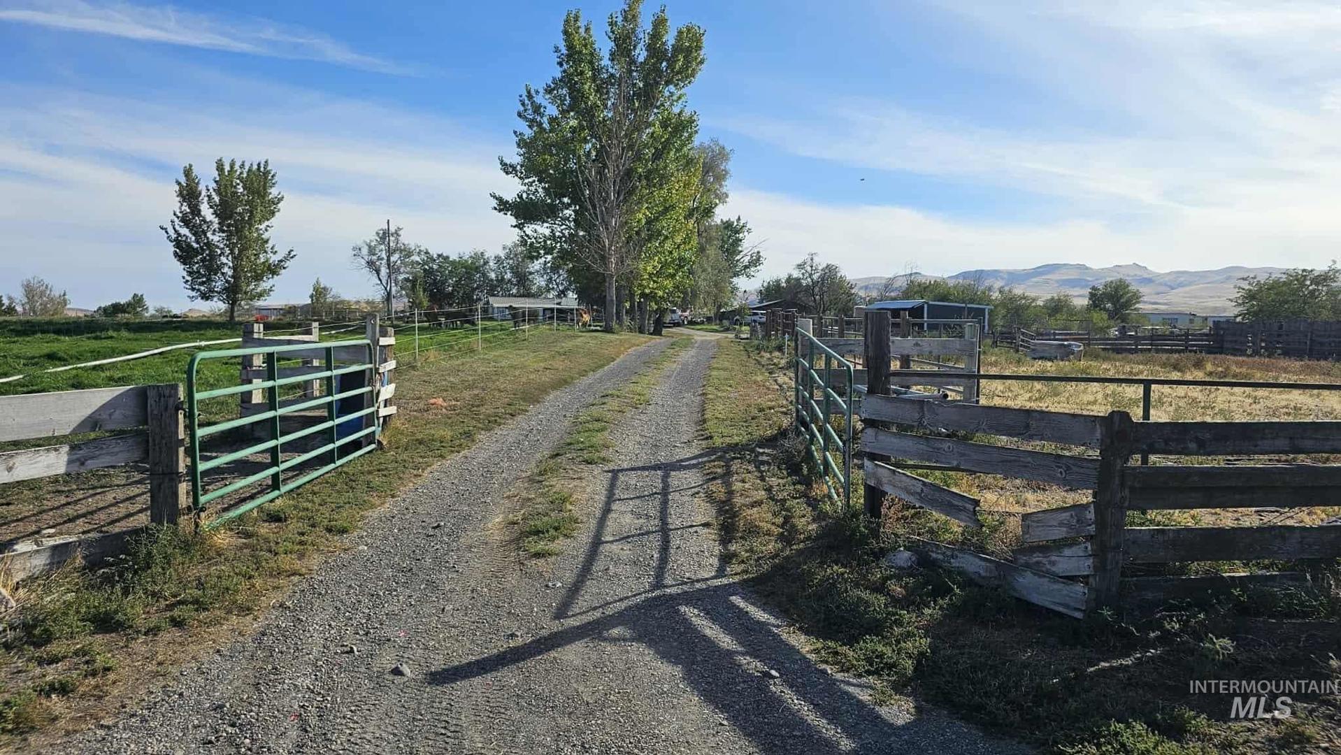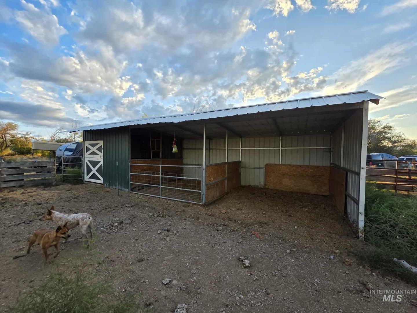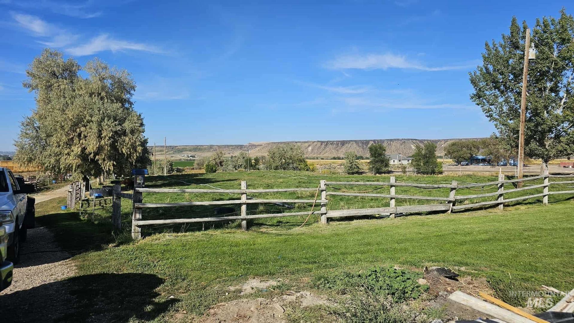 Charming 3 bed 2 bath home on 5+ Quiet Acres. Nice kitchen with a large walk in pantry. Cozy Wood stove and a Metal roof. One 2 stall barn with a tack room. One shop with single car garage. Irrigation on property includes 7 lines of 3 in pipe with a 5 Hp irrigation pump. Everything is Green! Large garden area and chicken coop. Bring all the animals you want, it`s all fenced. No HOAs or CCRS. Beautiful mature trees. Owyhee Mountains out your backdoor. Snake River rim view out your front door. Close to Givens Hot Springs. Improvements happening daily. All Appliances stay with the house.