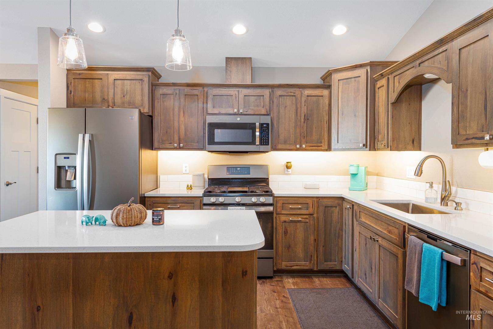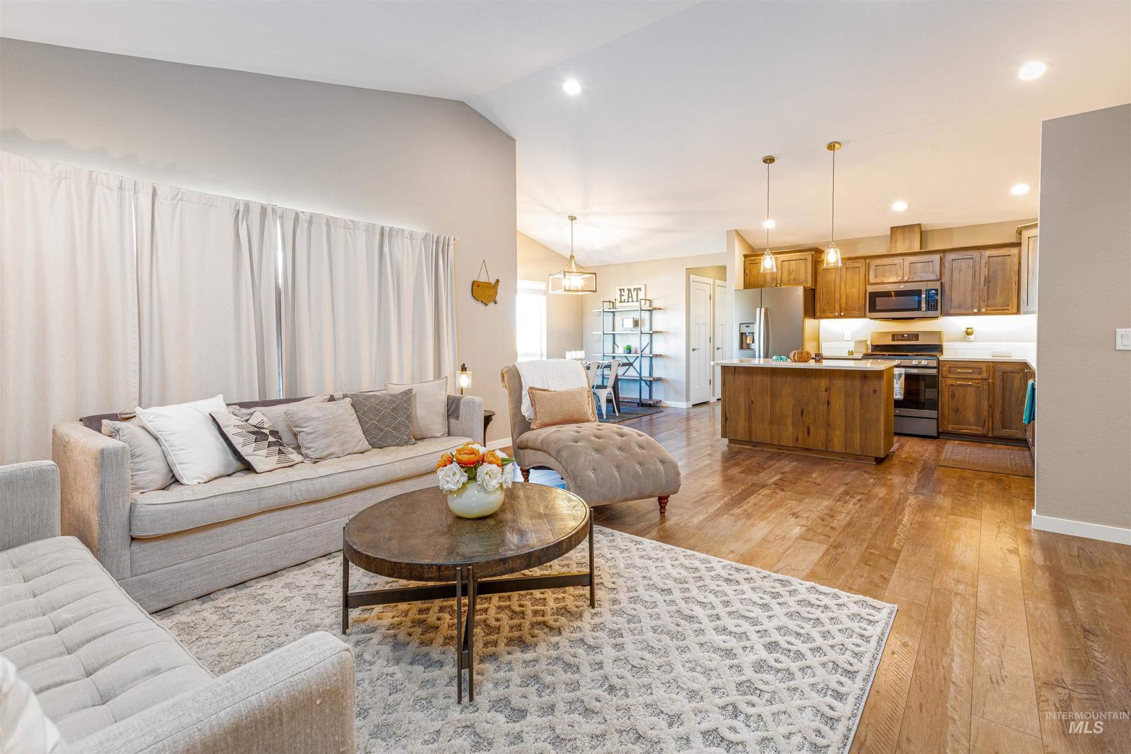 WHY CHOOSE THIS HOME? The ease of one-level living! NO STAIRS! BEST FEATURE about THIS HOME? Spacious, open living room, beautiful kitchen and dining room. Oh! and not to mention a large master suite with a walk-in closet, master bathroom with ample sized walk-in tiled shower, dual sinks and...did I mention the COVERED DECK? The colorful SUNRISE invites you to sit on your deck and sip your morning beverage for those peaceful moments. DO YOU LOVE HAVING A NEIGHBORHOOD PARK? It`s right across the street! Take a look! You won`t be disappointed. MOVE IN READY. ALL appliances including GE Profile gas stove w 5 burners, refrigerator, DW, microwave, PLUS... a nearly new matching Whirlpool washer and dryer. Easy to care for yard with underground sprinkler system and drip lines. Graveled area just made for a firepit! **TAXES do NOT reflect the Homeowner Exemption. If you intend to occupy this home taxes will be lower.**