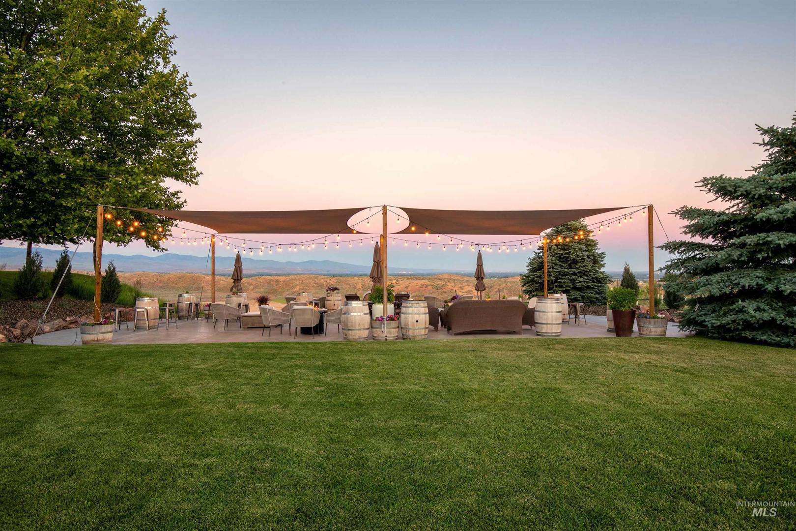 Welcome to Dude Dewalt Cellars & Event Center – a rare opportunity to own a piece of Idaho history on a gorgeous hilltop estate with 360-degree Treasure Valley views. Located in the rugged Eagle foothills, this award-winning winery was established in 2011 and named to honor the pioneers of this incredible region. The 5,615 SF custom home sits on 34.60 acres of rolling hills, offers endless views and borders BLM land. Recently updated with new carpet, lights, and paint, the home is move-in ready. Ideally positioned off HWY 16 with a dedicated turn lane, the property is a premier and unique event center, approved for up to 24 events annually with 250 guests and unlimited gatherings under 125. Even more, it has been approved for additional buildings—creating exceptional opportunity for future expansion and growth. A 50x60 shop includes 3 RV bays, half bath, office, and generous storage. Vineyards feature Malbec, Tempranillo, Cabernet Sauvignon, Cabernet Franc, and Syrah. Follow your dreams today!