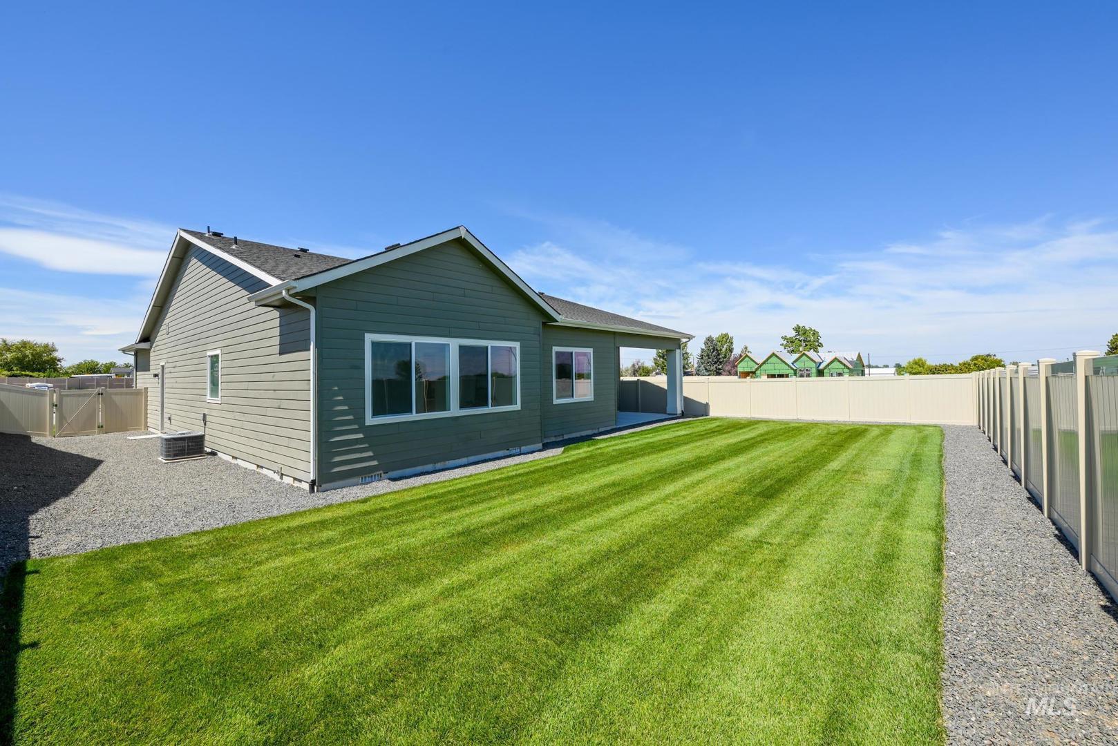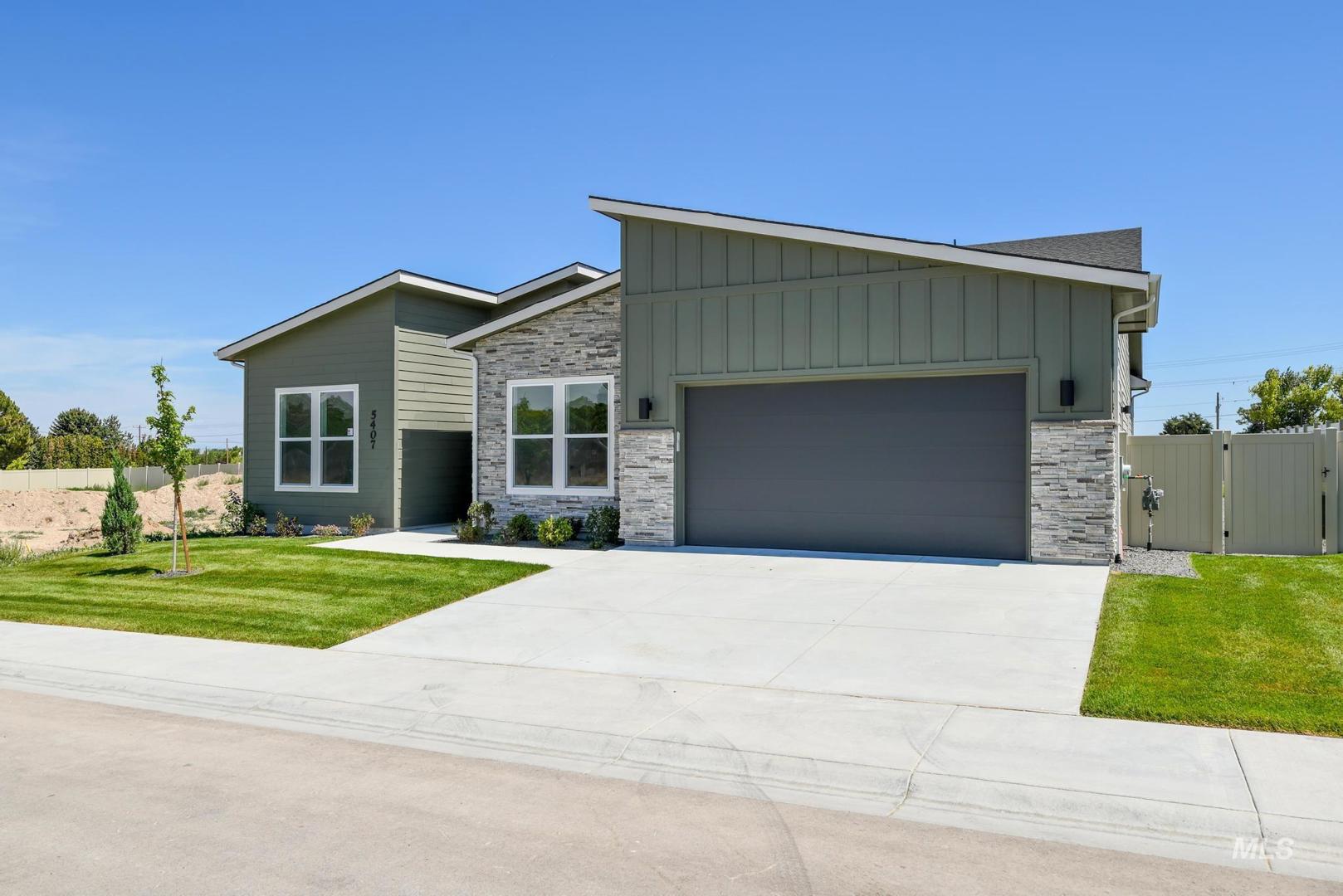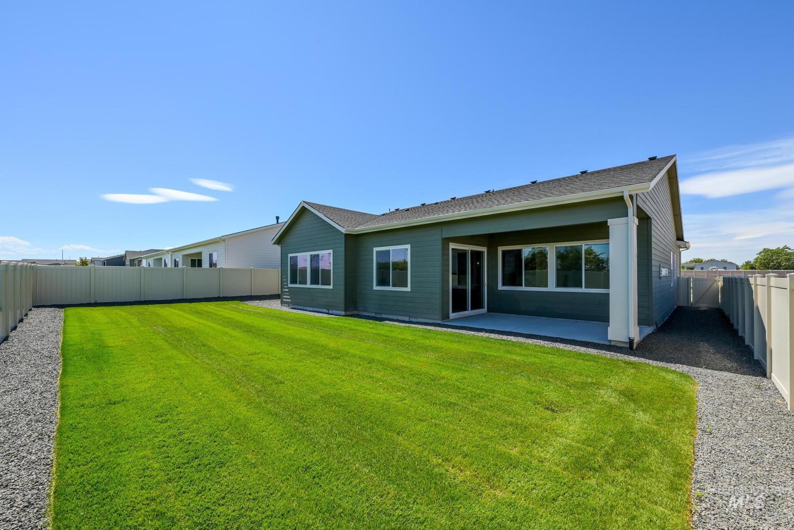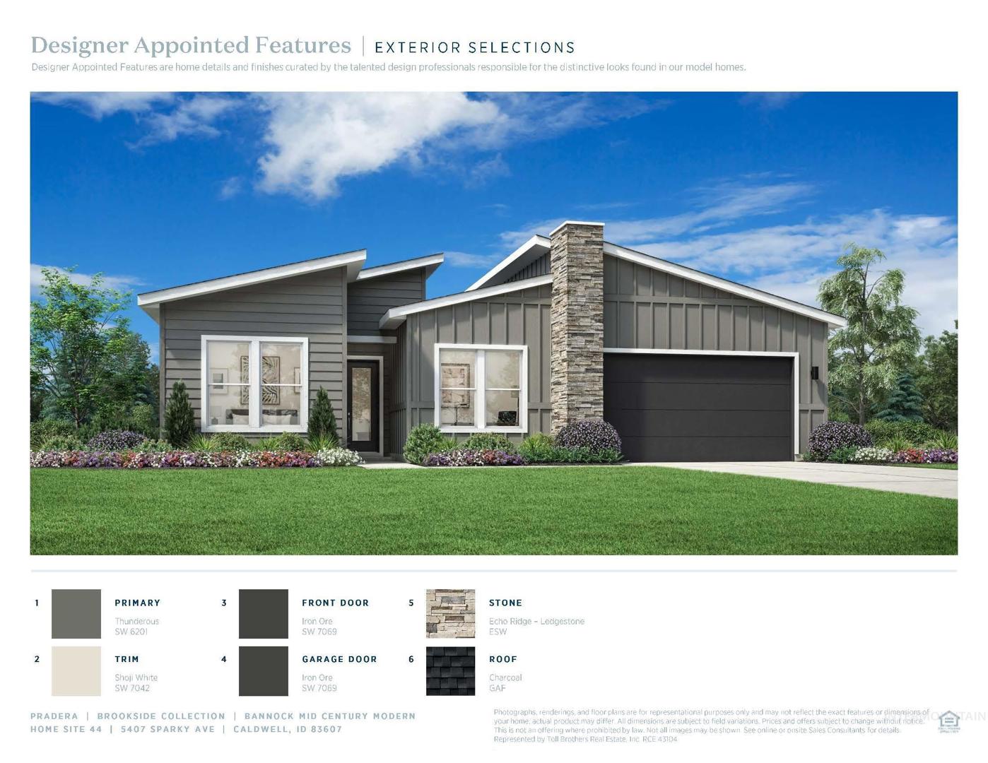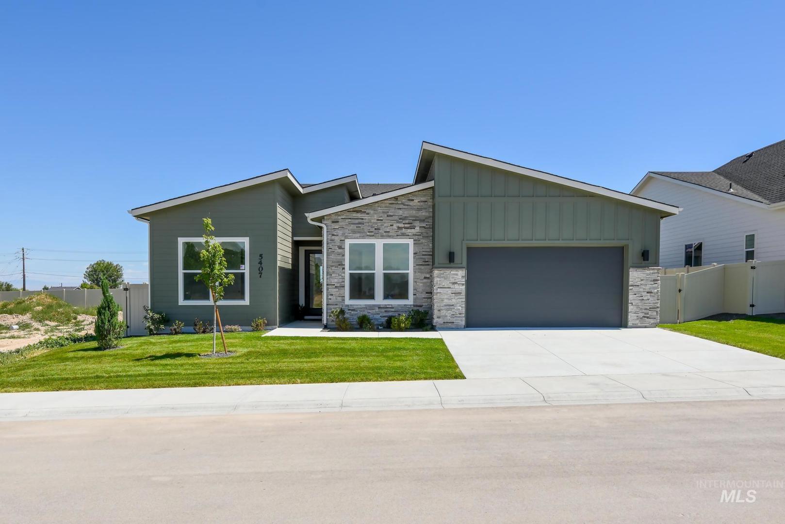 The Bannock exudes contemporary comfort and functionality, exemplified by its thoughtfully crafted single-story layout. A long foyer sets the stage, leading to a spacious great room seamlessly connected to the kitchen, casual dining area, and covered patio—an ideal setting for gatherings and relaxation. The kitchen is centered around a striking large center island and enhanced by its expansive walk-in pantry. The primary bedroom suite, nestled in the rear of the home, features a serene sanctuary complete with a luxurious walk-in closet and a primary bath with separate vanities, freestanding tub and a luxe shower. Off the foyer, three secondary bedrooms and two bathrooms offer privacy and comfort. Front and rear landscape included. Large 3 car garage. BTVAI