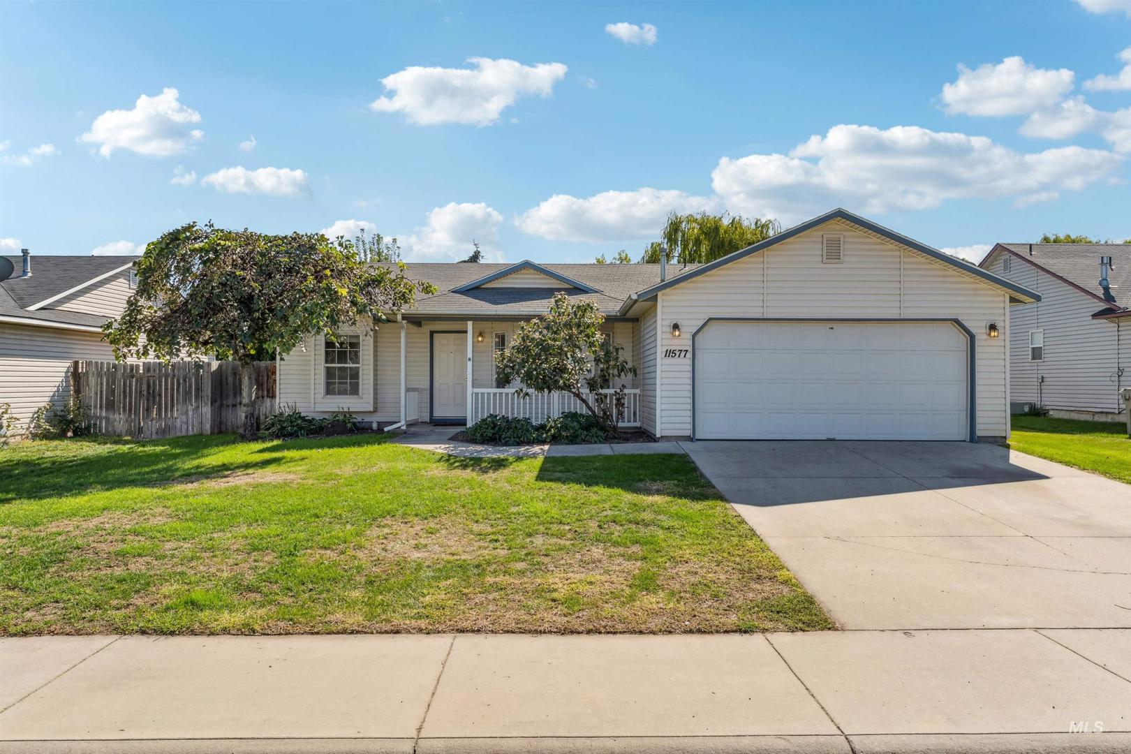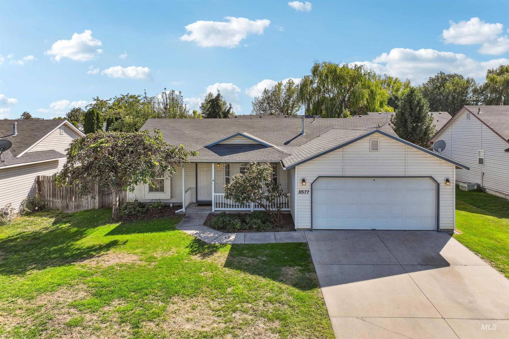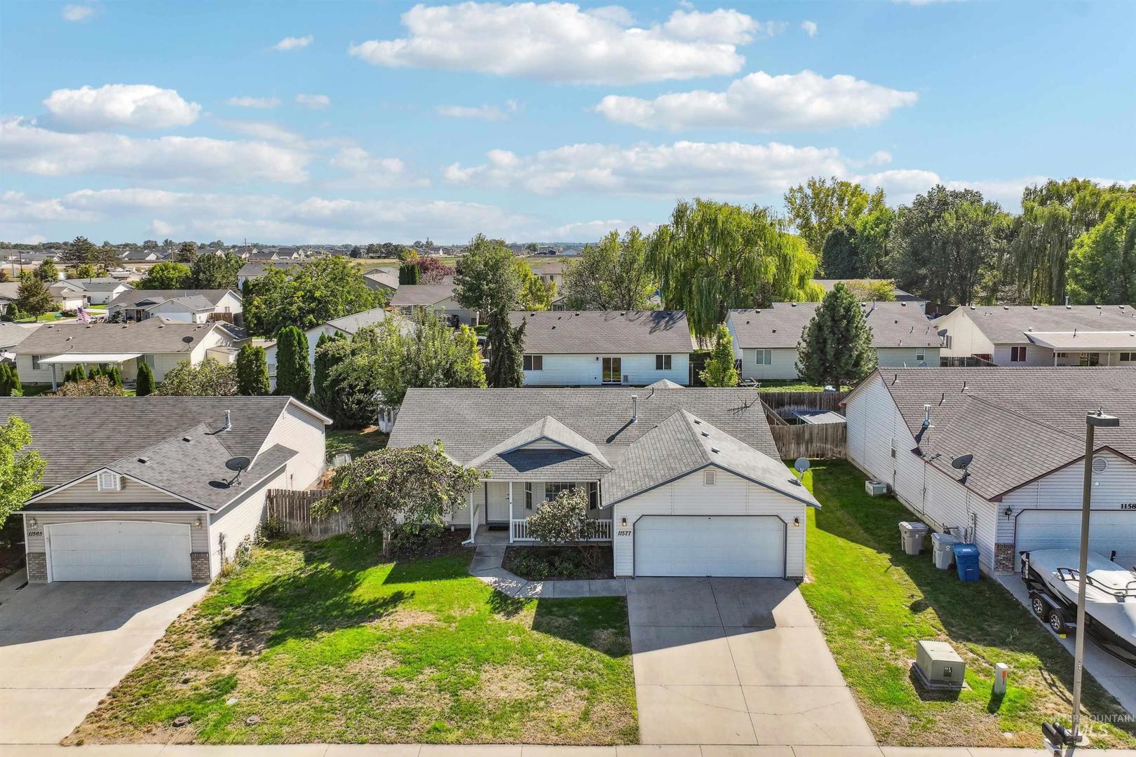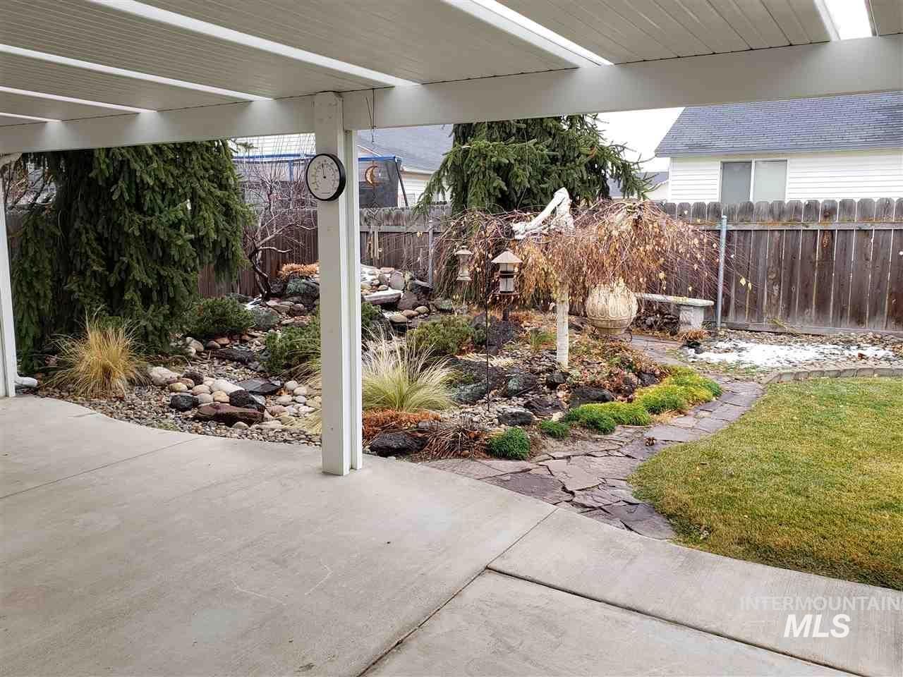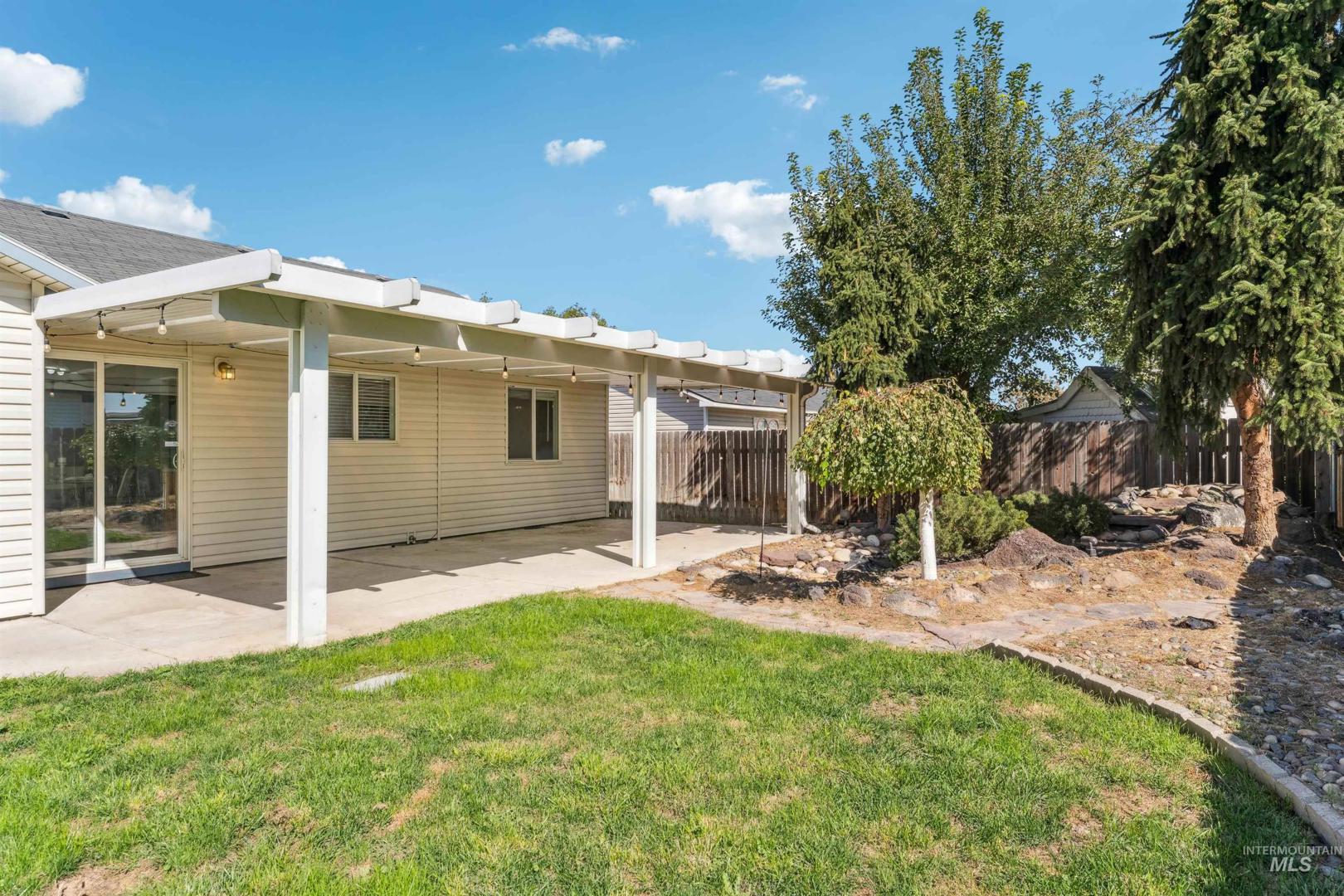 Move-In ready home with a flexible floor plan in a convenient, close-in neighborhood. Featuring a desirable split-bedroom layout, this property offers a spacious additional family room that could easily serve as a fourth bedroom or home office. The updated kitchen boasts elegant Corian countertops, a built-in Corian sink, microwave. Step outside to the large, east-facing covered patio where you can unwind and entertain while enjoying the serene water feature in the landscaped backyard—ideal for relaxing outdoor living. Lenox HVAC has serviced. 220 hookup in garage. Rainbird sprinkler system. Construction for the HWY 55/Karcher expansion is taking place in front of the subdivision. Much of the exterior landscaping is being redone due to the expansion. The subdivision entrance will also be updated as part of the road