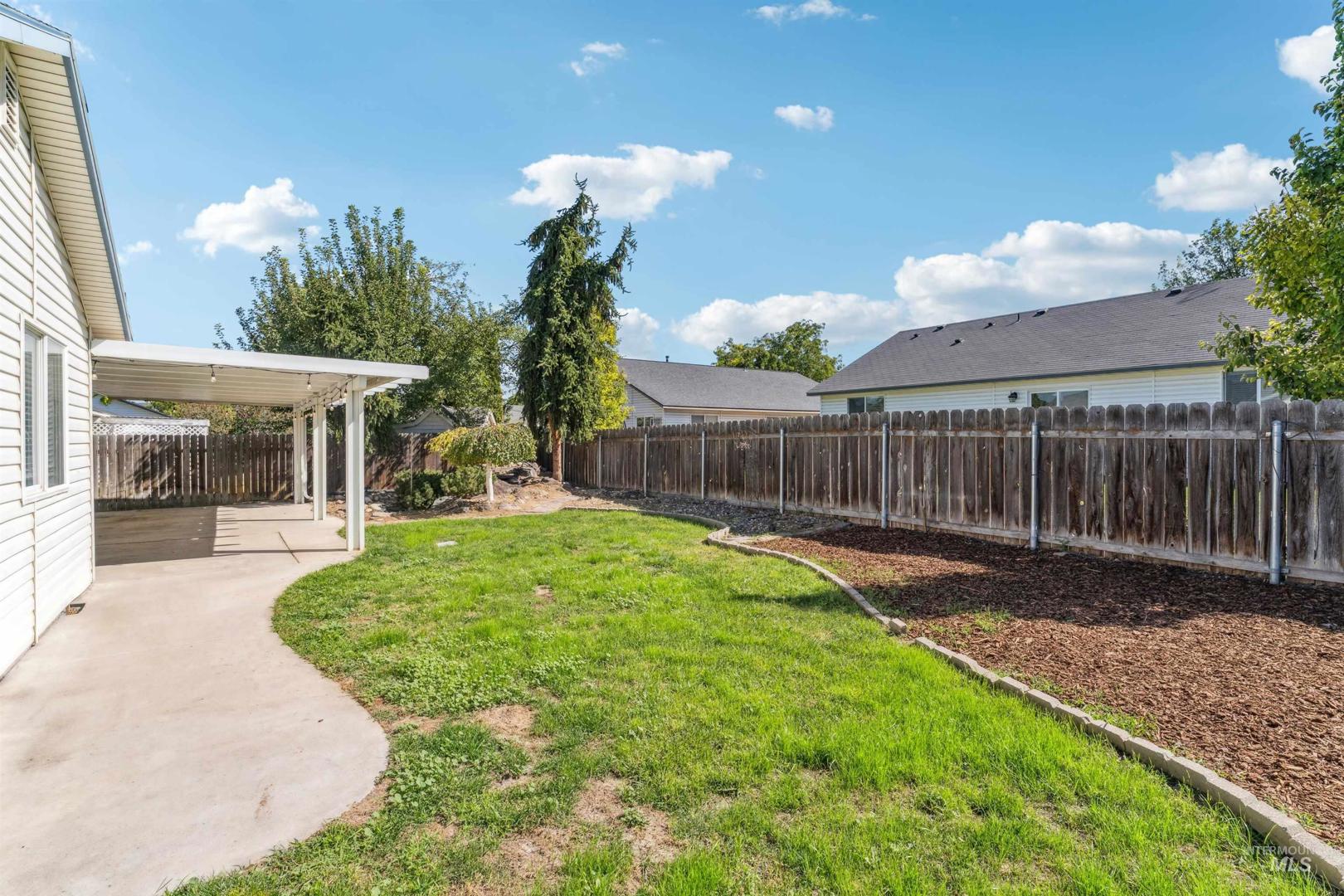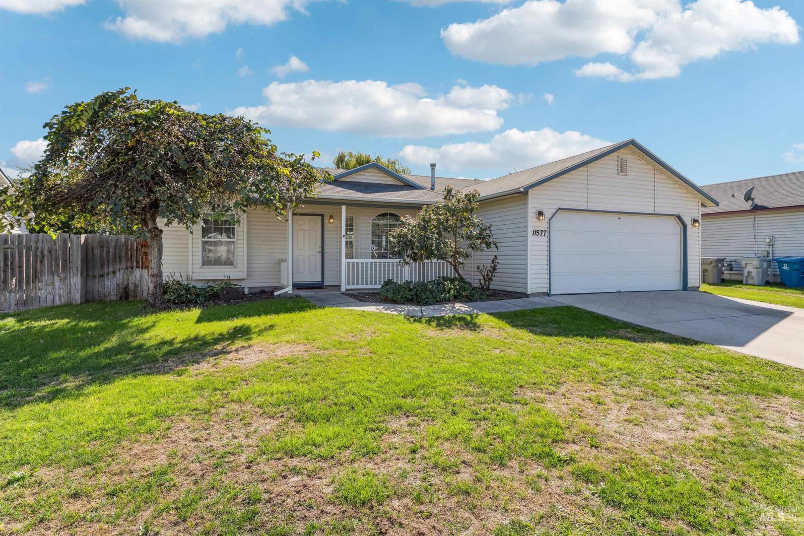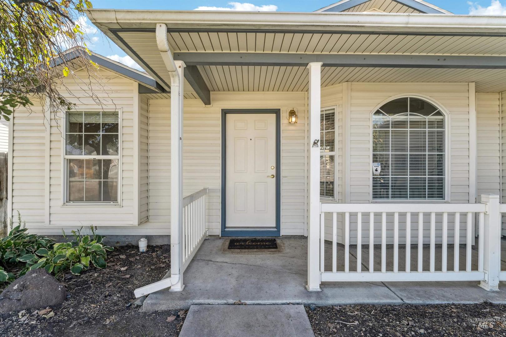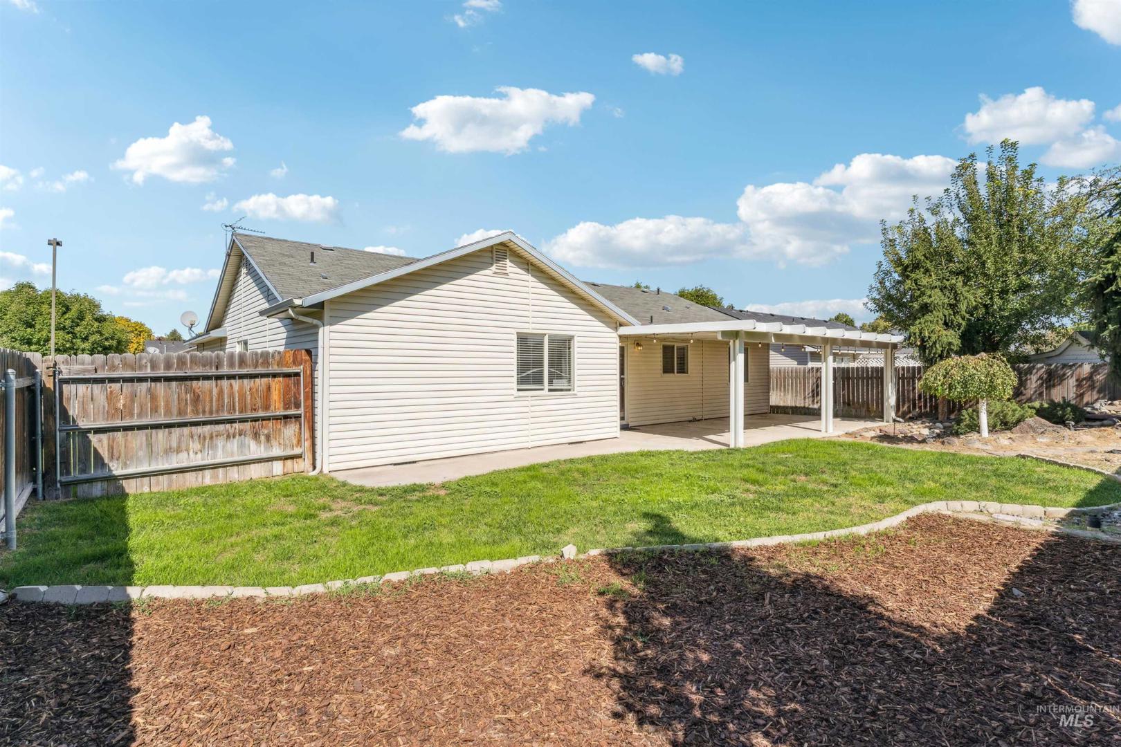 Move-In ready home with a flexible floor plan in a convenient, close-in neighborhood. Featuring a desirable split-bedroom layout, this property offers a spacious additional family room that could easily serve as a fourth bedroom or home office. The updated kitchen boasts elegant Corian countertops, a built-in Corian sink, microwave. Step outside to the large, east-facing covered patio where you can unwind and entertain while enjoying the serene water feature in the landscaped backyard—ideal for relaxing outdoor living. Lenox HVAC has serviced. 220 hookup in garage. Rainbird sprinkler system. Construction for the HWY 55/Karcher expansion is taking place in front of the subdivision. Much of the exterior landscaping is being redone due to the expansion. The subdivision entrance will also be updated as part of the road