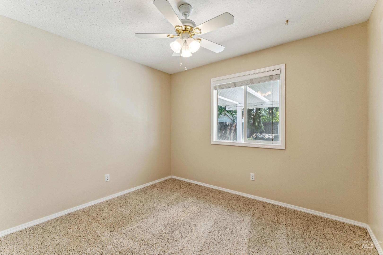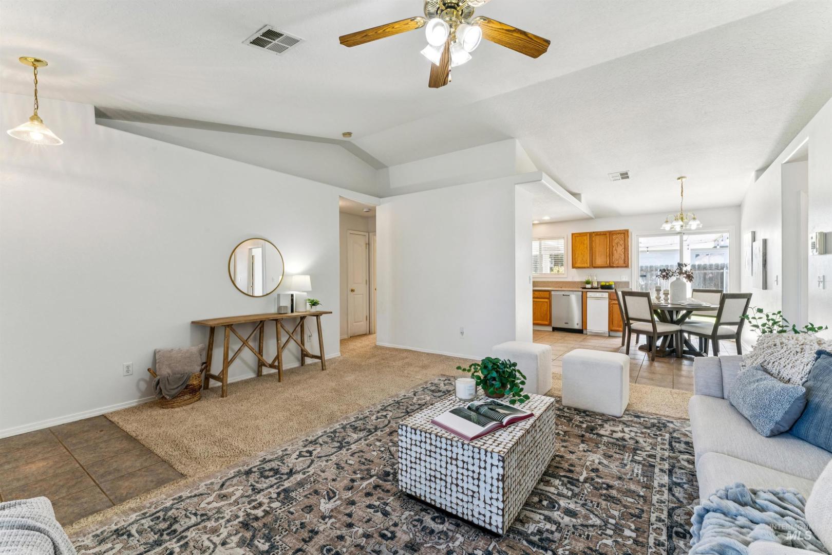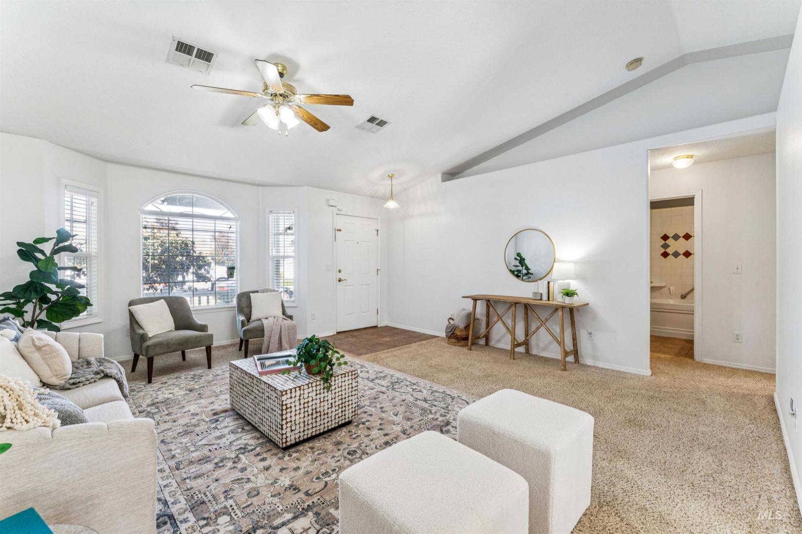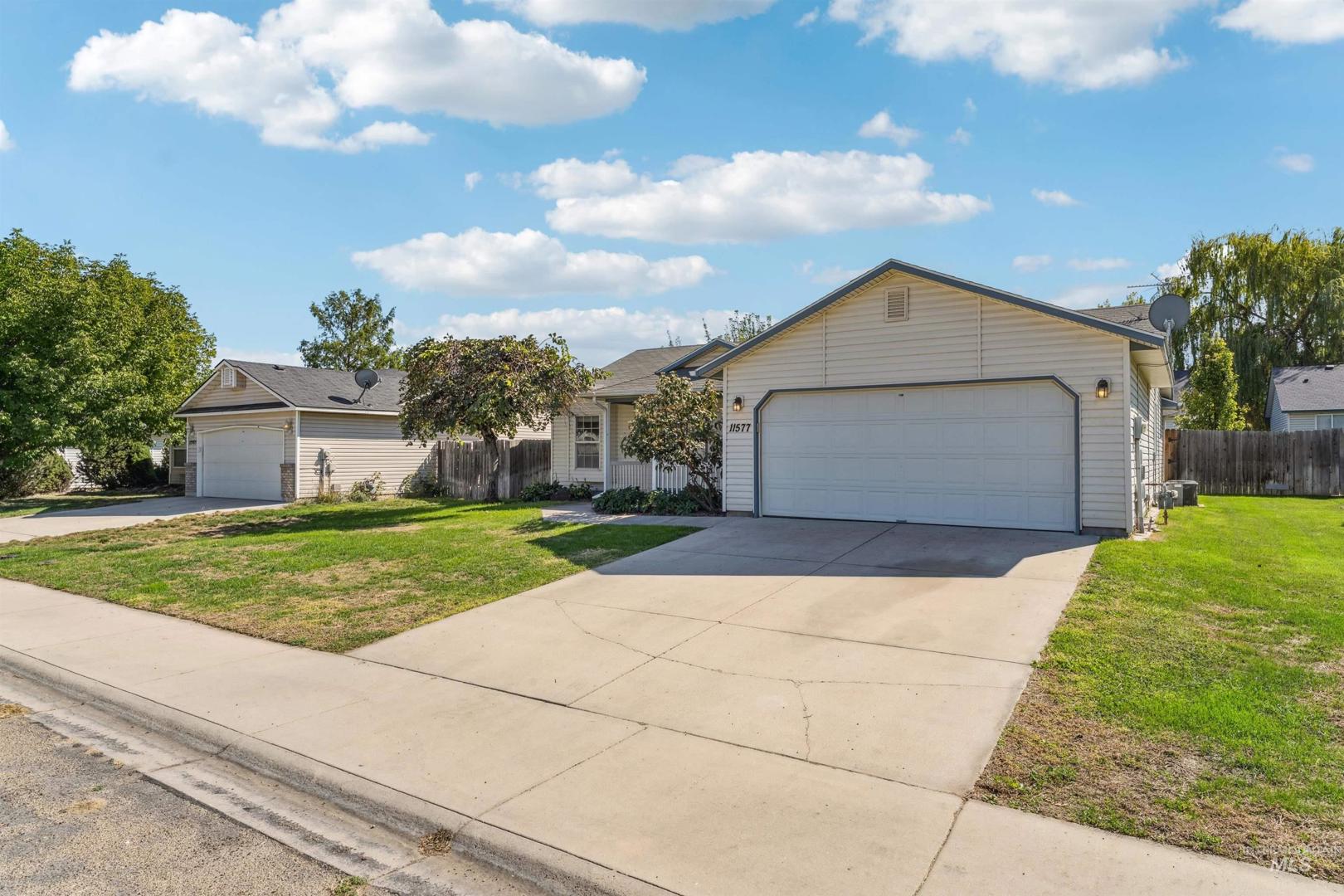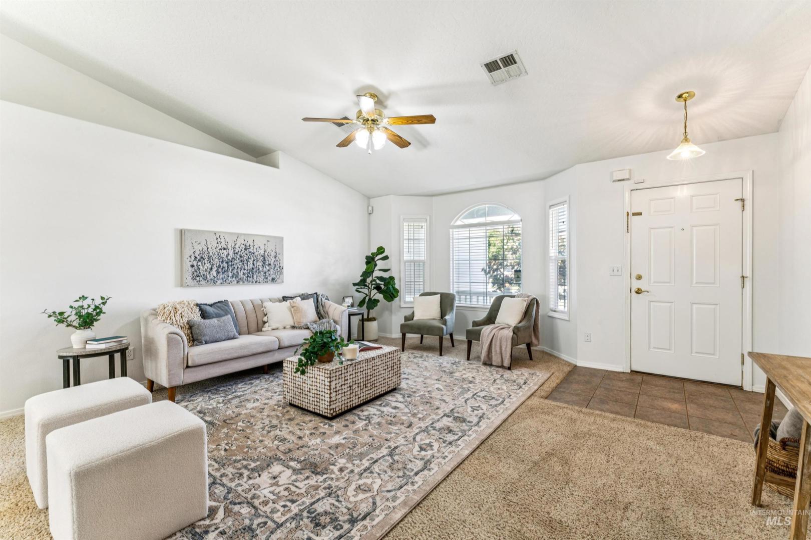 Move-In ready home with a flexible floor plan in a convenient, close-in neighborhood. Featuring a desirable split-bedroom layout, this property offers a spacious additional family room that could easily serve as a fourth bedroom or home office. The updated kitchen boasts elegant Corian countertops, a built-in Corian sink, microwave. Step outside to the large, east-facing covered patio where you can unwind and entertain while enjoying the serene water feature in the landscaped backyard—ideal for relaxing outdoor living. Lenox HVAC has serviced. 220 hookup in garage. Rainbird sprinkler system. Construction for the HWY 55/Karcher expansion is taking place in front of the subdivision. Much of the exterior landscaping is being redone due to the expansion. The subdivision entrance will also be updated as part of the road