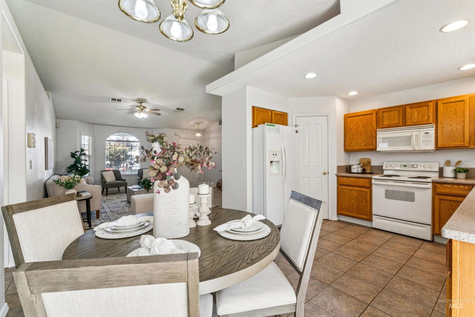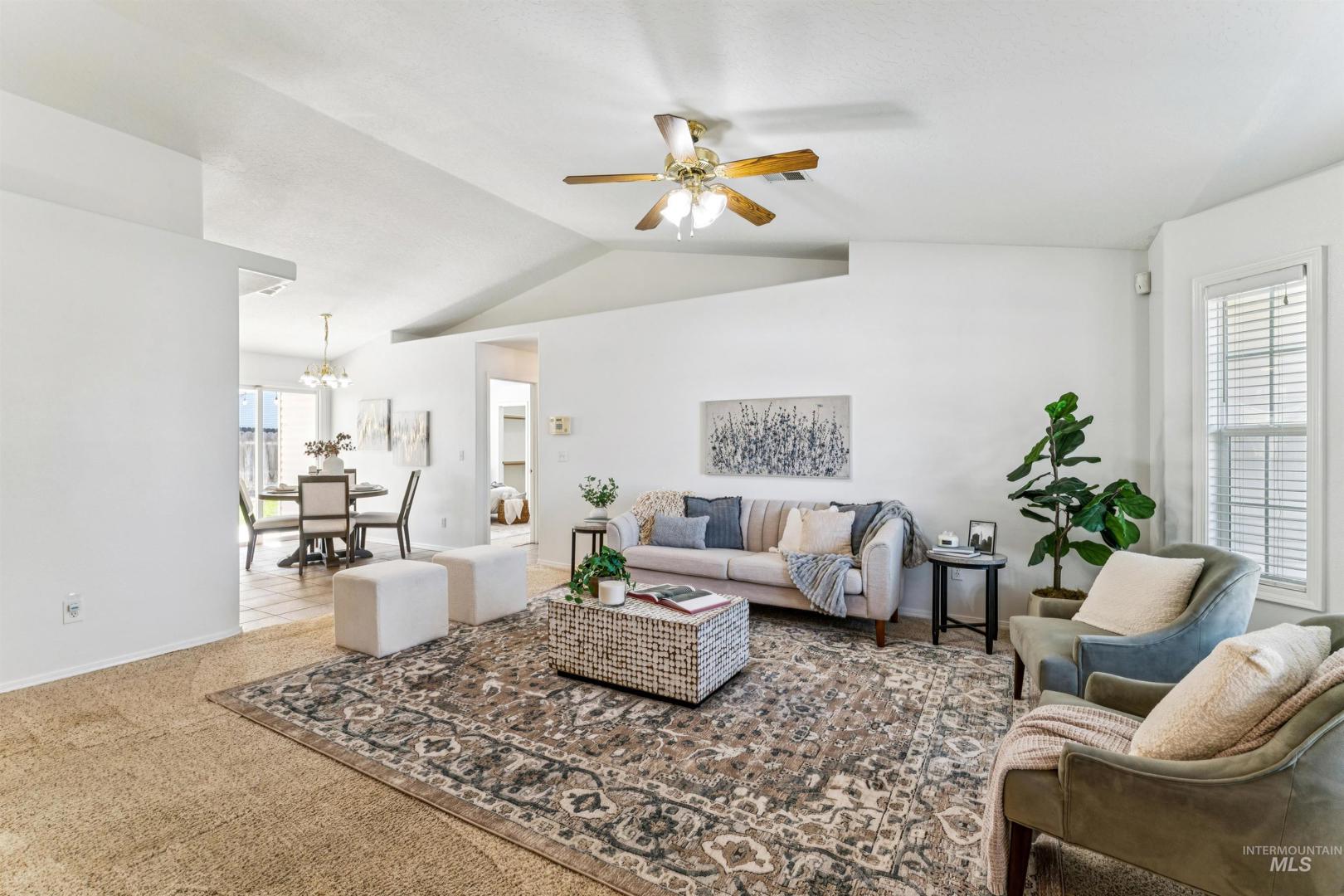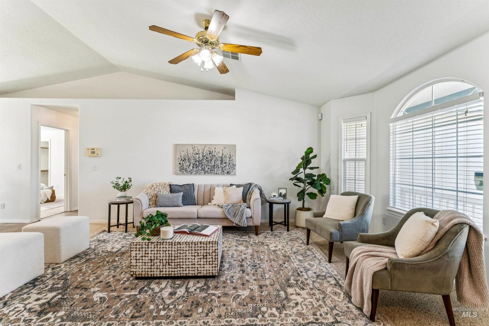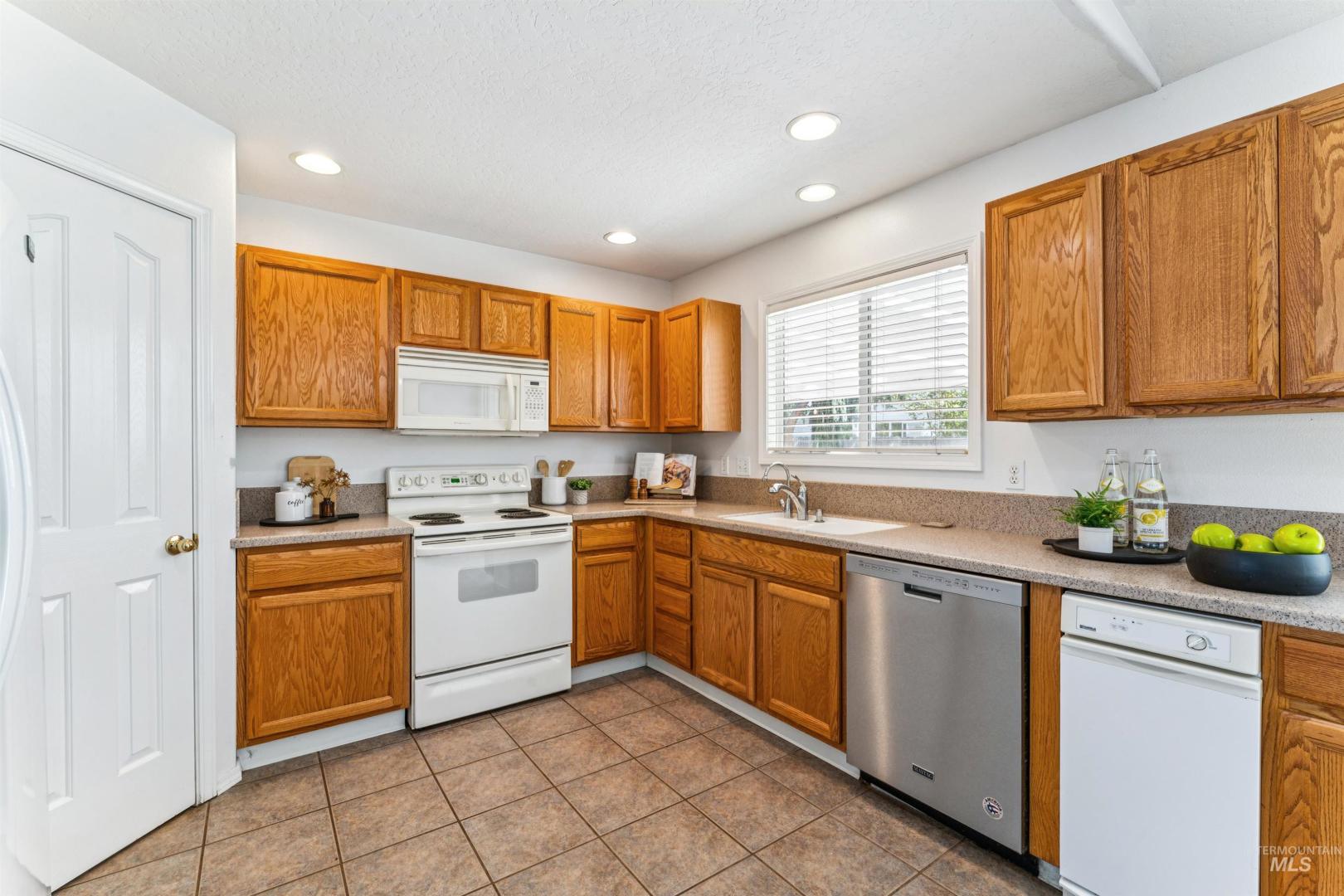 Move-In ready home with a flexible floor plan in a convenient, close-in neighborhood. Featuring a desirable split-bedroom layout, this property offers a spacious additional family room that could easily serve as a fourth bedroom or home office. The updated kitchen boasts elegant Corian countertops, a built-in Corian sink, microwave. Step outside to the large, east-facing covered patio where you can unwind and entertain while enjoying the serene water feature in the landscaped backyard—ideal for relaxing outdoor living. Lenox HVAC has serviced. 220 hookup in garage. Rainbird sprinkler system. Construction for the HWY 55/Karcher expansion is taking place in front of the subdivision. Much of the exterior landscaping is being redone due to the expansion. The subdivision entrance will also be updated as part of the road