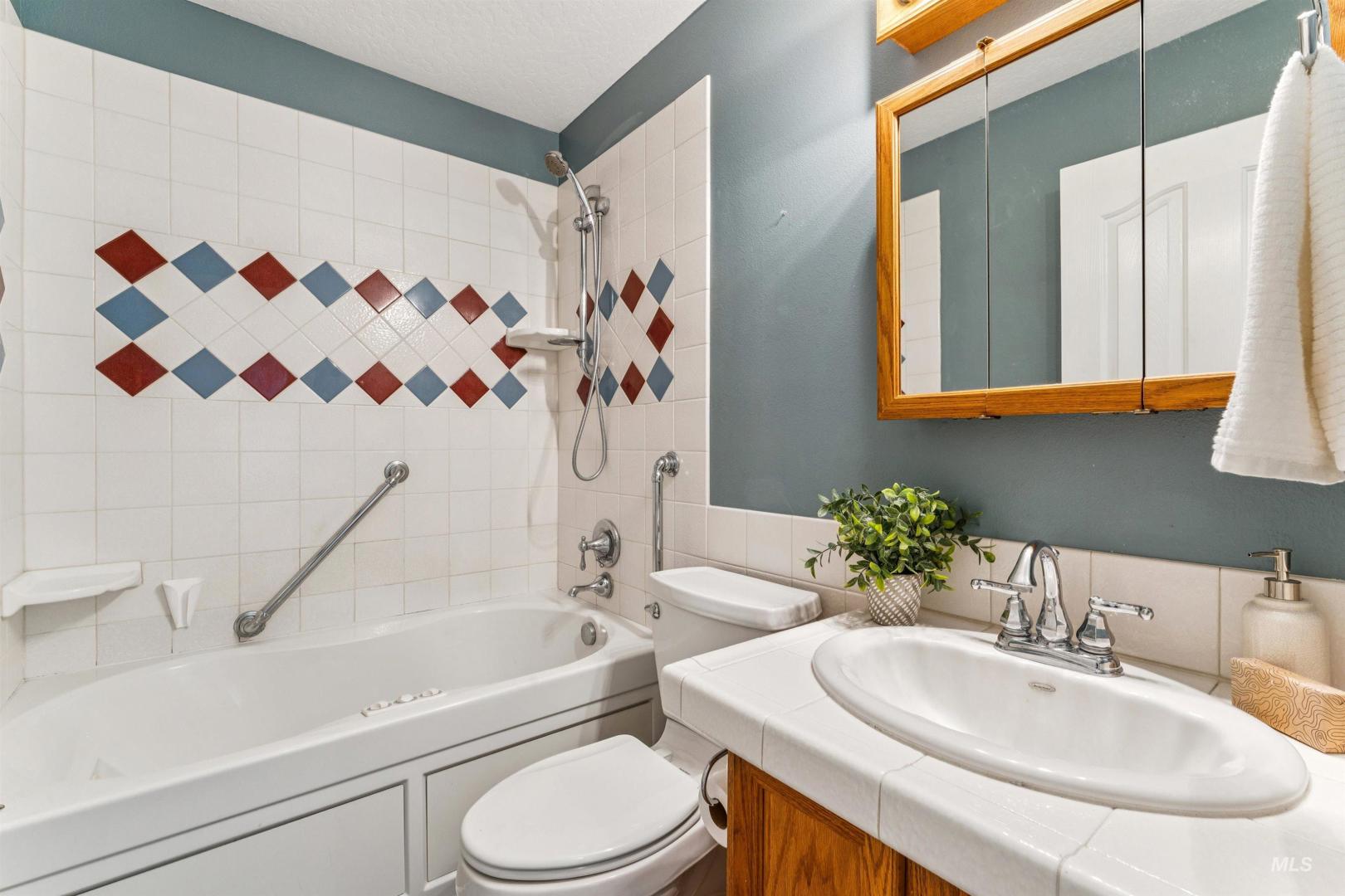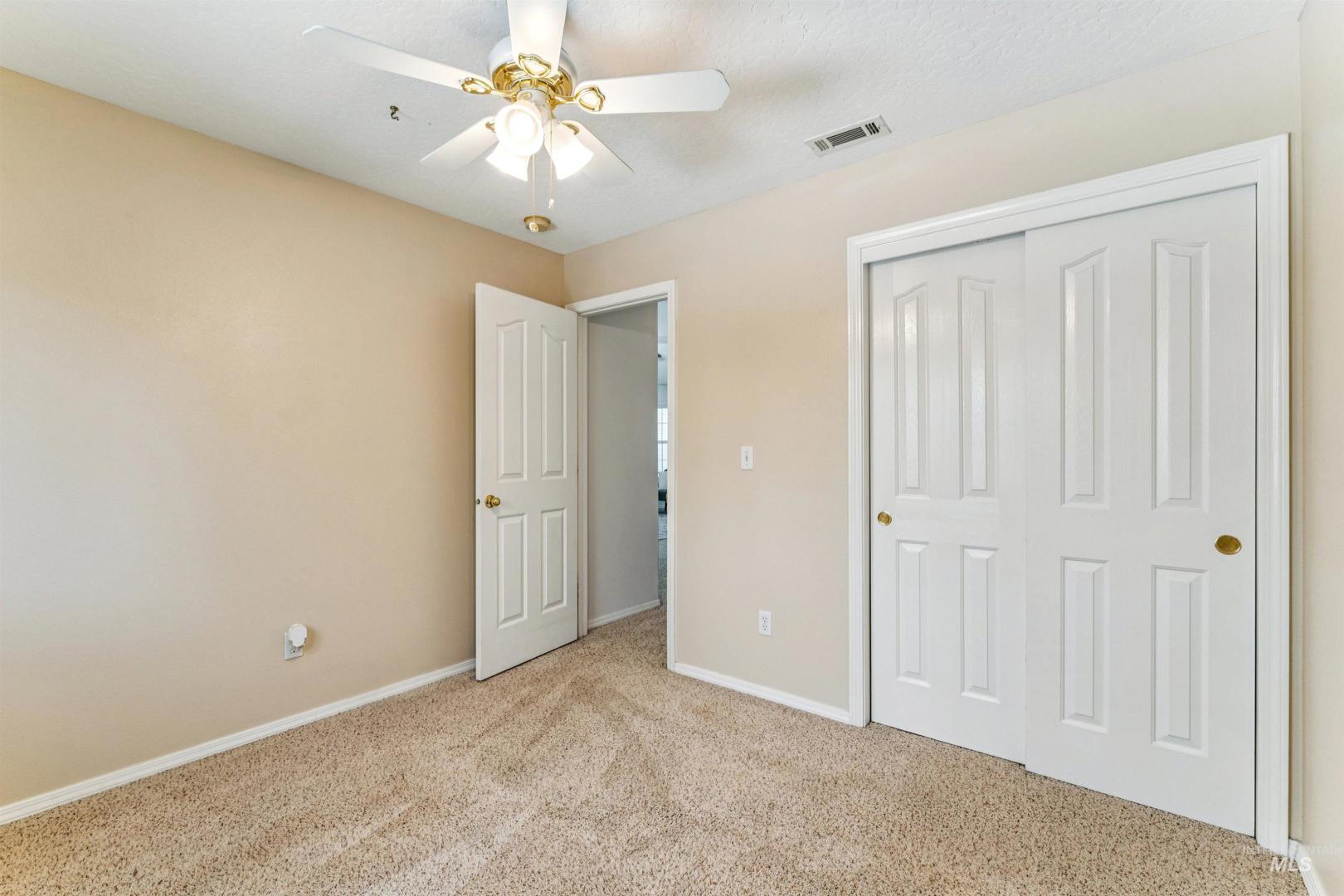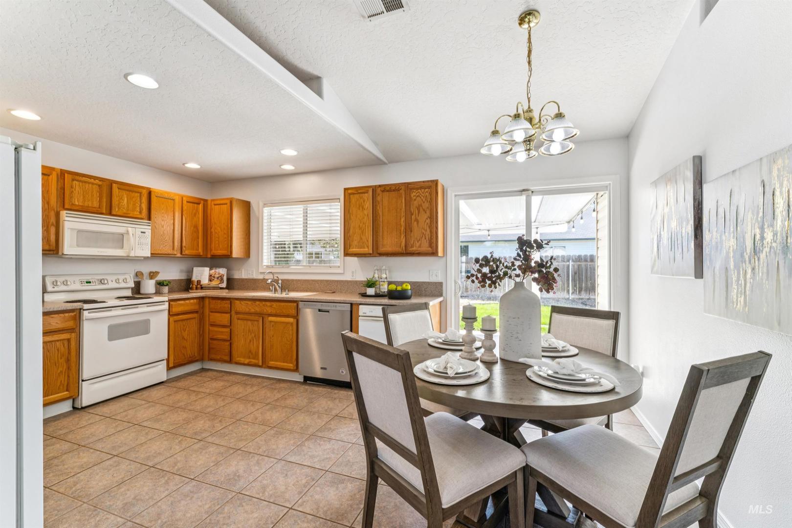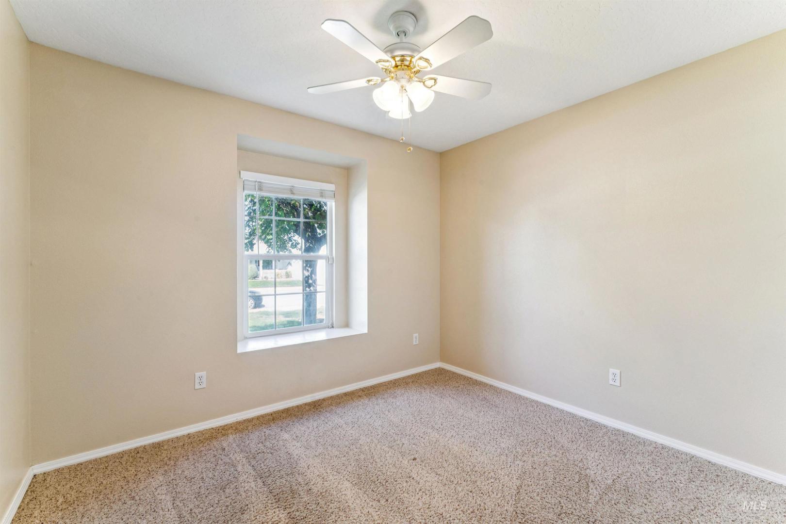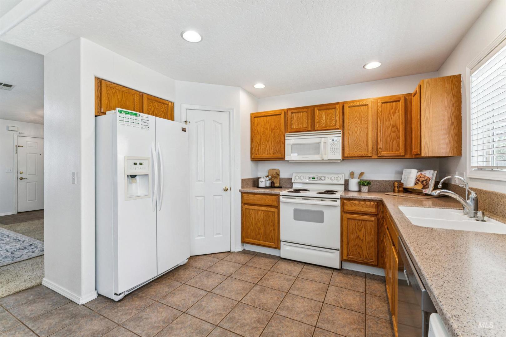 Move-In ready home with a flexible floor plan in a convenient, close-in neighborhood. Featuring a desirable split-bedroom layout, this property offers a spacious additional family room that could easily serve as a fourth bedroom or home office. The updated kitchen boasts elegant Corian countertops, a built-in Corian sink, microwave. Step outside to the large, east-facing covered patio where you can unwind and entertain while enjoying the serene water feature in the landscaped backyard—ideal for relaxing outdoor living. Lenox HVAC has serviced. 220 hookup in garage. Rainbird sprinkler system. Construction for the HWY 55/Karcher expansion is taking place in front of the subdivision. Much of the exterior landscaping is being redone due to the expansion. The subdivision entrance will also be updated as part of the road