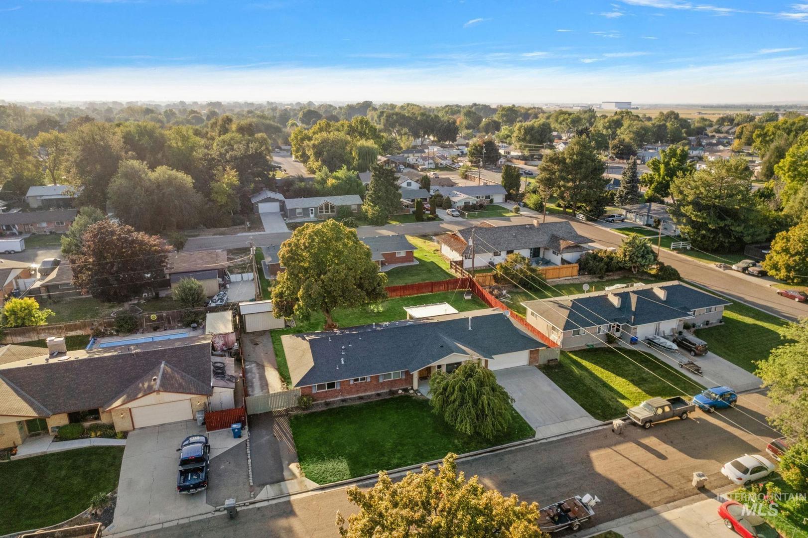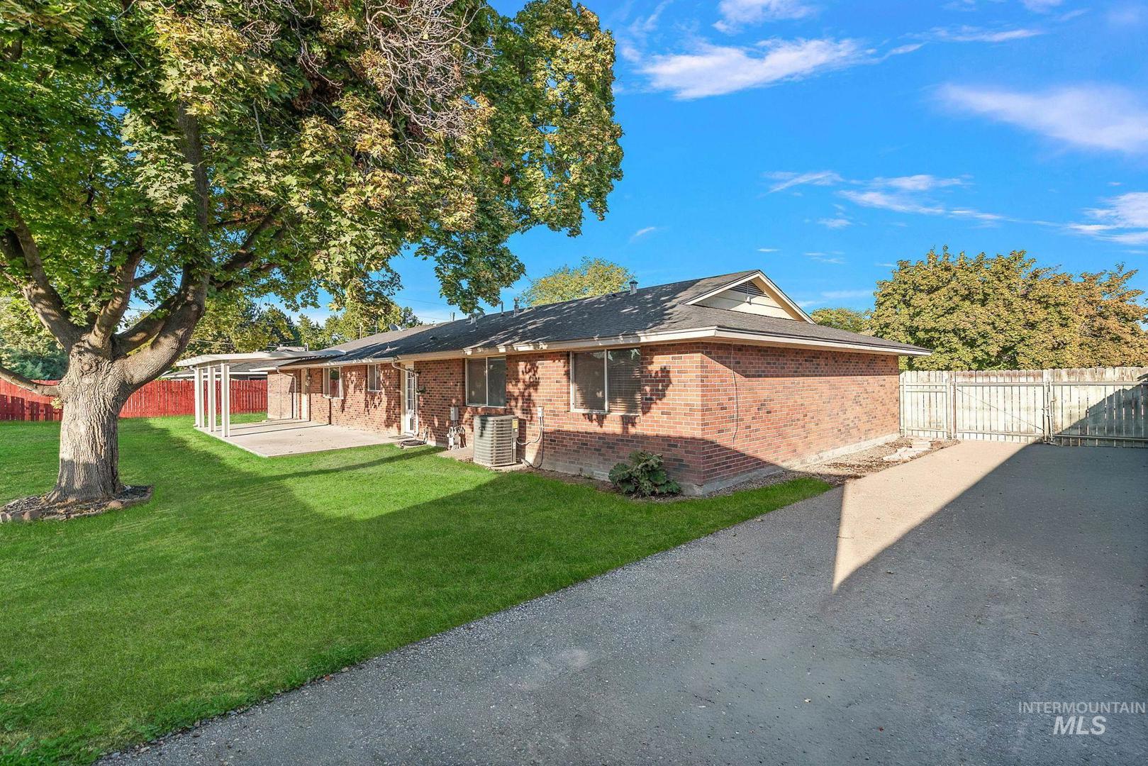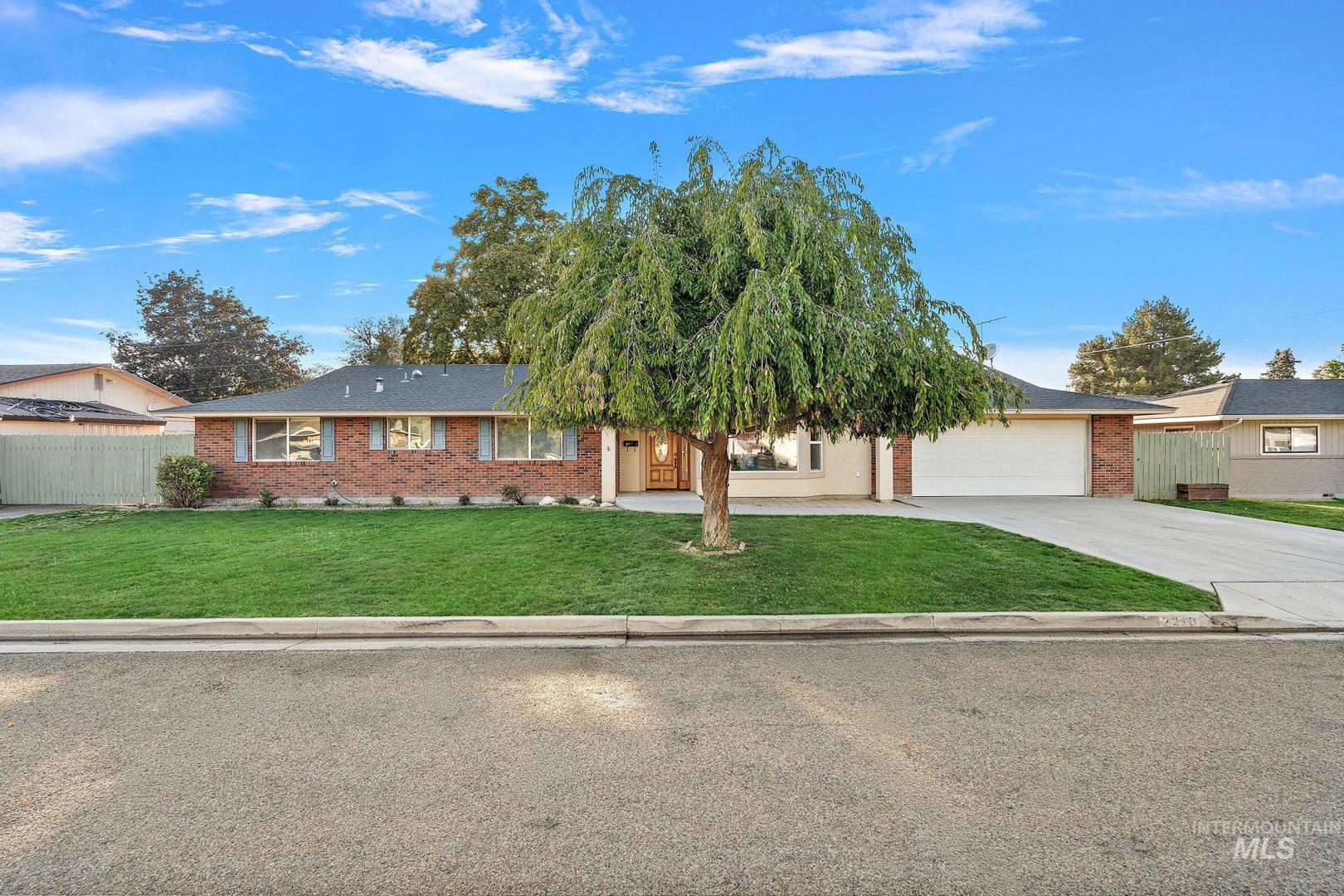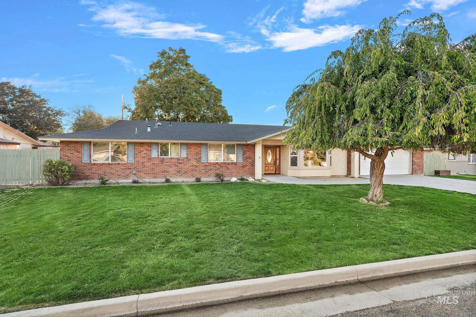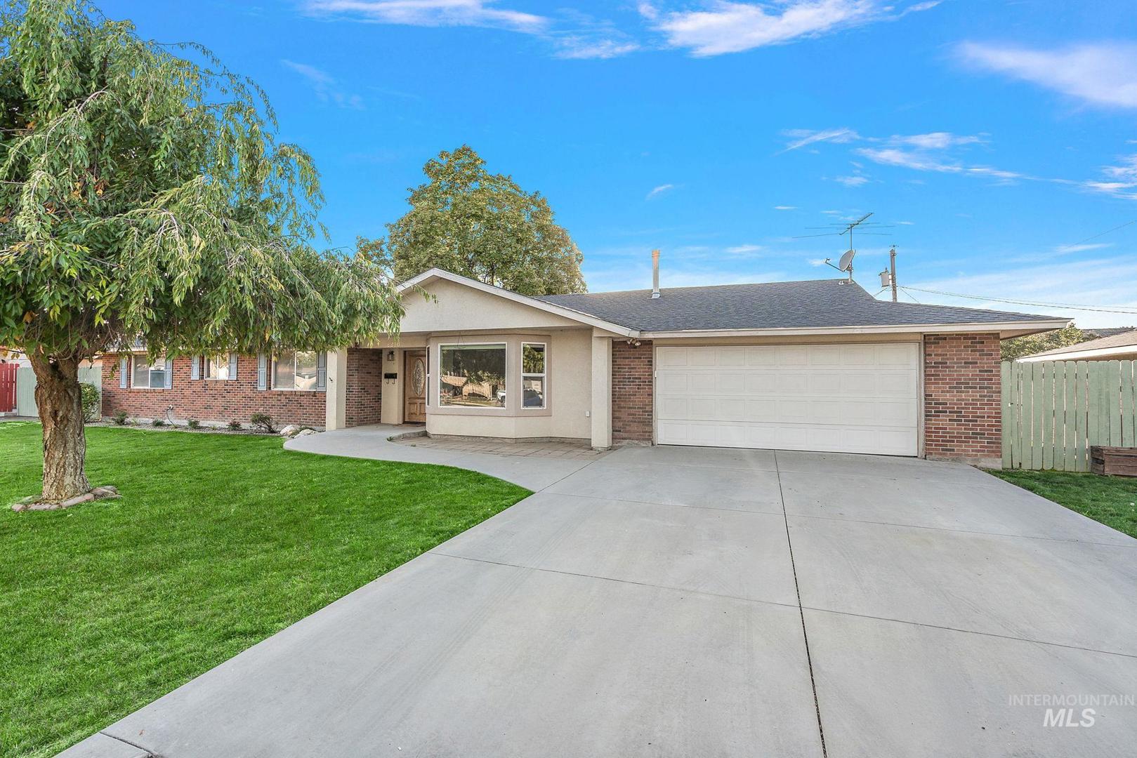 Tucked on a quiet dead-end street finishing in a cul-de-sac, this single-level home offers comfort and convenience: 4 bedrooms, 2 baths, and approx. 2,035 sq ft on a roomy quarter-acre lot. Freshly updated with full interior paint and new flooring. Everyday living extends outdoors to a covered patio and oversized concrete pad with gas stub—ideal for grilling and gatherings. The primary bath features a spacious, accessible shower. An oversized 2-car garage with workbench, backyard shed, 16x10 steel shop with power, and RV parking provide abundant storage. Fully fenced yard with irrigation and sprinklers. Refrigerator, washer, and dryer included for easy move-in. Brick exterior, central air, and gas heat ensure lasting comfort. Fantastic Caldwell location—near West Valley Medical Center, schools, shopping, Indian Creek Plaza, and quick I-84 access. Low-traffic setting with room to spread out—ideal for living or entertaining. Buyer to verify all information.