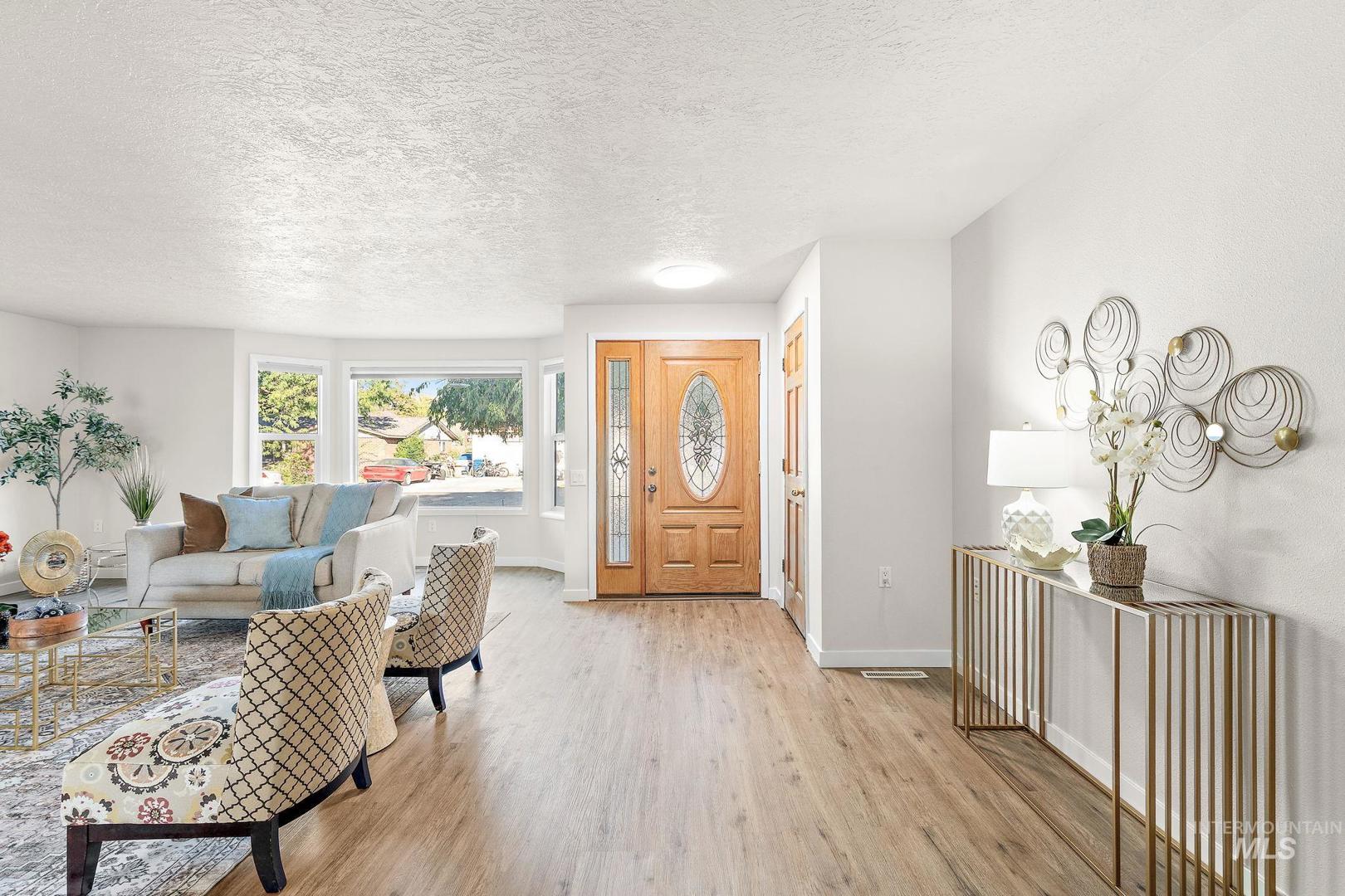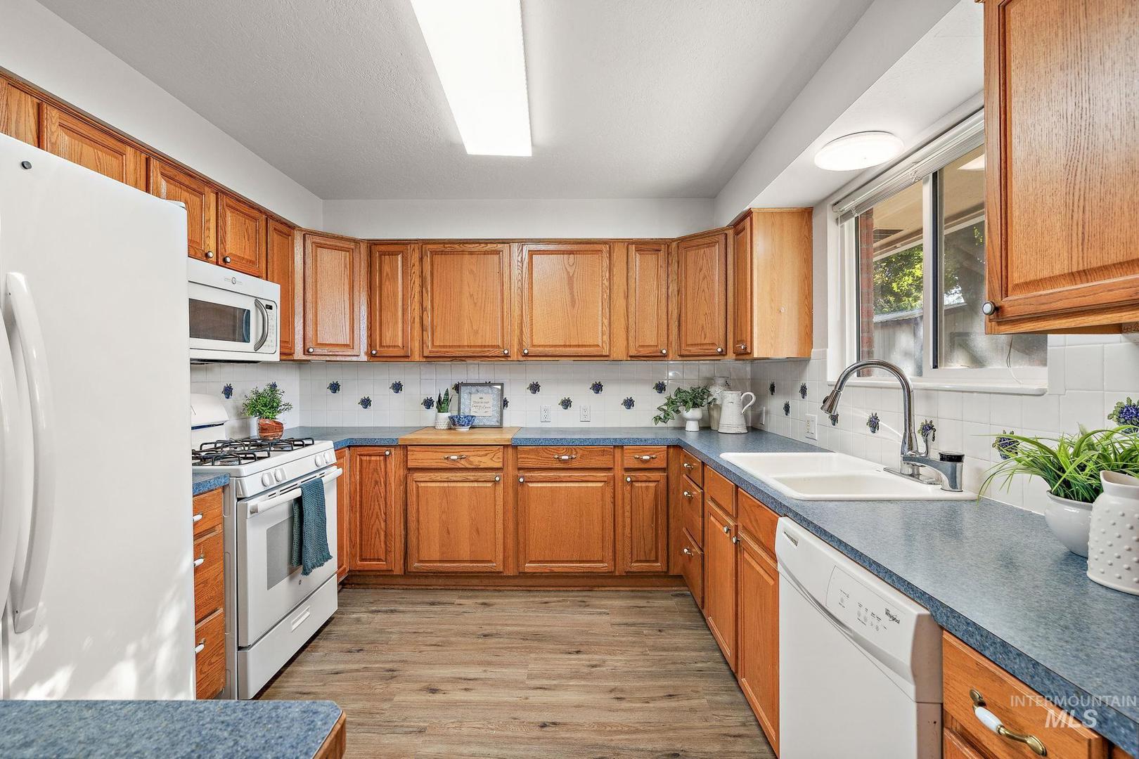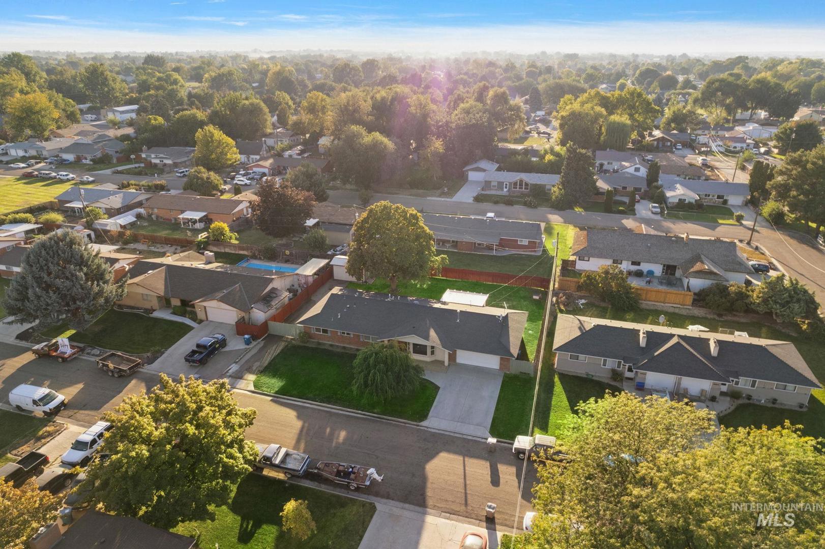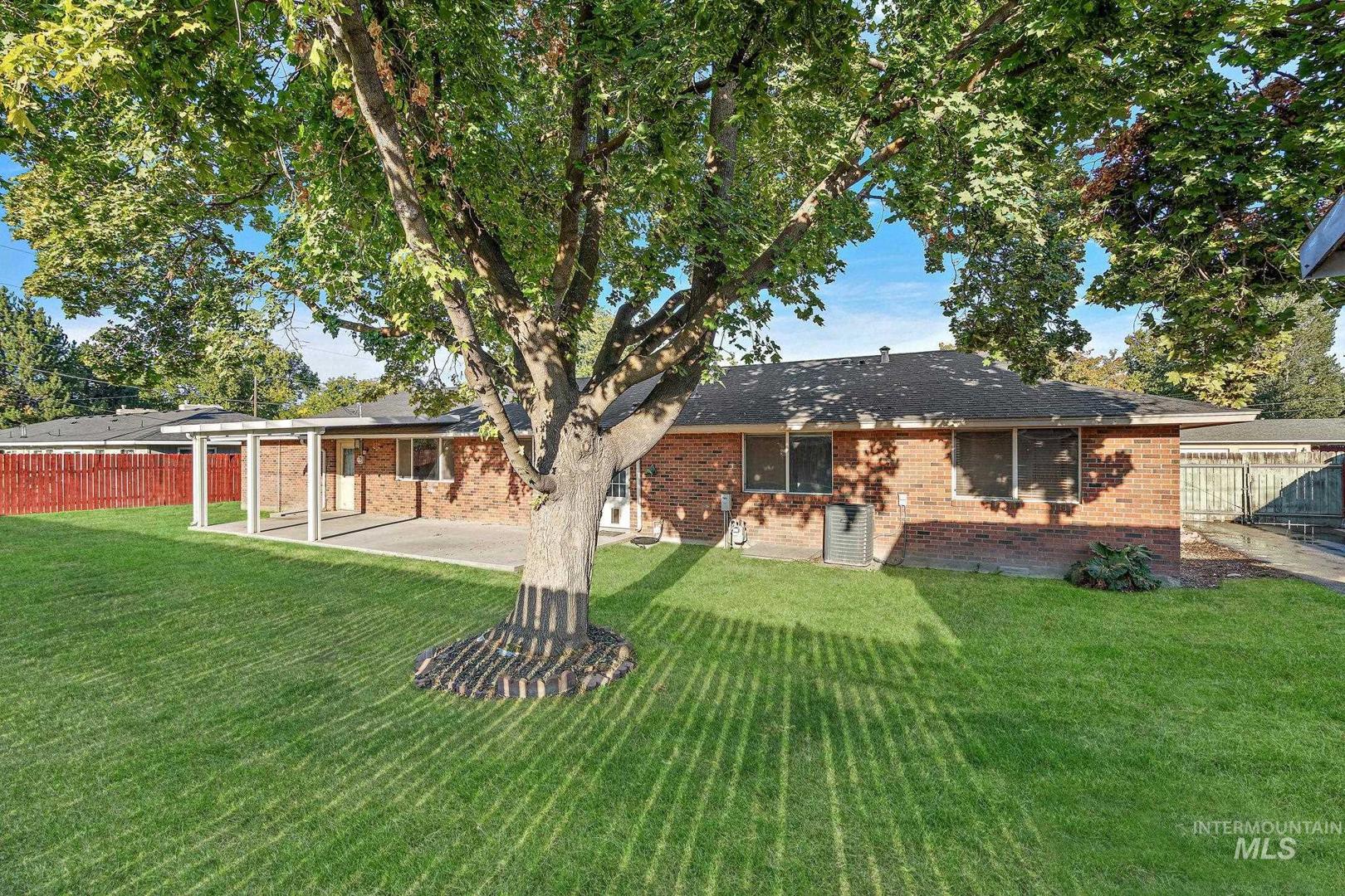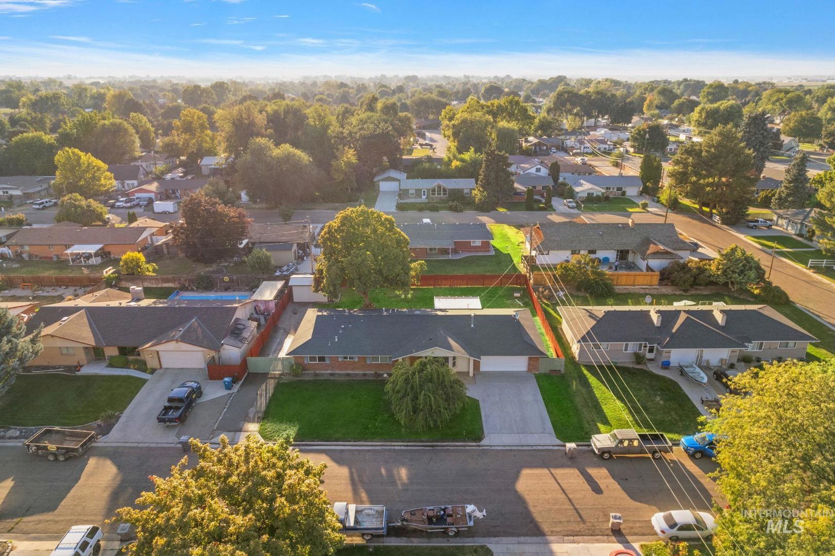 Tucked on a quiet dead-end street finishing in a cul-de-sac, this single-level home offers comfort and convenience: 4 bedrooms, 2 baths, and approx. 2,035 sq ft on a roomy quarter-acre lot. Freshly updated with full interior paint and new flooring. Everyday living extends outdoors to a covered patio and oversized concrete pad with gas stub—ideal for grilling and gatherings. The primary bath features a spacious, accessible shower. An oversized 2-car garage with workbench, backyard shed, 16x10 steel shop with power, and RV parking provide abundant storage. Fully fenced yard with irrigation and sprinklers. Refrigerator, washer, and dryer included for easy move-in. Brick exterior, central air, and gas heat ensure lasting comfort. Fantastic Caldwell location—near West Valley Medical Center, schools, shopping, Indian Creek Plaza, and quick I-84 access. Low-traffic setting with room to spread out—ideal for living or entertaining. Buyer to verify all information.