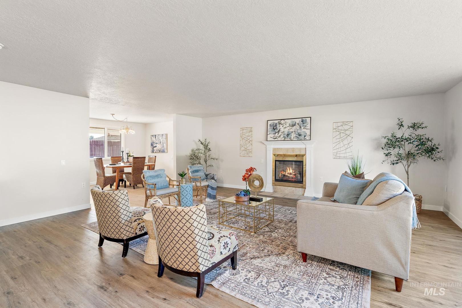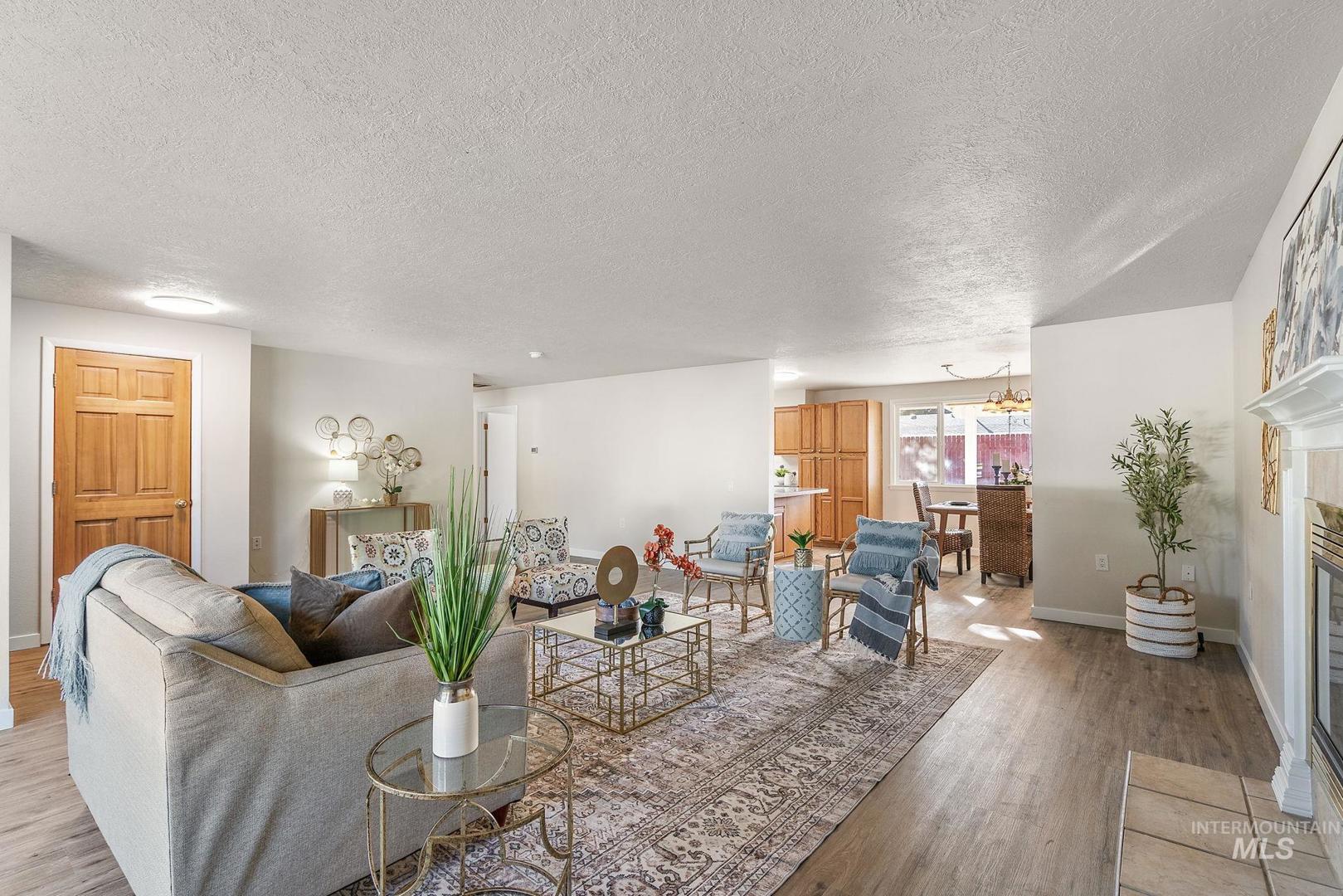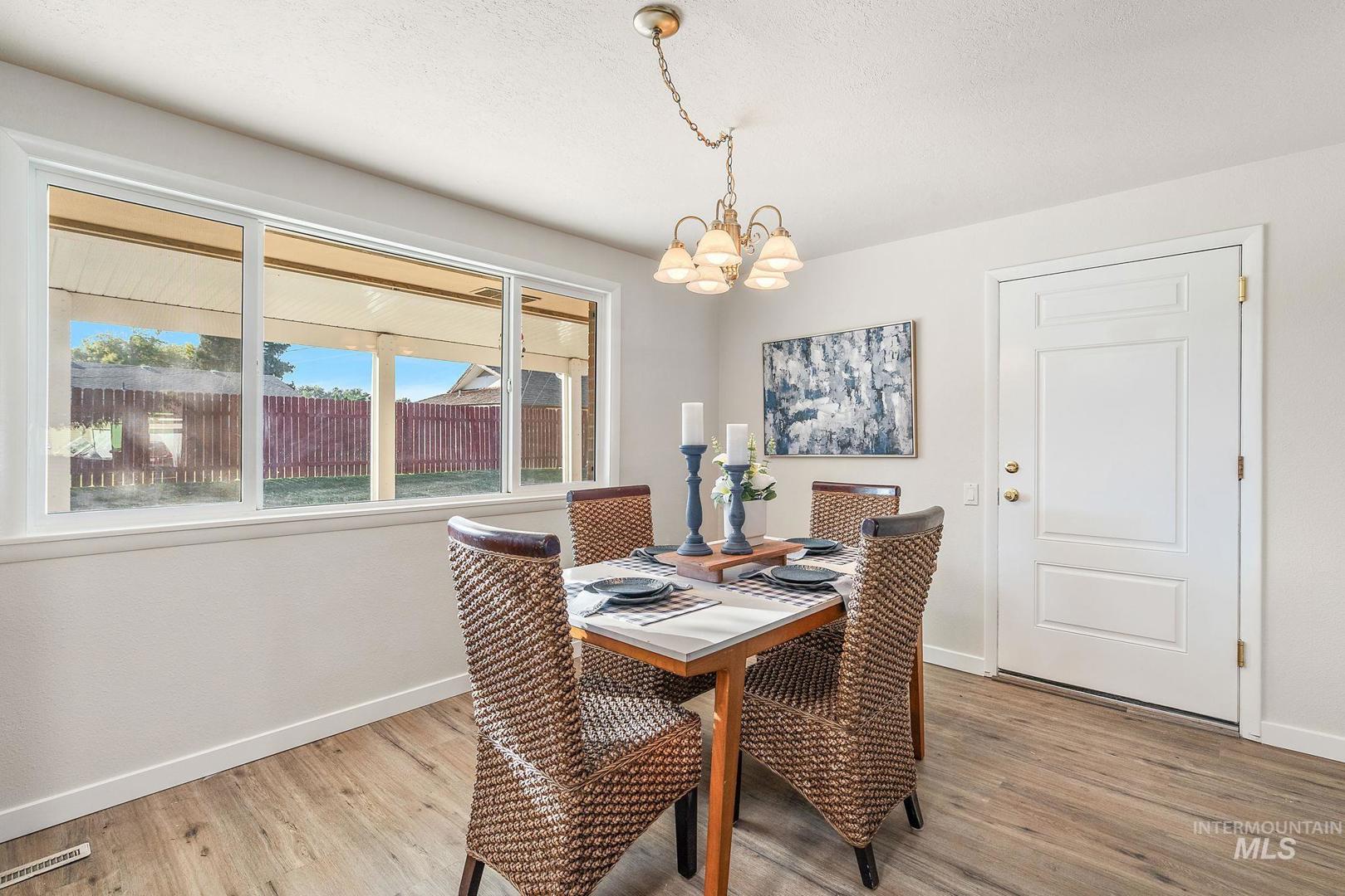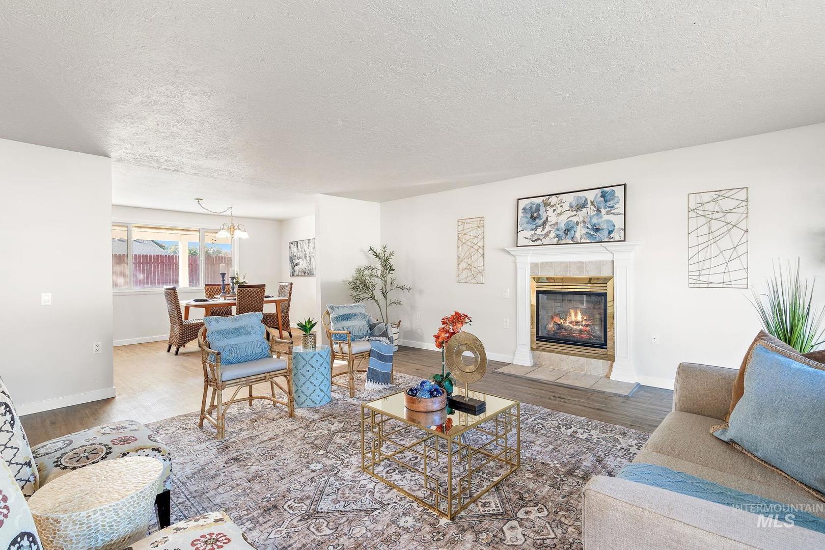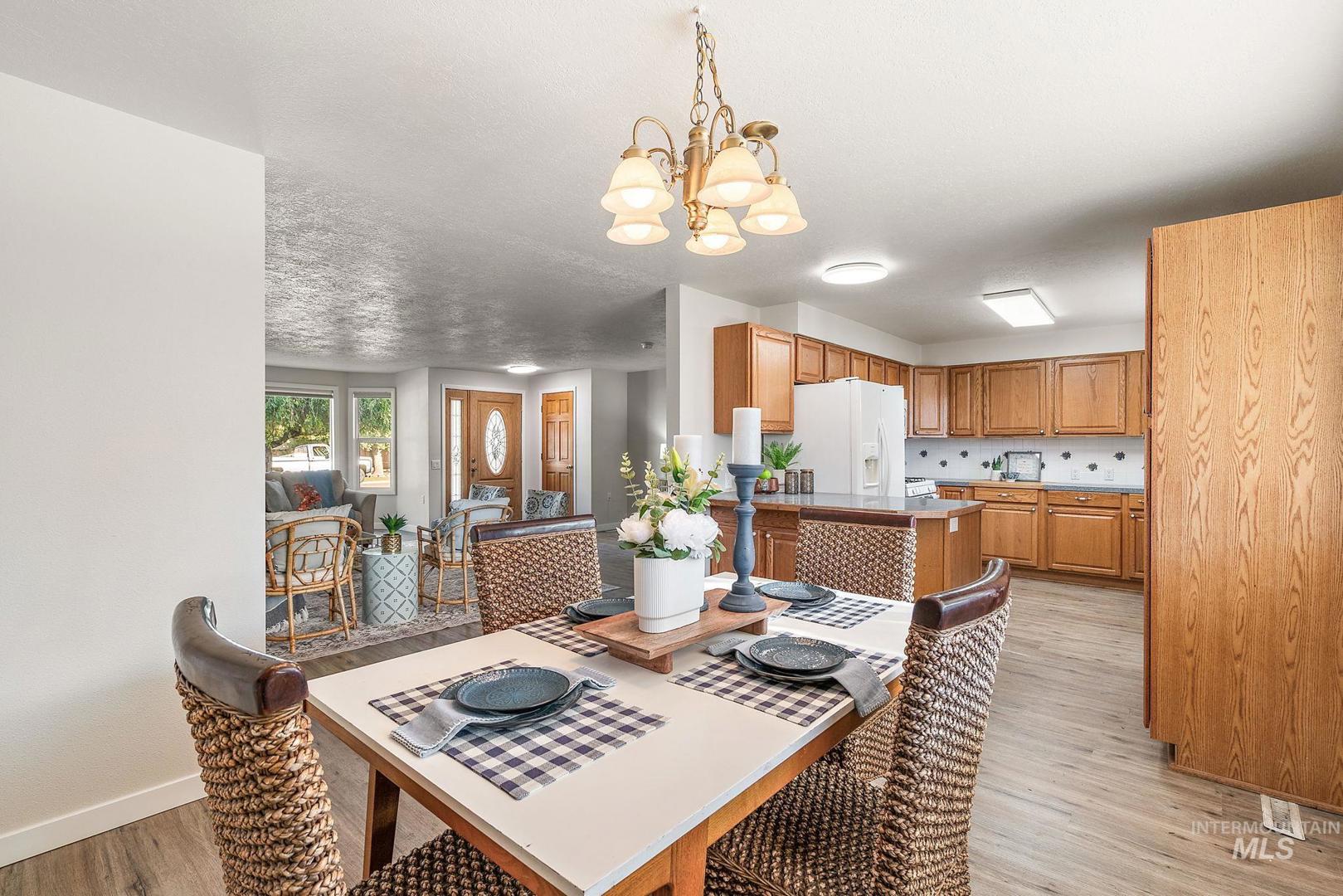 Tucked on a quiet dead-end street finishing in a cul-de-sac, this single-level home offers comfort and convenience: 4 bedrooms, 2 baths, and approx. 2,035 sq ft on a roomy quarter-acre lot. Freshly updated with full interior paint and new flooring. Everyday living extends outdoors to a covered patio and oversized concrete pad with gas stub—ideal for grilling and gatherings. The primary bath features a spacious, accessible shower. An oversized 2-car garage with workbench, backyard shed, 16x10 steel shop with power, and RV parking provide abundant storage. Fully fenced yard with irrigation and sprinklers. Refrigerator, washer, and dryer included for easy move-in. Brick exterior, central air, and gas heat ensure lasting comfort. Fantastic Caldwell location—near West Valley Medical Center, schools, shopping, Indian Creek Plaza, and quick I-84 access. Low-traffic setting with room to spread out—ideal for living or entertaining. Buyer to verify all information.