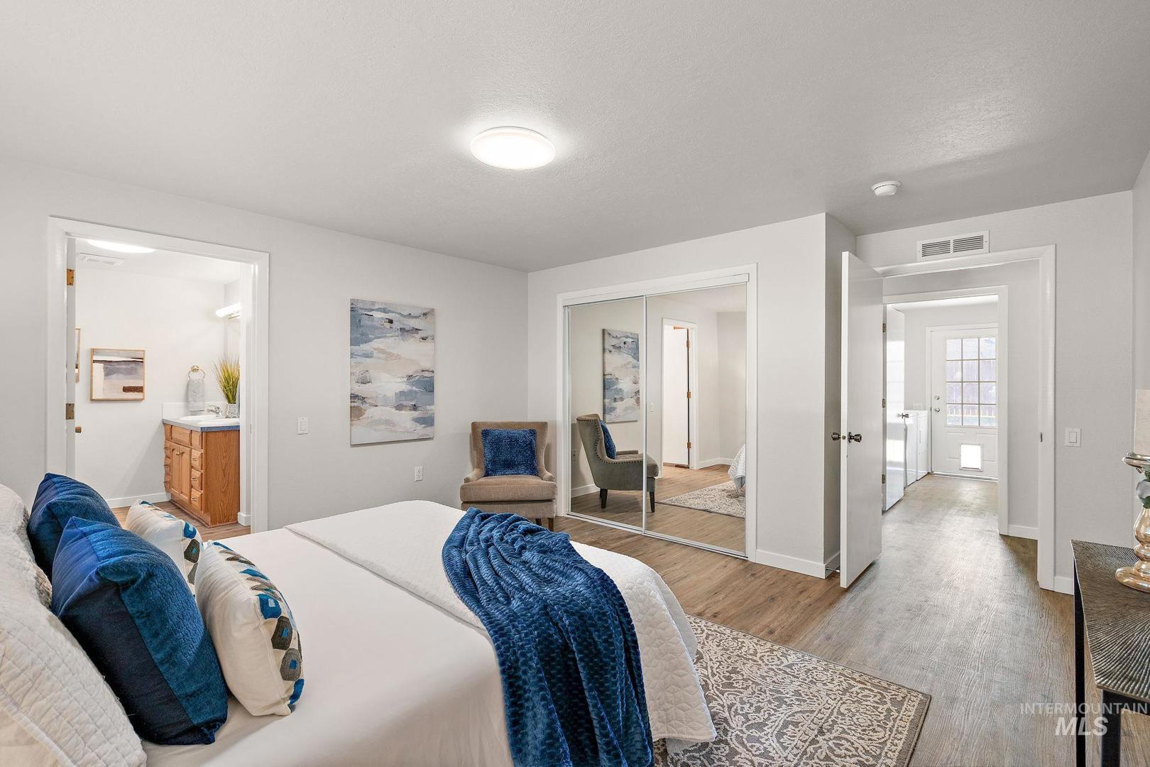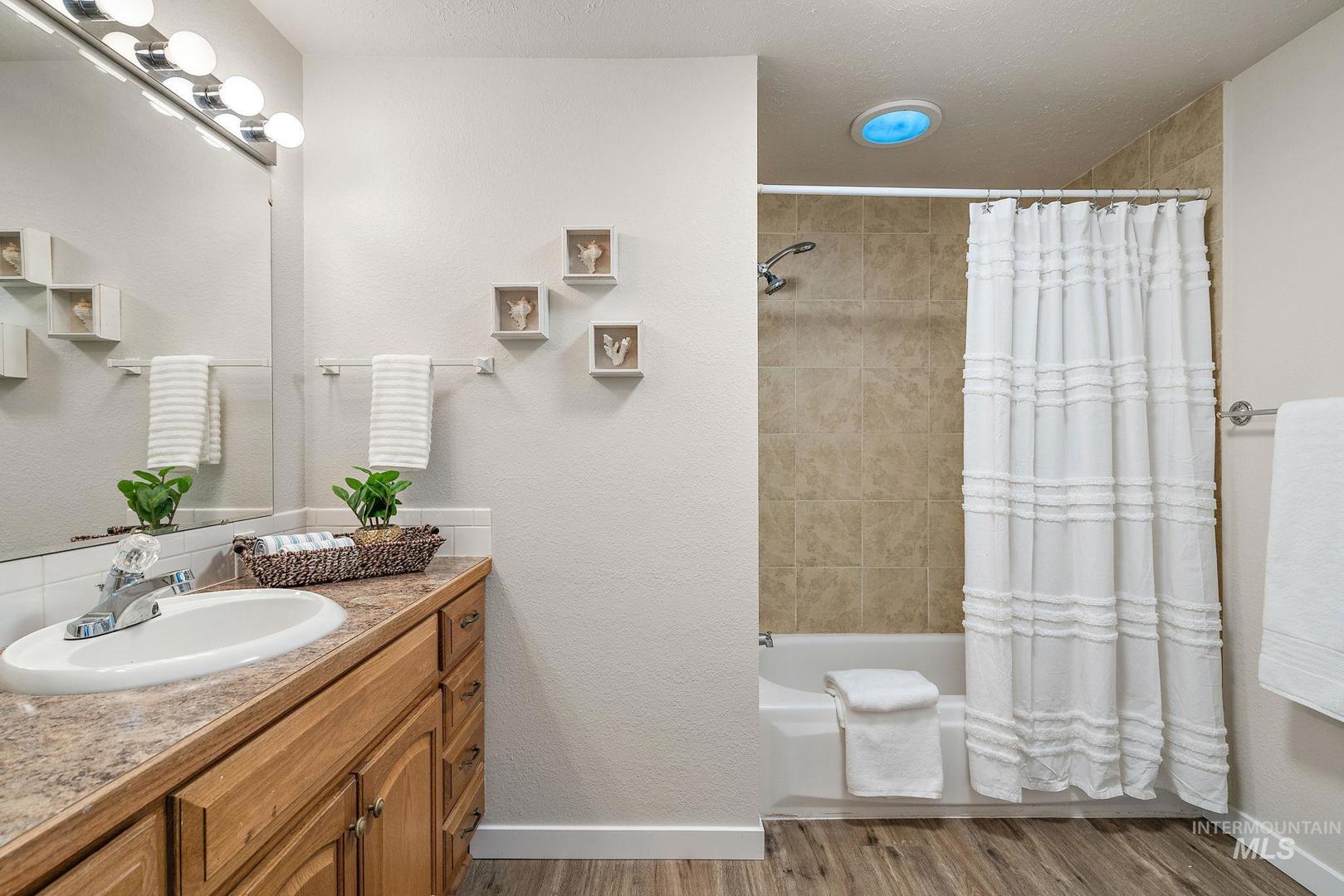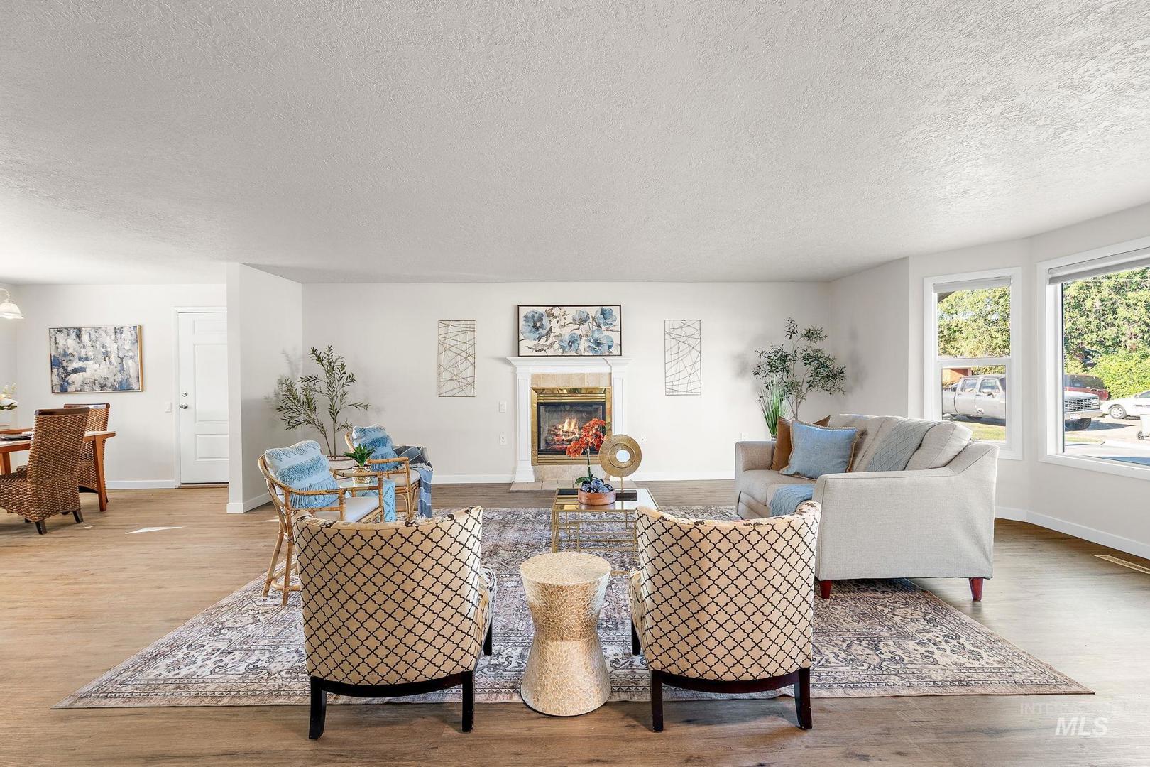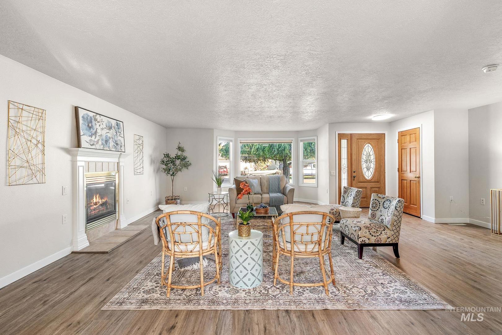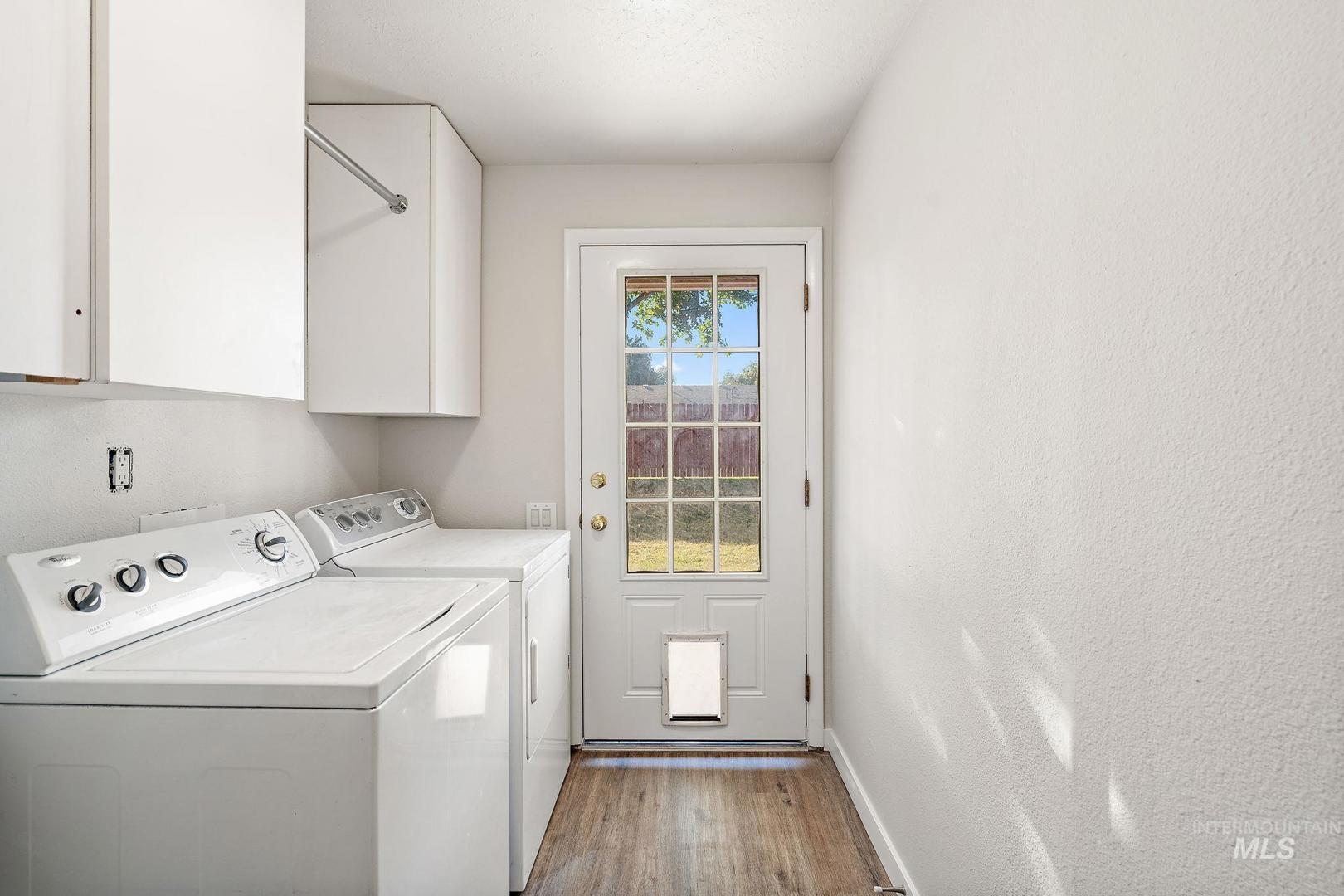 Tucked on a quiet dead-end street finishing in a cul-de-sac, this single-level home offers comfort and convenience: 4 bedrooms, 2 baths, and approx. 2,035 sq ft on a roomy quarter-acre lot. Freshly updated with full interior paint and new flooring. Everyday living extends outdoors to a covered patio and oversized concrete pad with gas stub—ideal for grilling and gatherings. The primary bath features a spacious, accessible shower. An oversized 2-car garage with workbench, backyard shed, 16x10 steel shop with power, and RV parking provide abundant storage. Fully fenced yard with irrigation and sprinklers. Refrigerator, washer, and dryer included for easy move-in. Brick exterior, central air, and gas heat ensure lasting comfort. Fantastic Caldwell location—near West Valley Medical Center, schools, shopping, Indian Creek Plaza, and quick I-84 access. Low-traffic setting with room to spread out—ideal for living or entertaining. Buyer to verify all information.