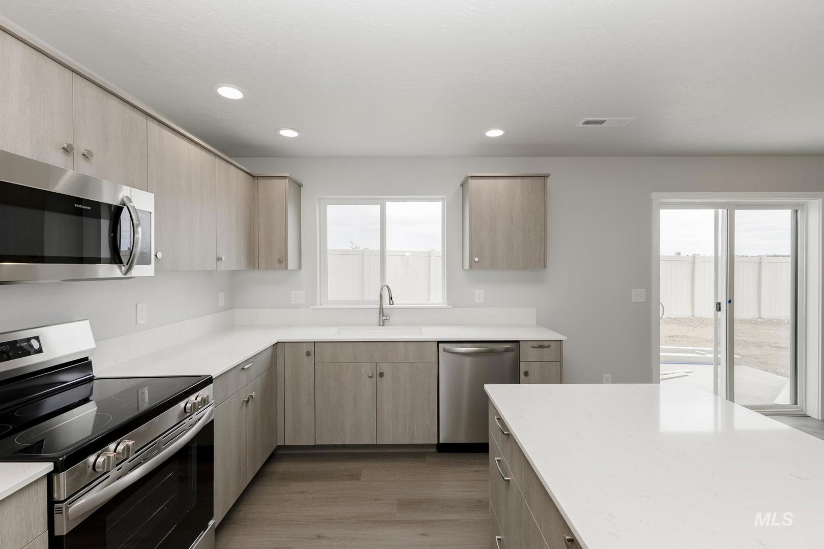 Fall in Love with Low Rates! Promotional rate as low as 2.99%. Embrace the comforts of a brand new home in Kuna, Idaho. Enter inside the Tatom 2054 and feel immediately welcomed. The kitchen comes with stainless steel appliances and stylish solid surface countertops, adding both functionality and aesthetics to the kitchen. The back yard feels like an extension of the home when it`s easy to access right from the dining room. A formal living room at the front of the home and the main living room in the rear provide multiple living spaces to host guests in or relax. The upper level primary suite is accompanied by the laundry room and three additional bedrooms. The fourth bedroom offers a walk-in closet for extra clothes or storage. With its open design and abundant space, the Tatom ensures comfort and flexibility for every lifestyle. Photos are of the actual home!