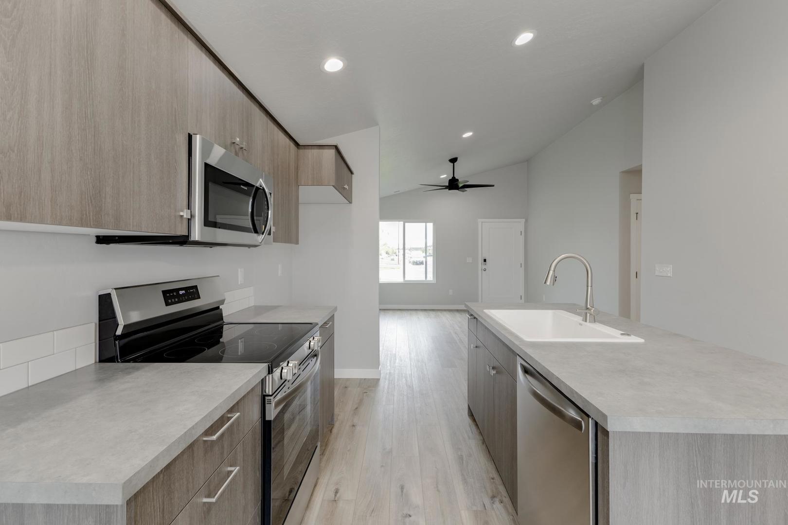 Fall in Love with Low Rates! Promotional rate as low as 2.99%. Feel enriched in your brand new home located in Kuna, Idaho! The Stella 1207 is adorable and bursting with charm! This thoughtful floor plan flows seamlessly through the home to deliver a cozy living experience. Three bedrooms, all situated on one side of the home, are designed to provide a secluded get-away to everyone. The centrally located living room, kitchen, and dining room are the heart of the home for lounging or entertaining. The kitchen is well-equipped with a spacious island, modern appliances, and plenty of counter space for all your culinary needs. The primary suite provides an en suite bathroom and large closet. Enjoy easy access to the back patio from the dining room and make the most of the pleasant Idaho weather, perfect for outdoor gatherings or quiet relaxation. Photos are of the actual home!