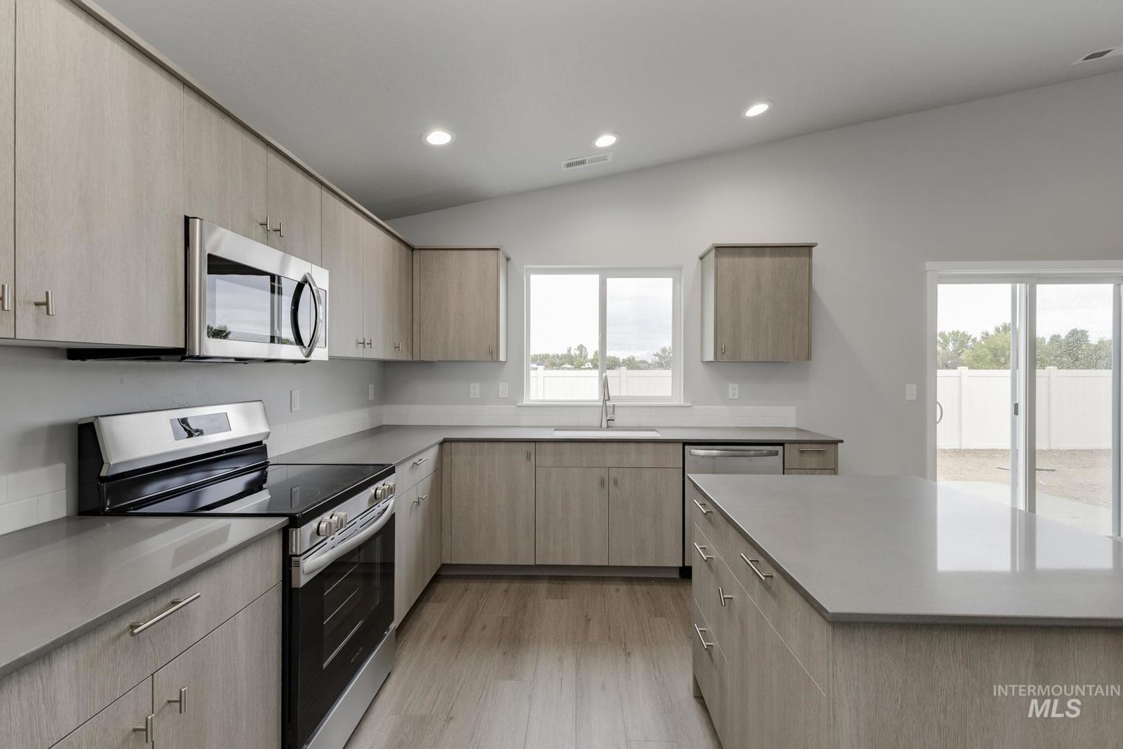 Fall in Love with Low Rates! Promotional rate as low as 2.99%. This brand new home located in vibrant Kuna, Idaho welcomes you with open arms. Dreams do come true in the Harrison 2025! Get the single-level home you always wanted without sacrificing any living space. The outside world will melt away while you relax in the bright & sunny living room at the rear of the home. The kitchen comes with stainless steel appliances and stylish solid surface countertops, adding both functionality and aesthetics to the kitchen. Discover an oasis of solitude in the primary suite with its enviable walk-in closet, dual vanities, and two refreshing windows. The concrete patio entices you to spend time outside so you will not miss even a moment of nice weather. With spacious bedrooms and a thoughtful layout, the Harrison offers the perfect balance of comfort and style. Photos are of the actual home!