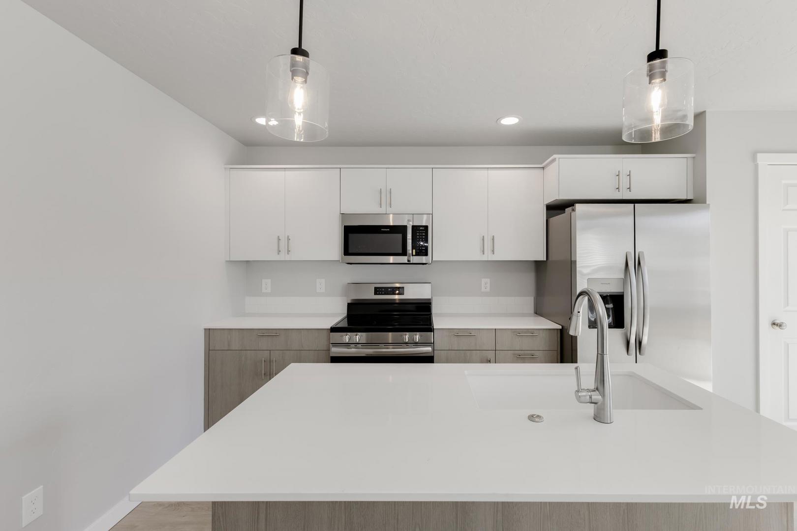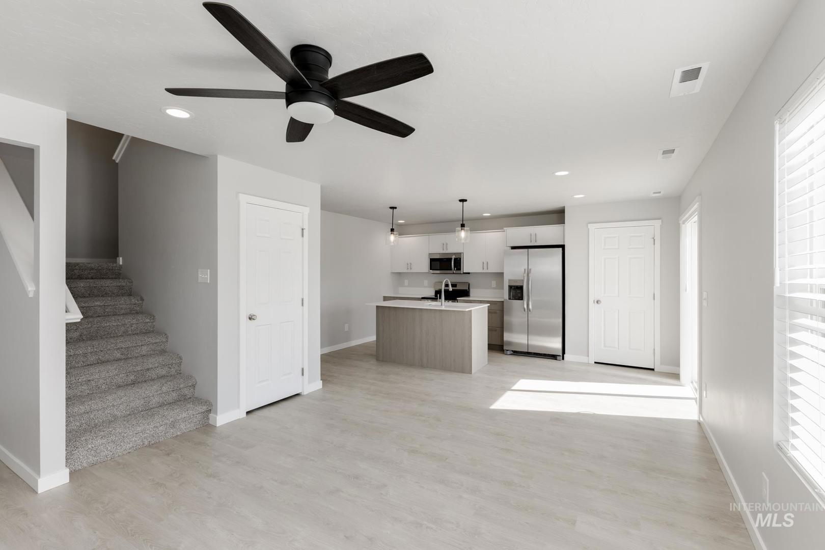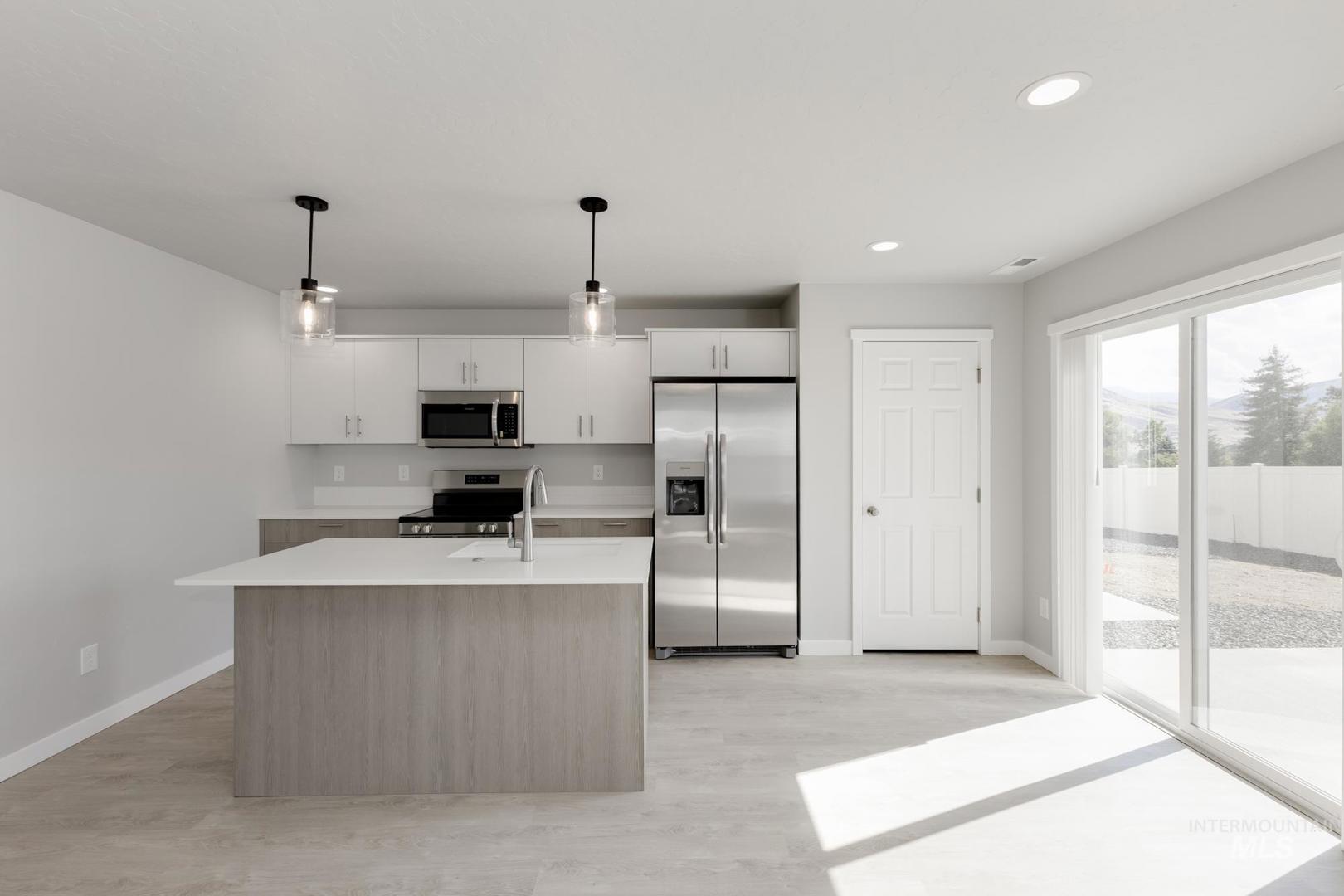 Fall in Love with Low Rates! Promotional rate as low as 2.99%. This new home located in beautiful Horseshoe Bend, Idaho has all the comforts you need & more! Discover the thoughtful layout of the Sandhill 1492! The home includes a refrigerator, washer, dryer, and blinds throughout! The main level welcomes you with an open-concept design, where the living, dining, and kitchen areas flow together for easy entertaining and everyday living. A convenient powder bath and access to the backyard make the space both functional and inviting. Upstairs, the primary suite offers a private retreat with an attached bathroom and spacious walk-in closet, while two additional bedrooms and a full bath provide room for family, guests, or a home office. The laundry area is also located upstairs for convenience. Full landscaping is included, and the HOA covers added perks like exterior maintenance, roof care, and lawn upkeep. Photos are of the actual home!