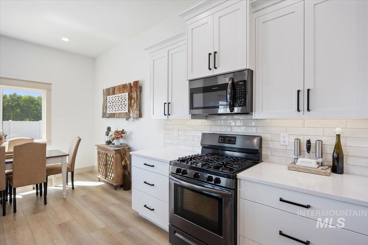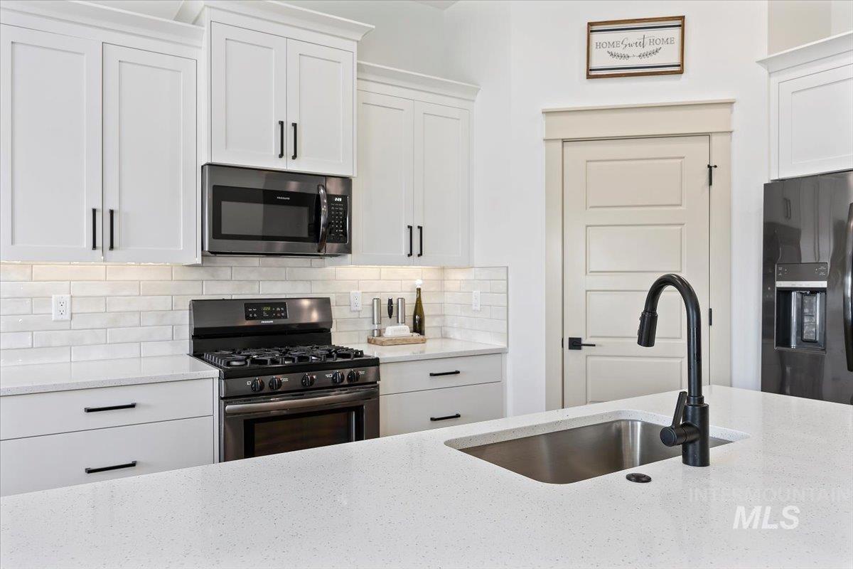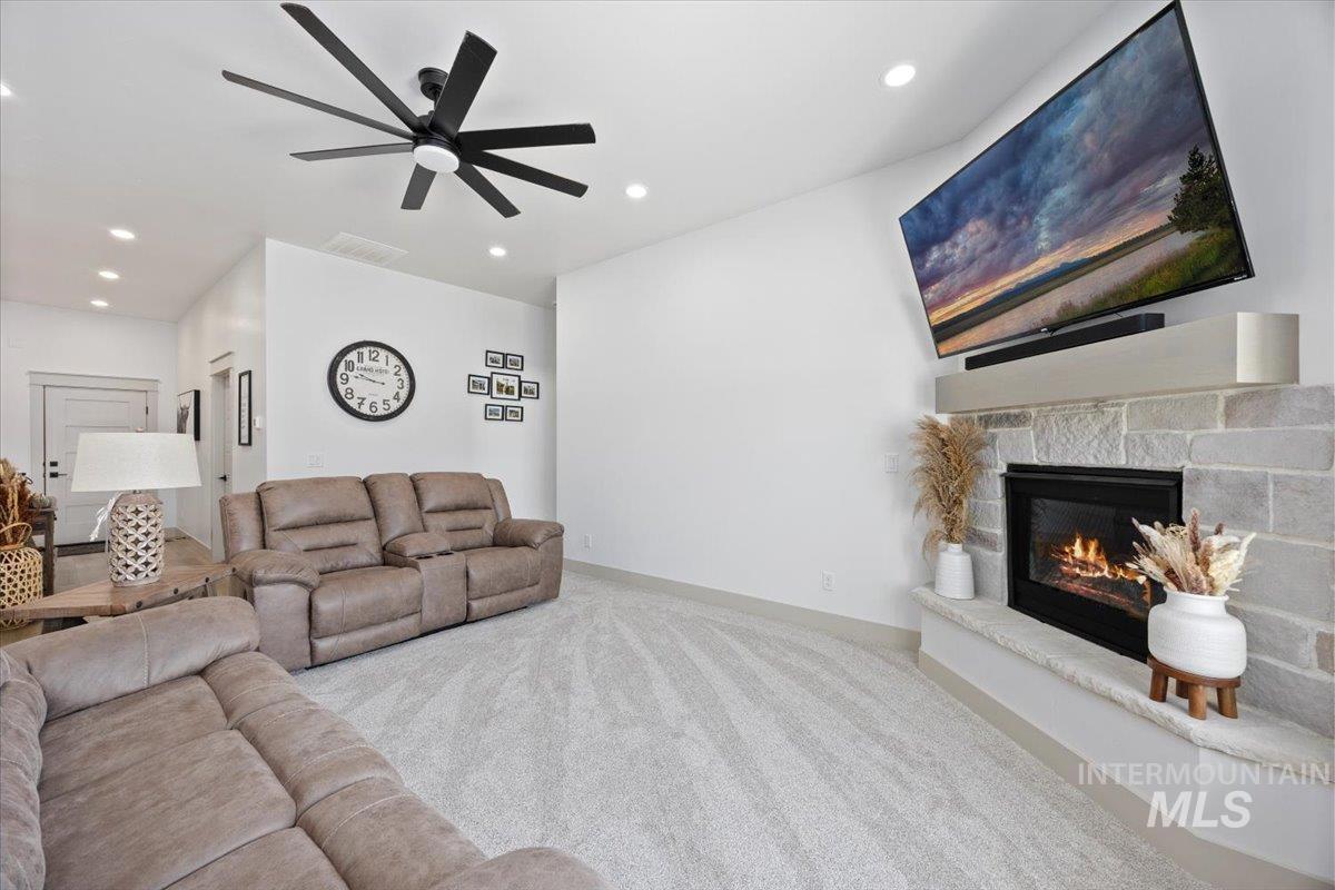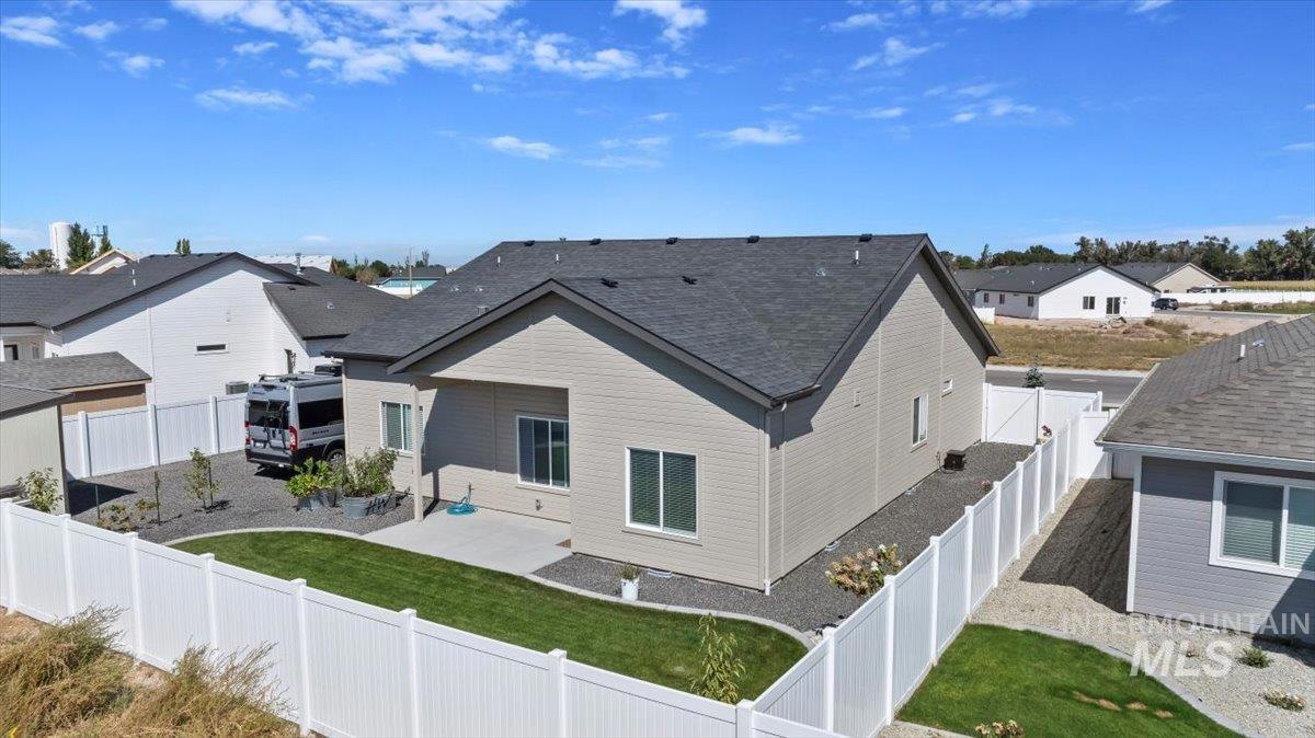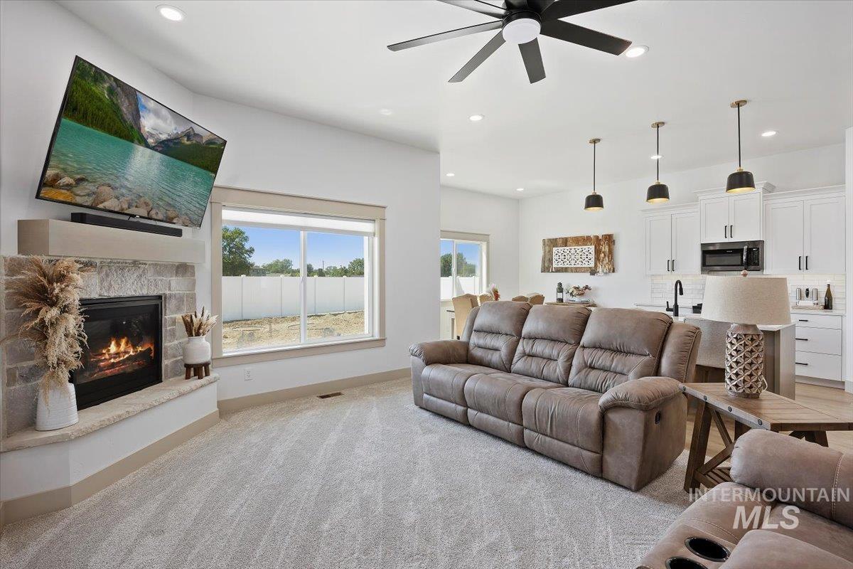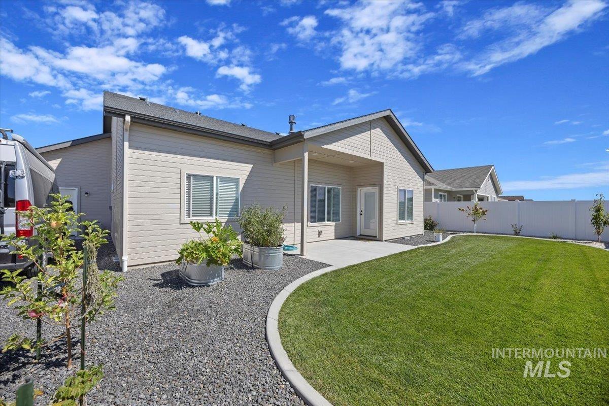 Welcome to this stunning 1,501 square foot residence, designed and built by Riverfront Custom Homes. This home features a spacious three-car garage, three bedrooms, and two full baths. Upon entering, you`ll be impressed by the ten-foot ceilings in the entry, family room, and dining, creating a sense of openness and grandeur. The home is filled with natural light, thanks to the large windows that adorn the living spaces. The kitchen is a highlight, offering custom alder cabinetry, a corner pantry, a large island, and elegant quartz countertops. It`s a perfect blend of style and functionality, ideal for both everyday cooking and guests. This home is also designed with accessibility in mind, featuring wide hallways and 36" wide doors and a roll-in tiles shower, making it ideal for wheelchair users. The east facing back yard will allow for many afternoon spending time in the shaded back yard. The exterior boasts Masonite wood siding complemented by beautiful stone accents, adding to its curb appeal. Pics similar