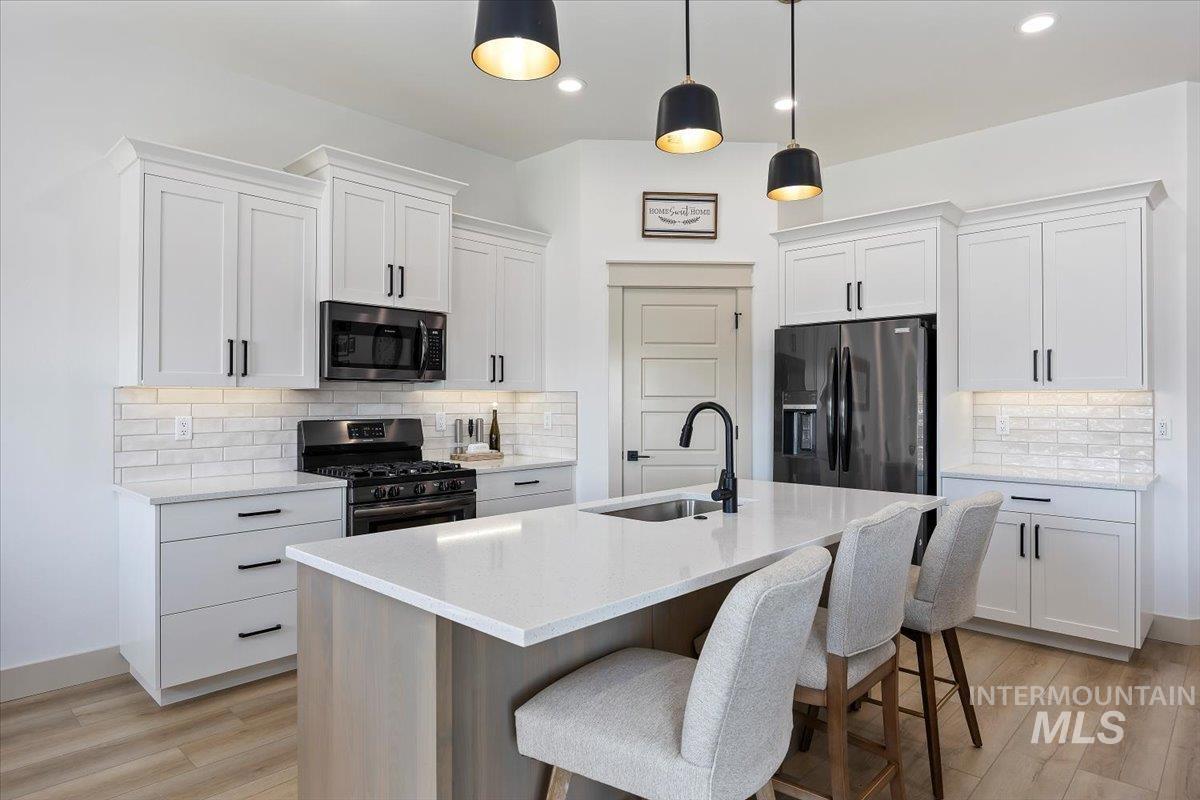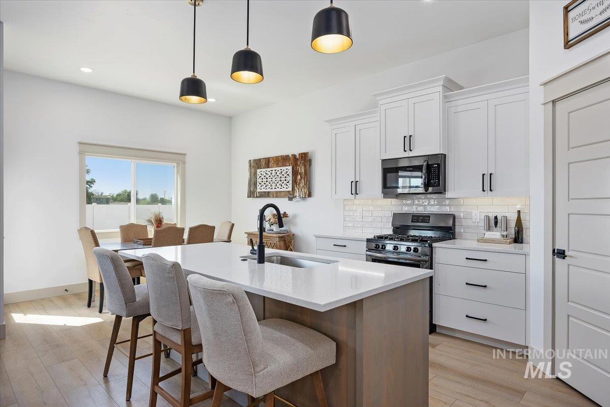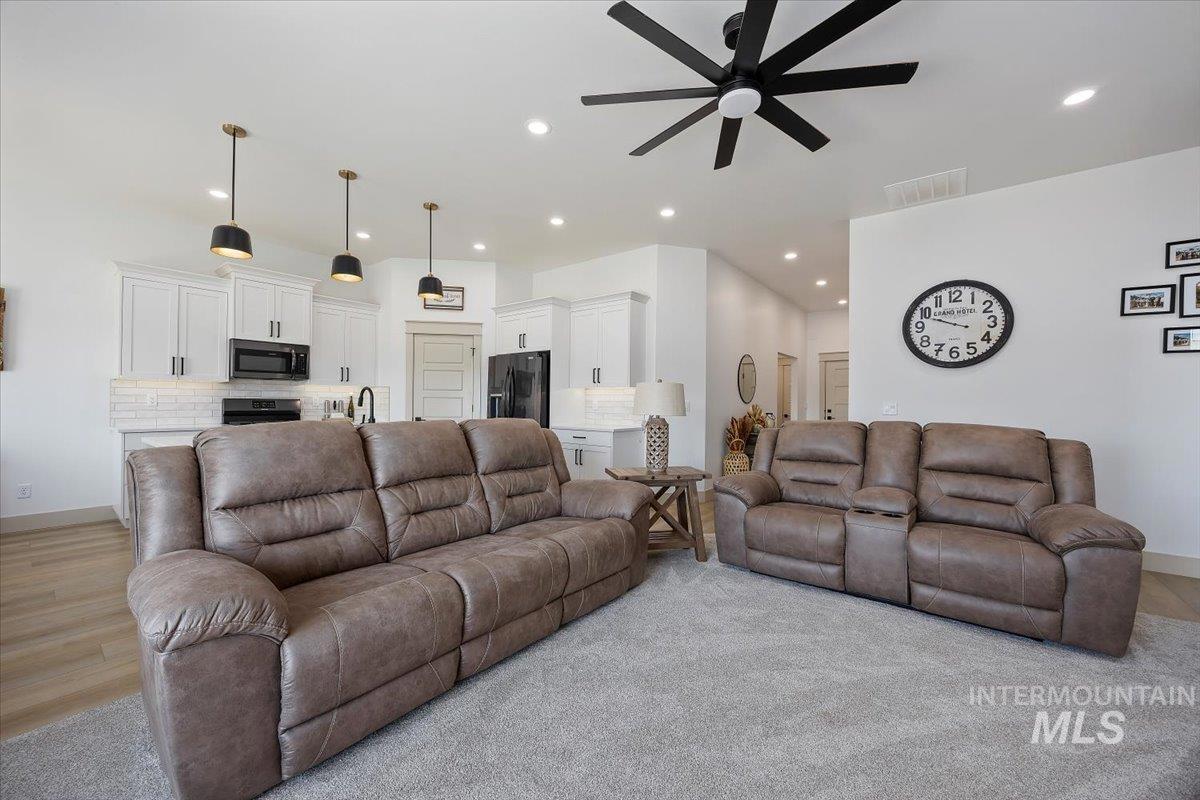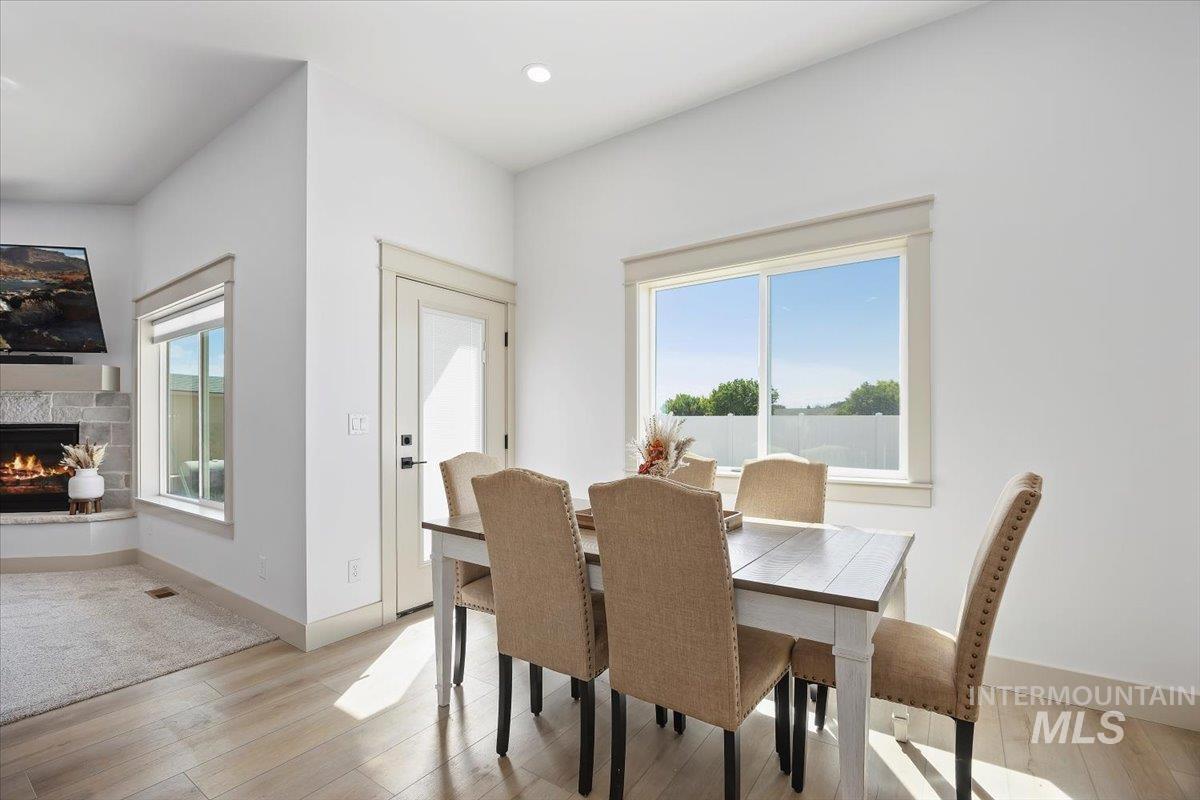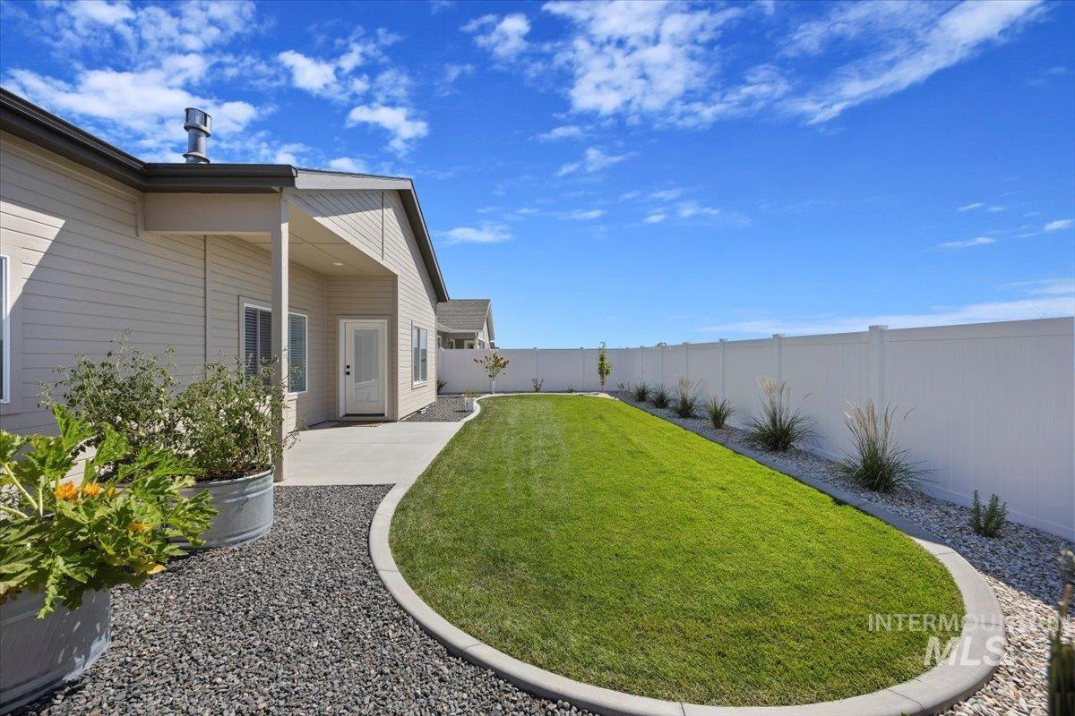 Welcome to this stunning 1,501 square foot residence, designed and built by Riverfront Custom Homes. This home features a spacious three-car garage, three bedrooms, and two full baths. Upon entering, you`ll be impressed by the ten-foot ceilings in the entry, family room, and dining, creating a sense of openness and grandeur. The home is filled with natural light, thanks to the large windows that adorn the living spaces. The kitchen is a highlight, offering custom alder cabinetry, a corner pantry, a large island, and elegant quartz countertops. It`s a perfect blend of style and functionality, ideal for both everyday cooking and guests. This home is also designed with accessibility in mind, featuring wide hallways and 36" wide doors and a roll-in tiles shower, making it ideal for wheelchair users. The east facing back yard will allow for many afternoon spending time in the shaded back yard. The exterior boasts Masonite wood siding complemented by beautiful stone accents, adding to its curb appeal. Pics similar